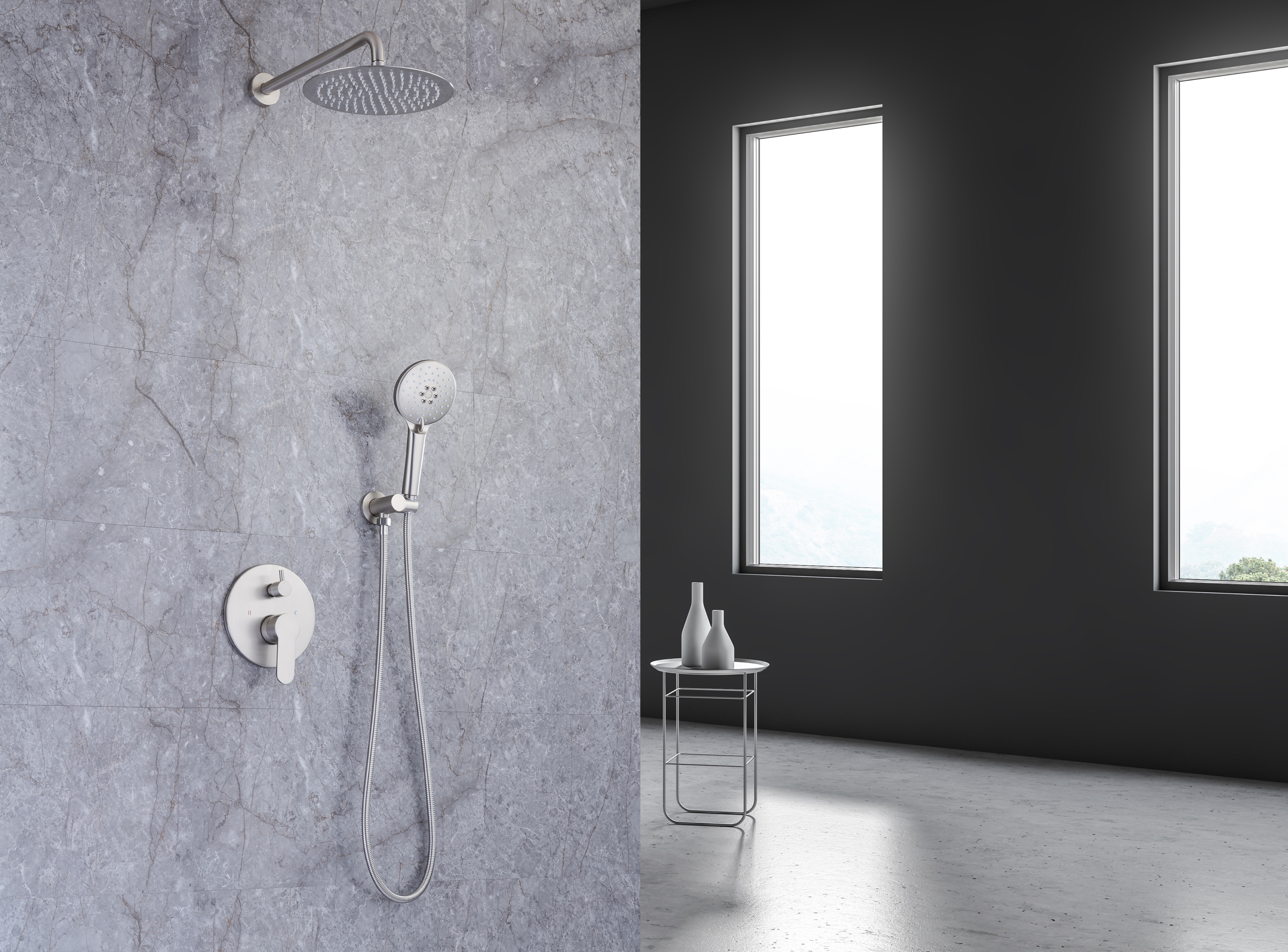 Shower Faucet Set, Wall Mount Round hower System Mixer Set, 10 Inch Rain Shower Head with Handheld Spray, Solid Brass, Rough-in Valve Included