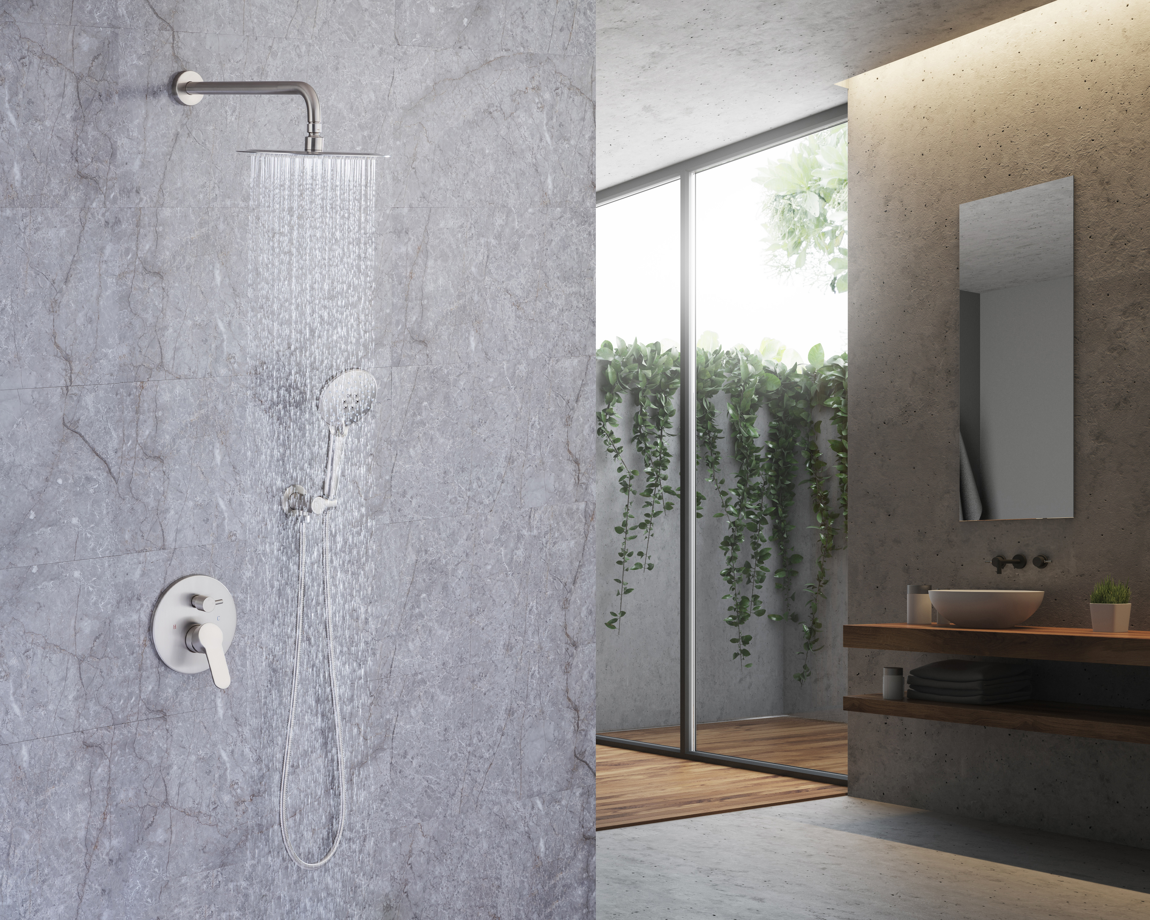 【Shower Faucet Set Include】Rain shower, shower arm, rough-in valve and trim kit, handheld shower wand, shower holder and hose, a complete shower kit