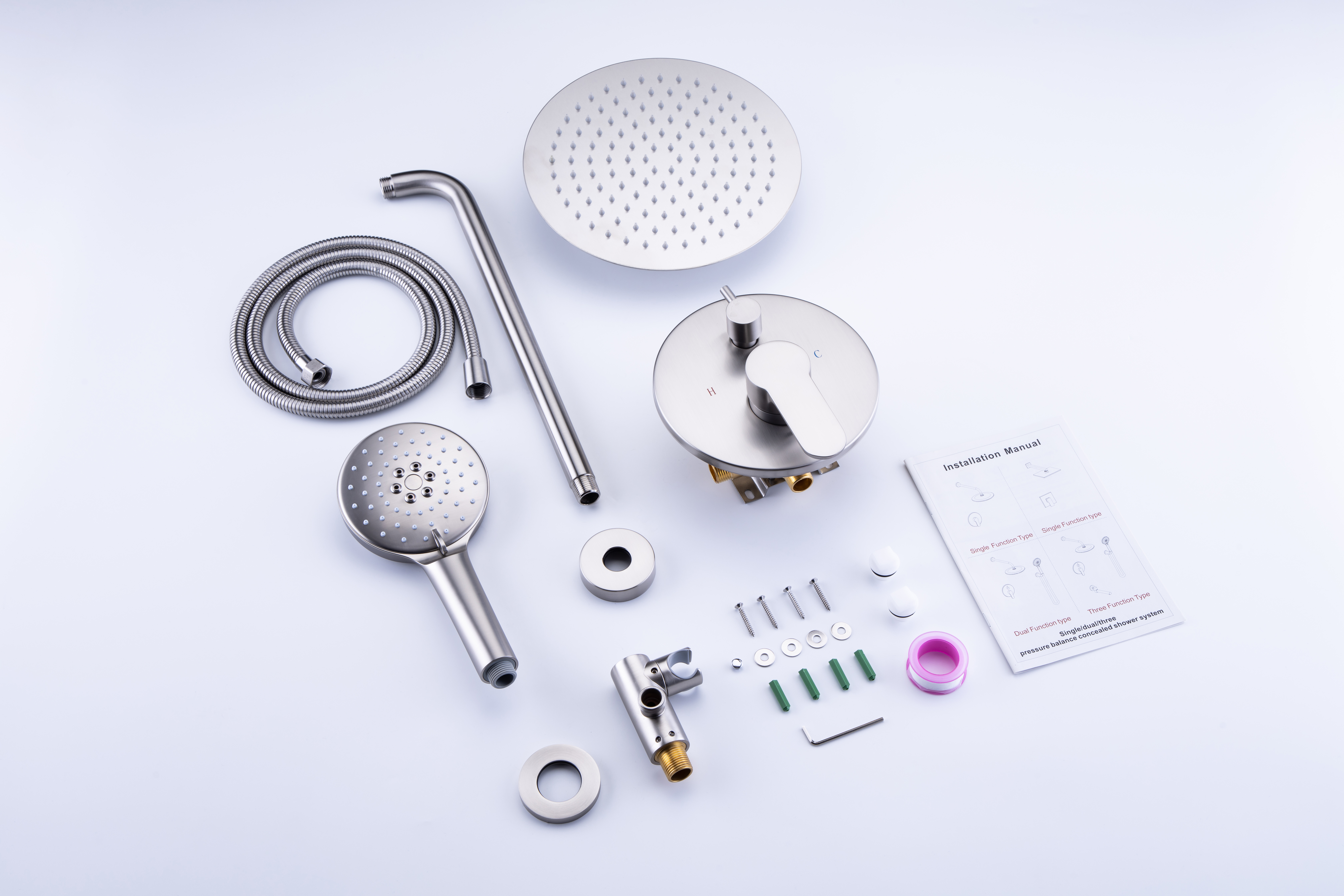 【10 in. Rain Shower】This rainfall shower system has a 10 in. round big overhead shower, offer full body coverage, you don't need to turning around when bathing. High pressure rain shower benefits from washing out shampoo to relieving sore and tired muscles