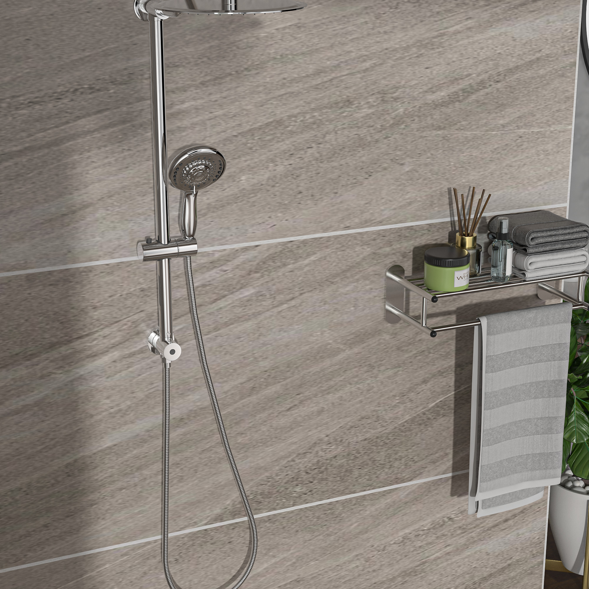 The 10inch round shower set comes with an adjustable and removable hand shower that can be used separately from the shower or at the same time as the shower. This shower set gives you a variety of options, as you can choose to have water flowing only from the overhead shower or the hand shower, and choose from five outlet modes for a more sophisticated showering experience.