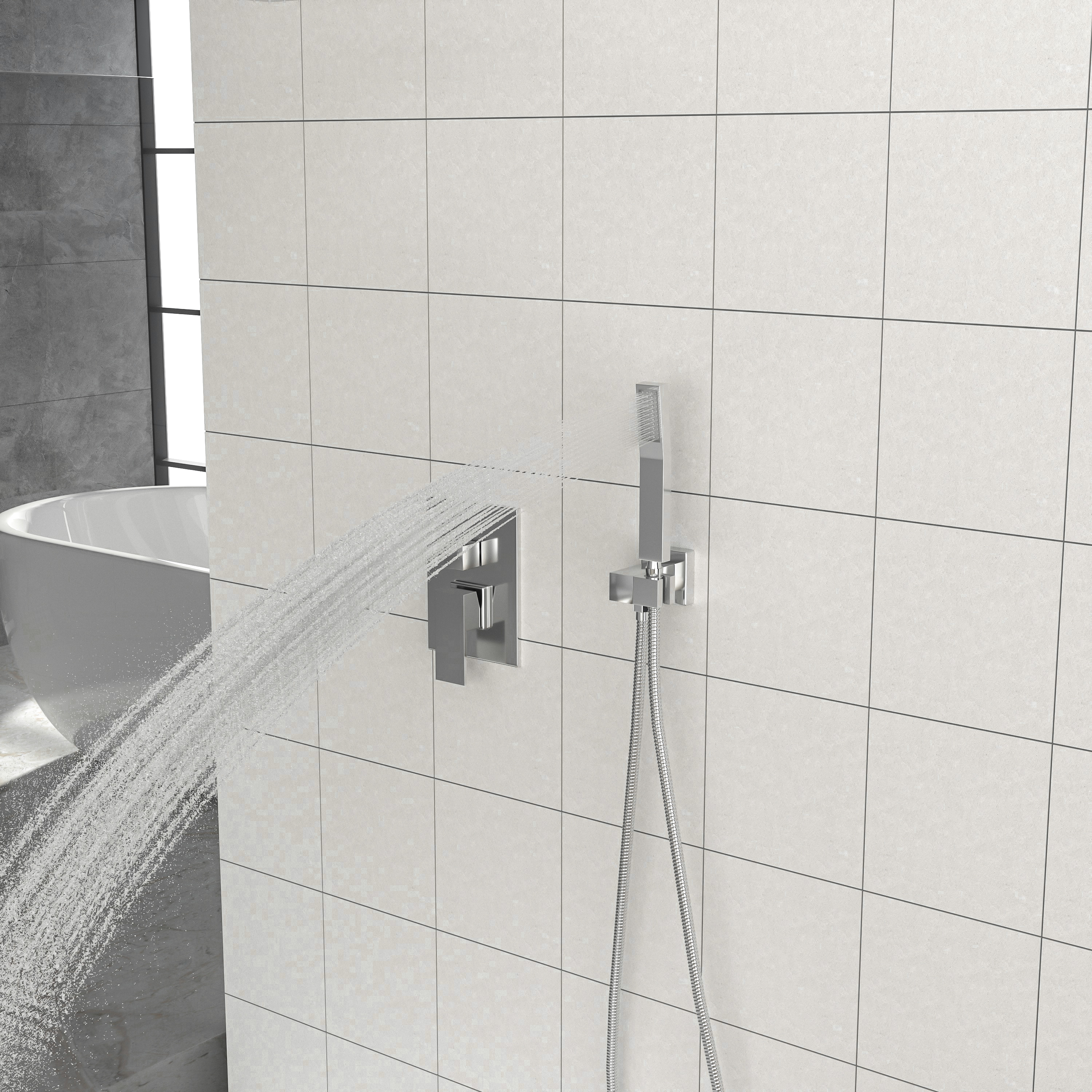 Dual function 304 stainless steel square shower concealed set, solid brass shower mixing valve. 12 inch ceiling mounted shower arm with enamel cover, corrosion resistant, high temperature resistant, not easy to aging, with shower arm, hose easy to install, different function shower to provide you with a comfortable shower, so you have the ultimate bathing experience.