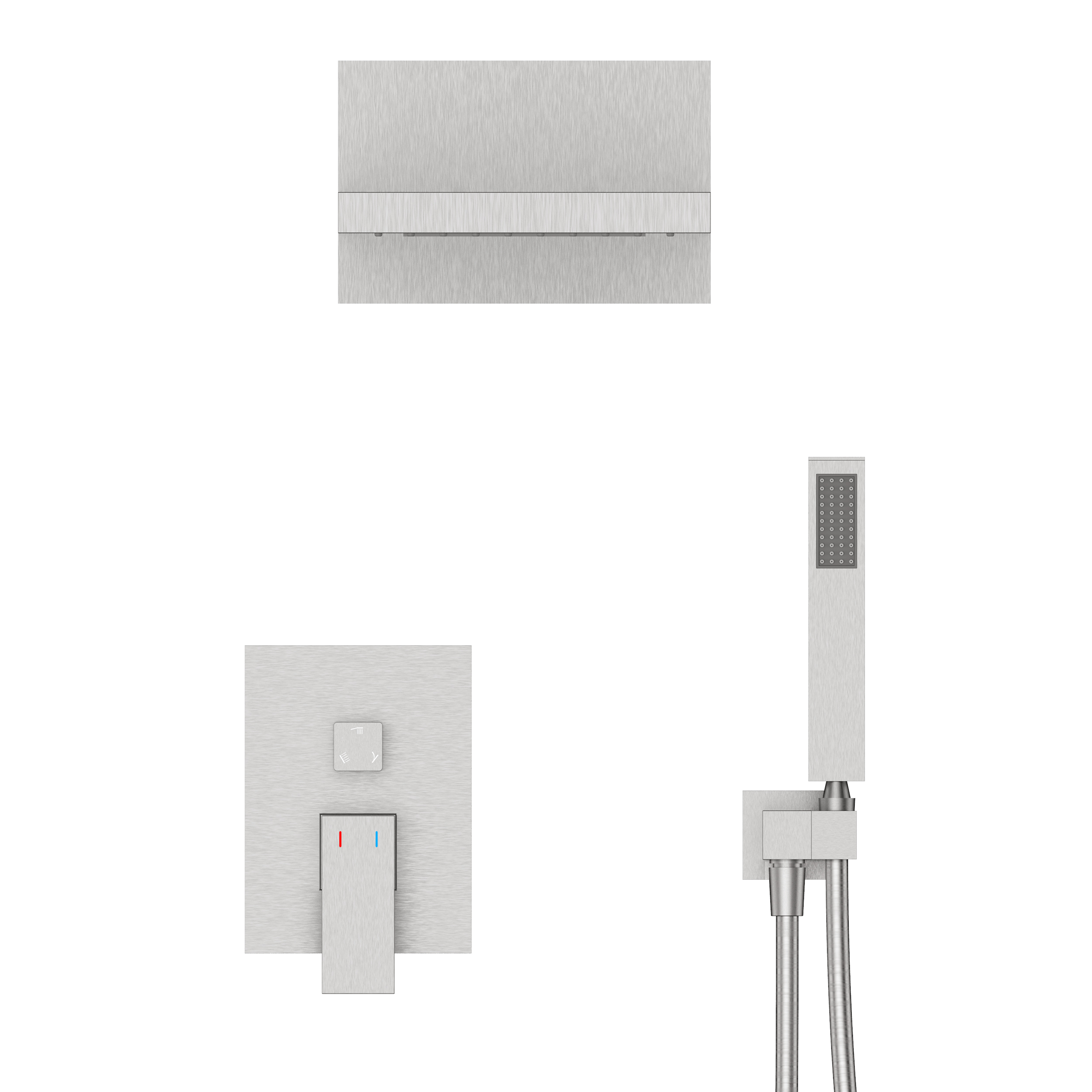 Shower System, Ultra-thin Wall Mounted Shower Faucet Set for Bathroom, Stainless Steel Rain Shower head Handheld Shower Set, 22 inch square large panel, Brushed Nickel