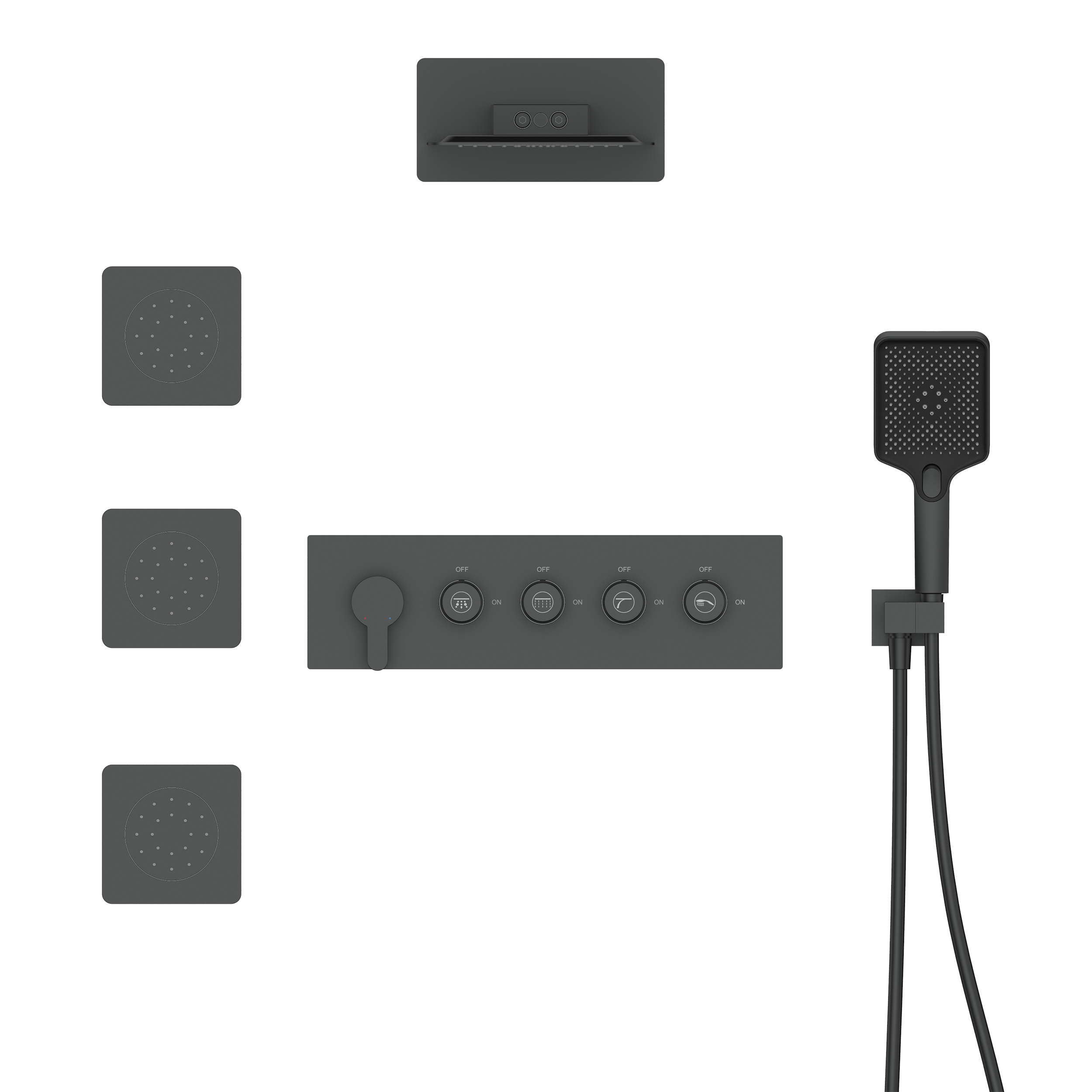 Shower System, Ultra-thin Wall Mounted Shower Faucet Set for Bathroom, Wall Massage Water, Stainless Steel Rain Shower head Handheld Shower Set, 23 inch square large panel, Matte Black