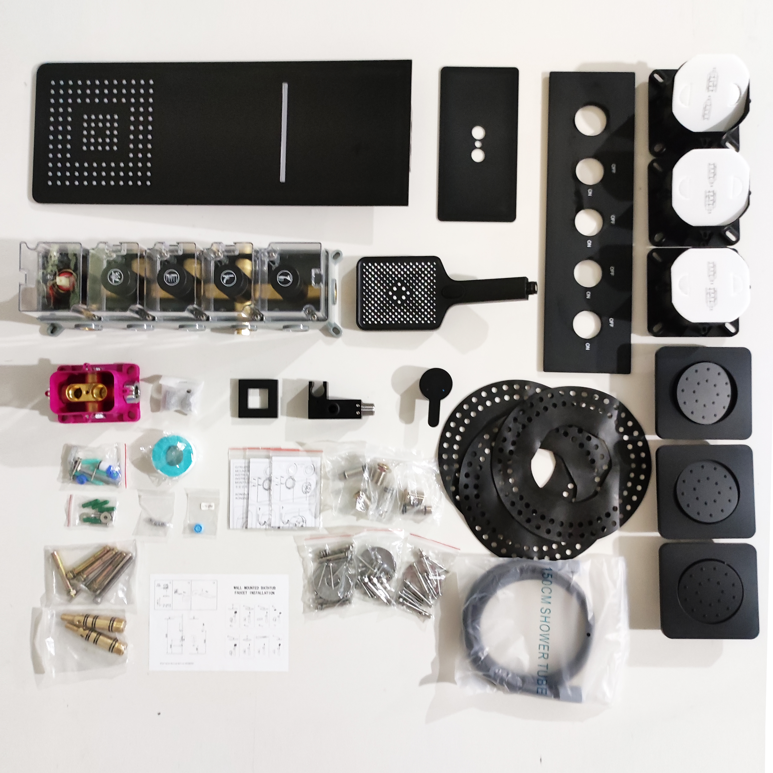 This is a round design shower set, in line with various modern decoration styles, it can make your bathroom more luxurious, rain shower experience, make you more relaxed, feel like in a luxury hotel spa, all Accessories are included in our package, you can install and use according to the user manual, and NPT 1/2 connector, compatible with most existing shower faucets.