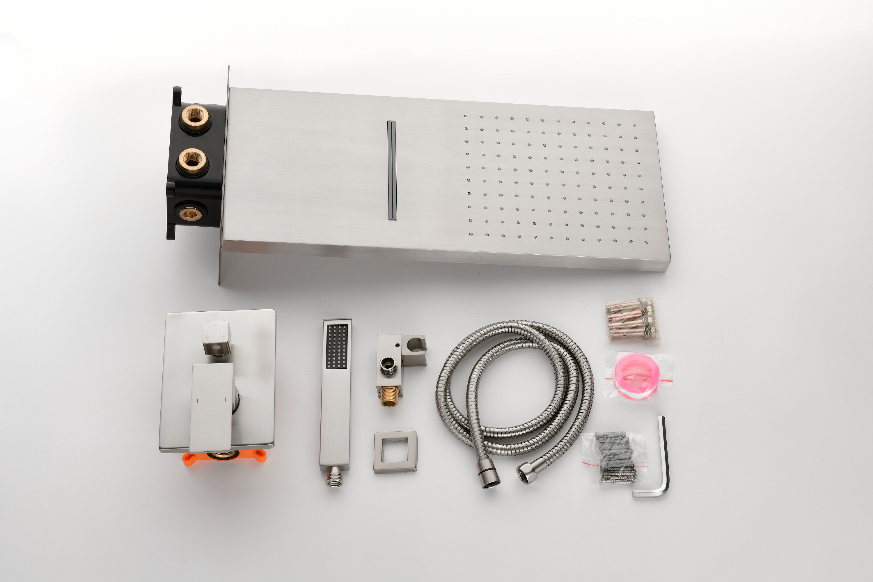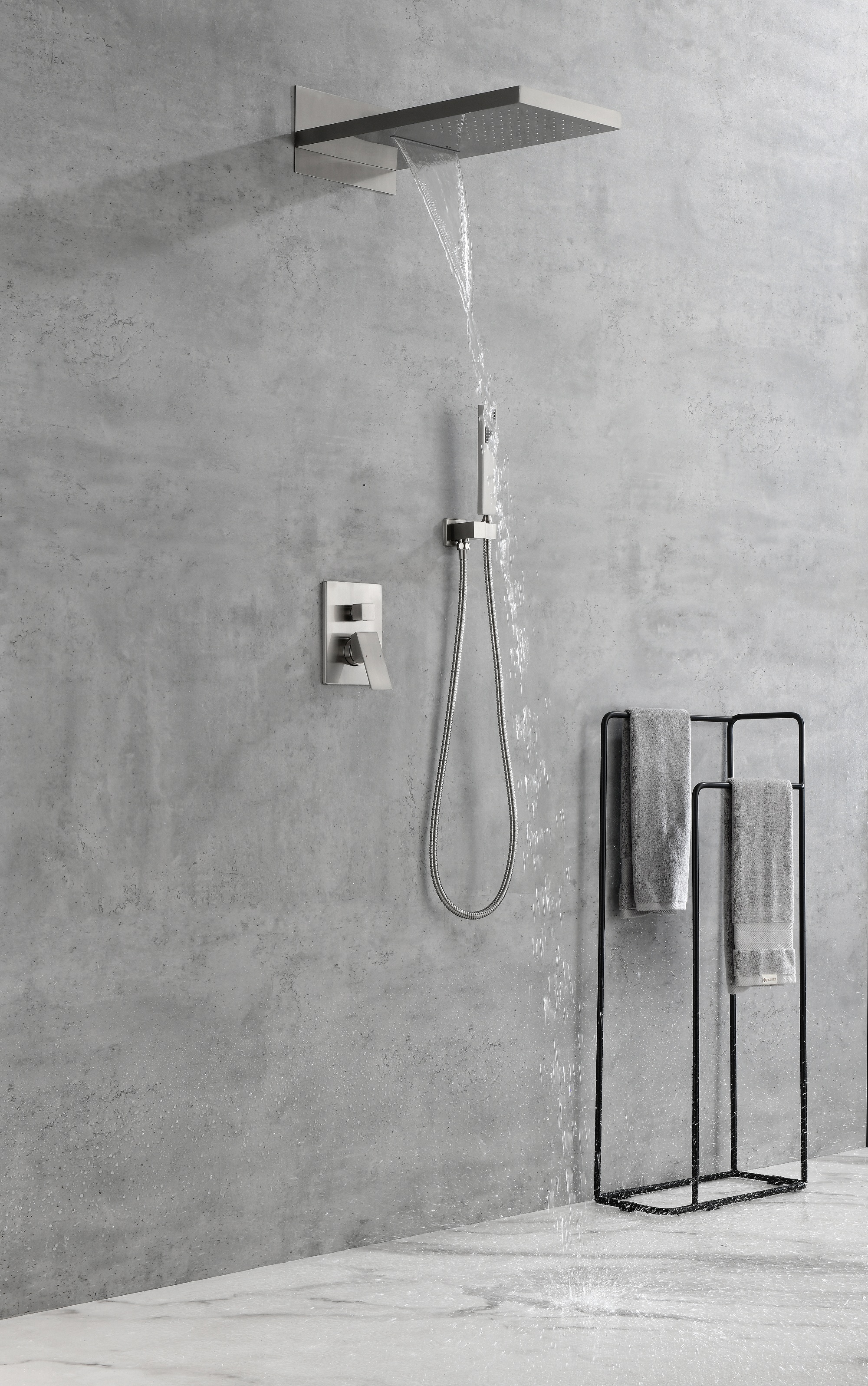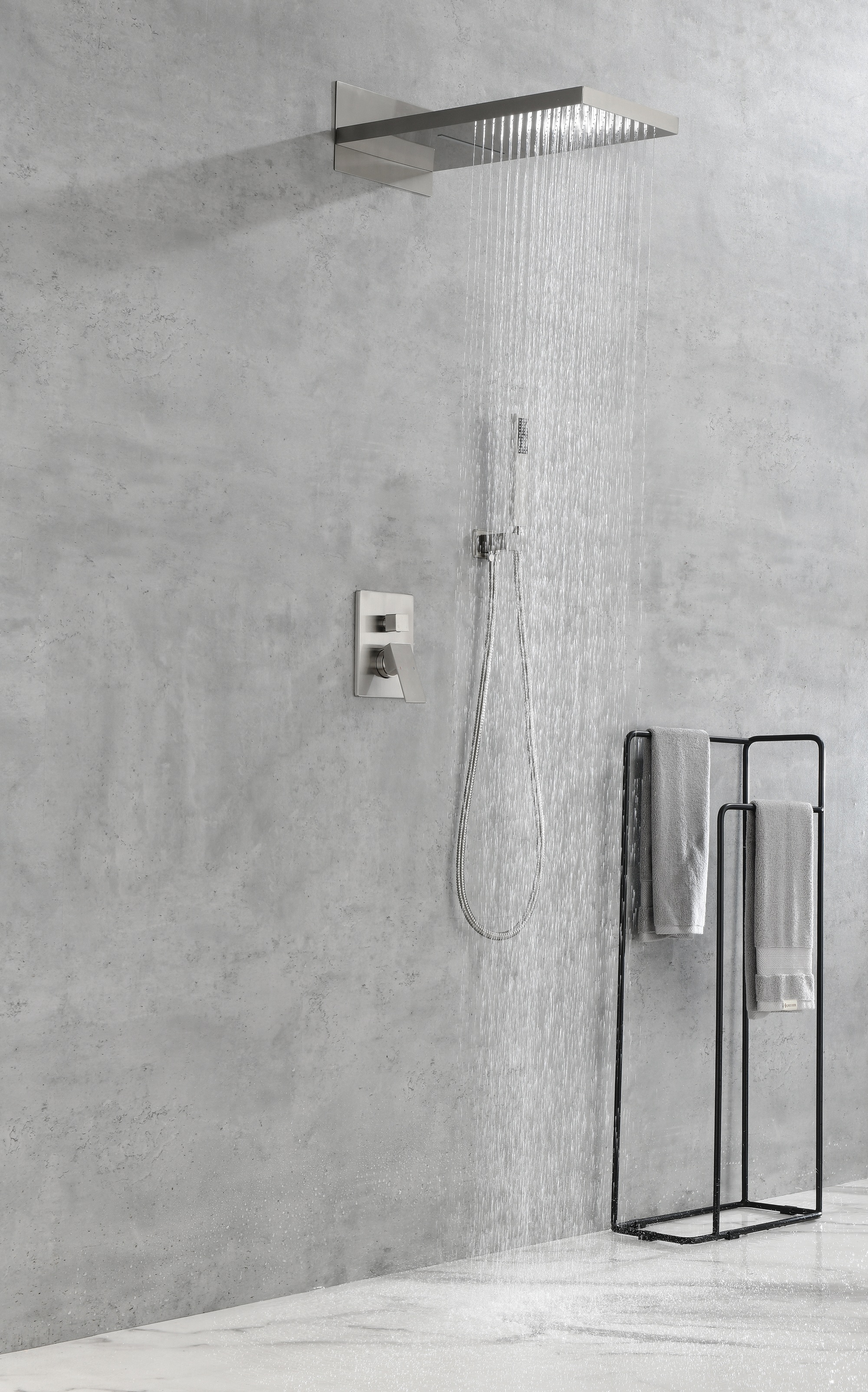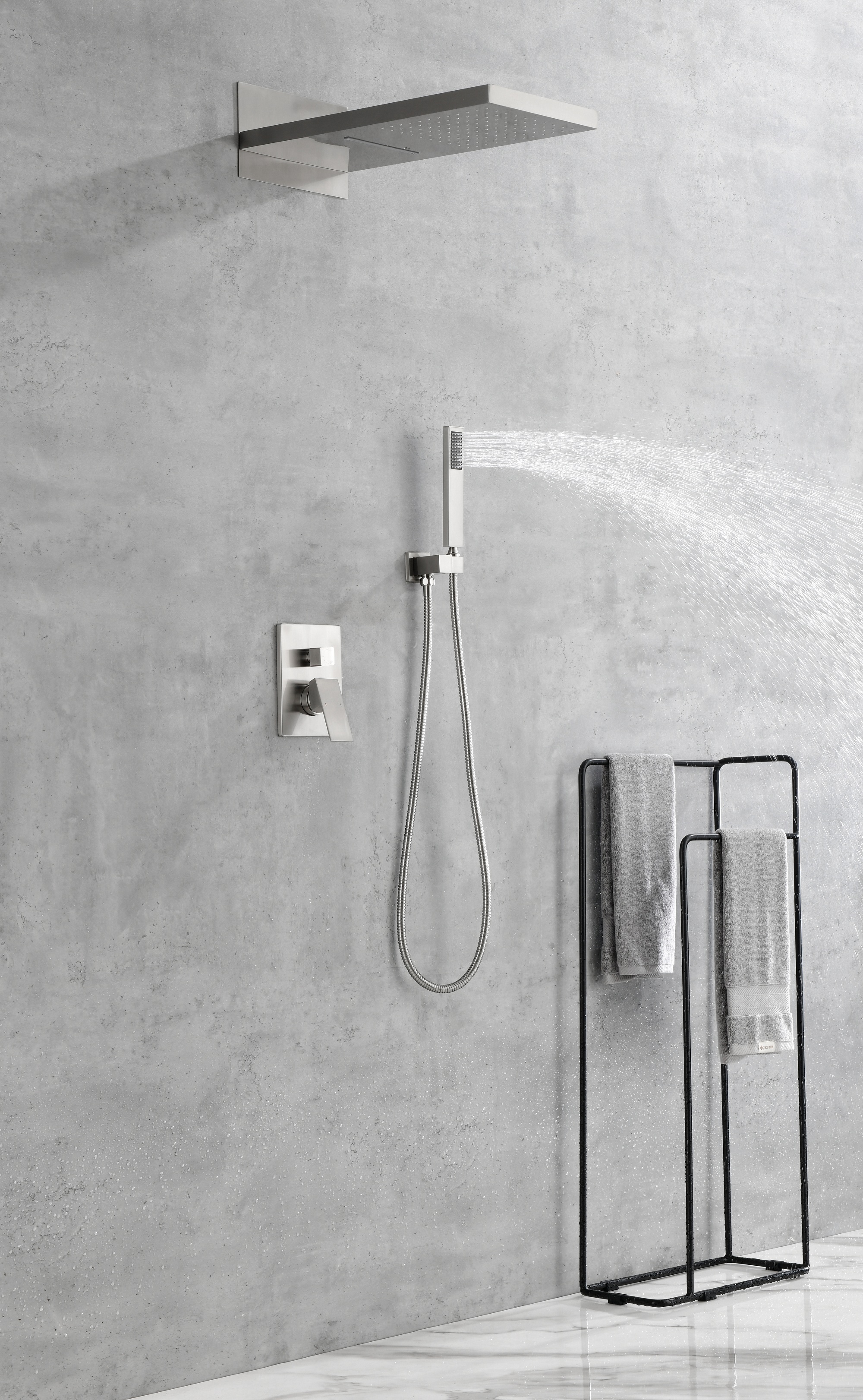 3 types of water outlet methods can be obtained with a simple switch.2-function waterfall shower heads, single function hand shower, rain shower and handheld can provide consistent and powerful shower even under low water pressure.Concealed wall mounted installation shower arm, shower bracket holder and shower mixer valve are could be install concealed to water pipe in your bath.