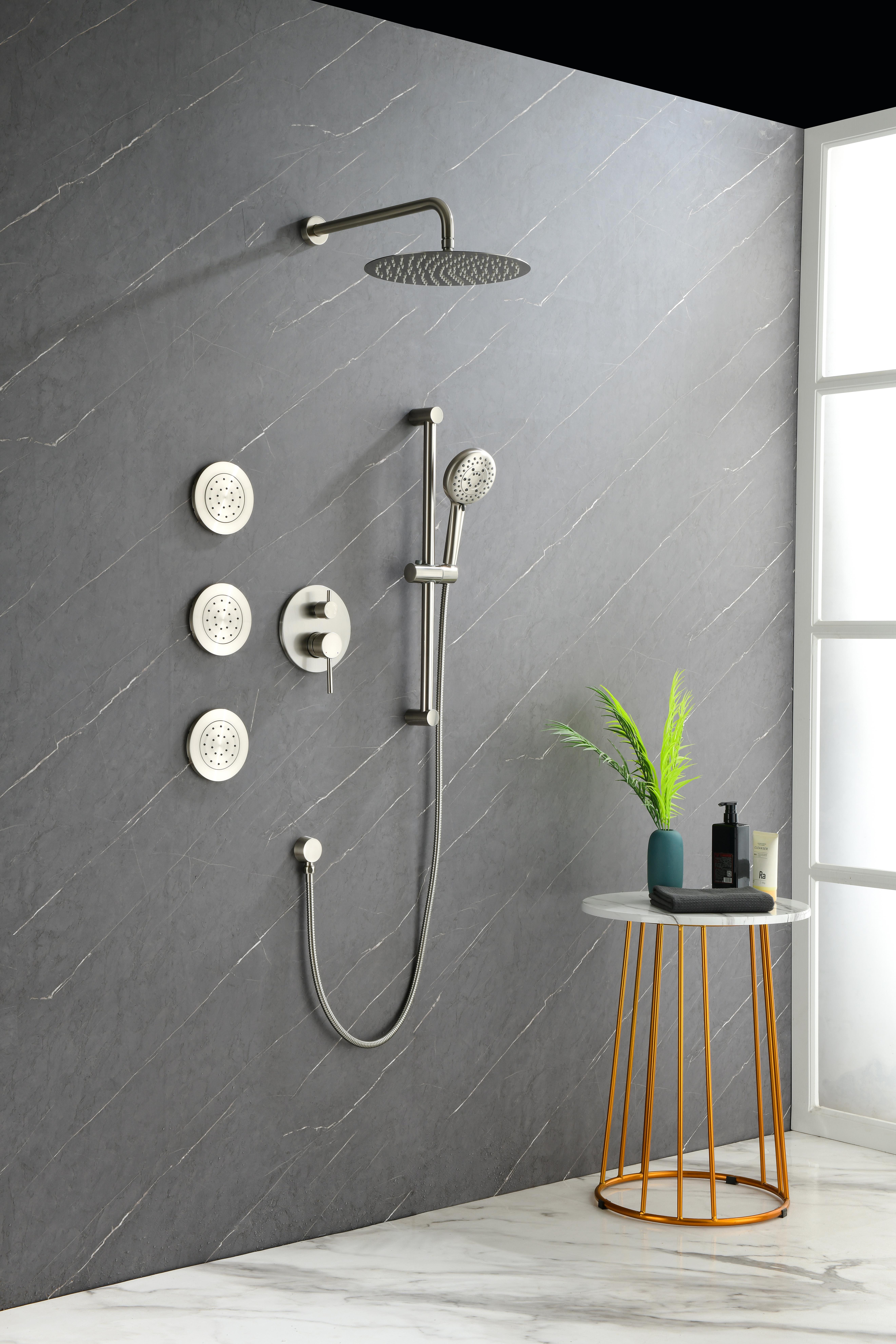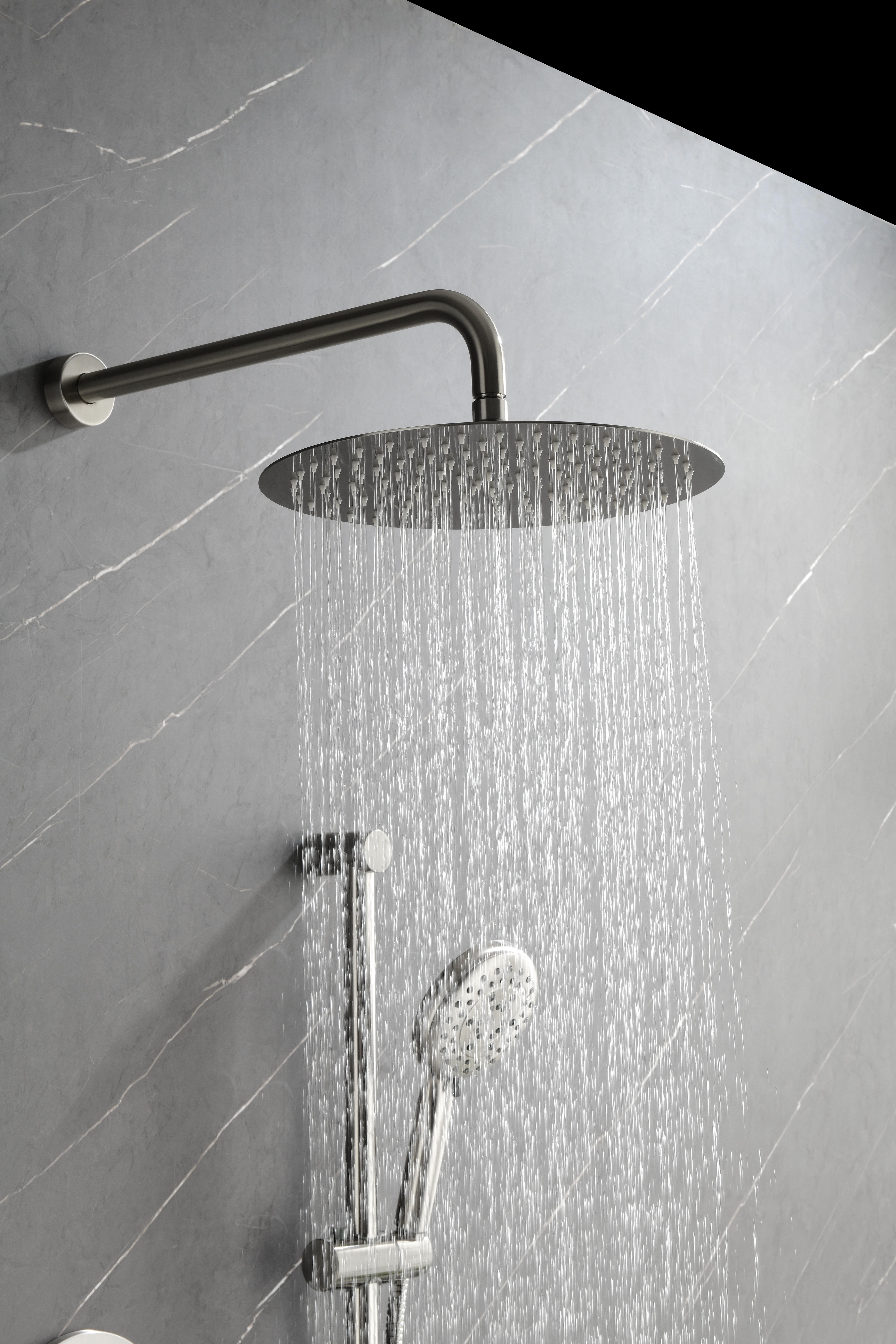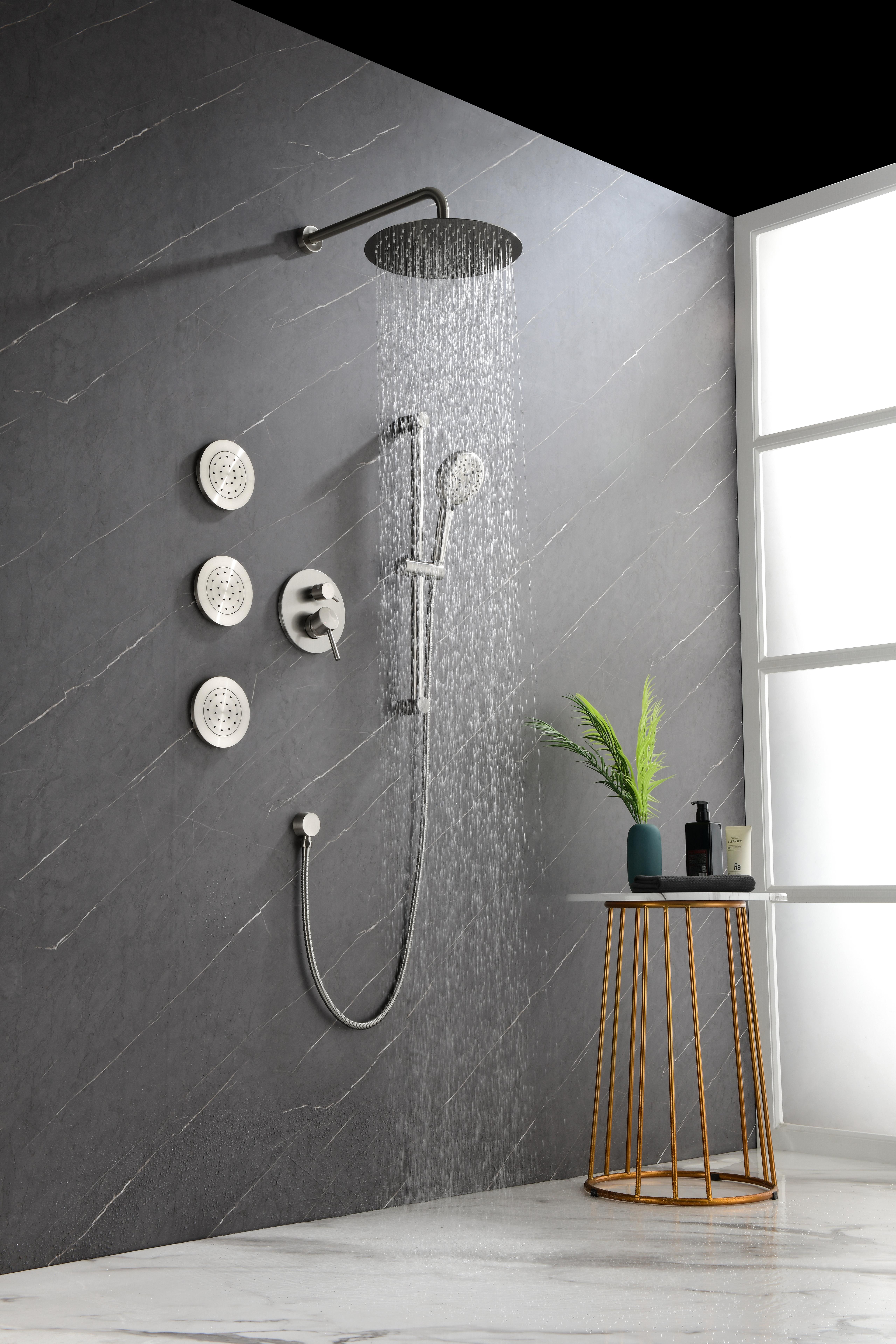 3-function pressure balance valve, 3 side spray, 1.5m 304 stainless steel hose, 400mm wall pipe, 12 inch round 304 stainless steel top spray, stainless steel lifting rod