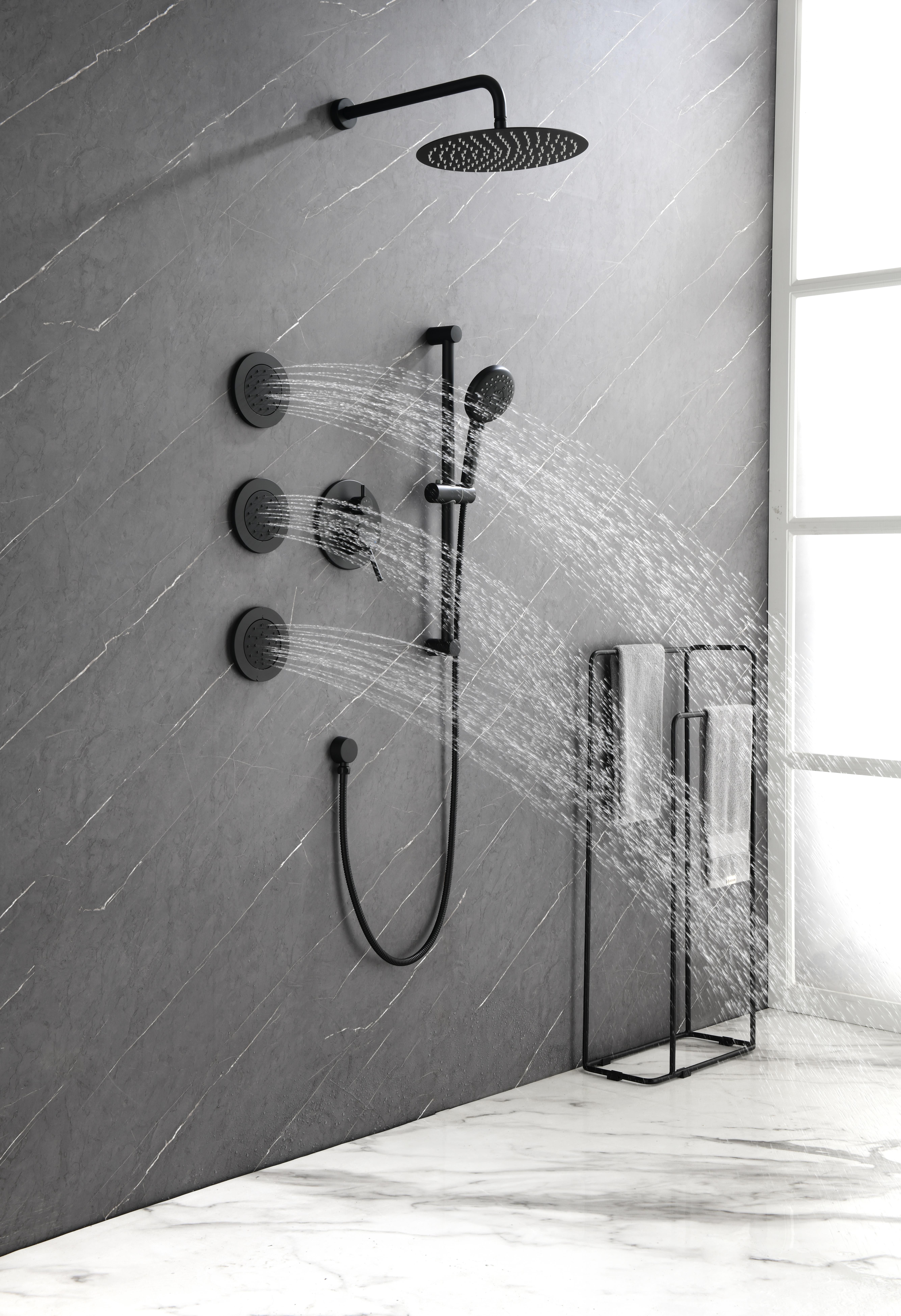3-function pressure balance valve, 3 side spray, 1.5m 304 stainless steel hose, 400mm wall pipe, 12 inch round 304 stainless steel top spray, stainless steel lifting rod