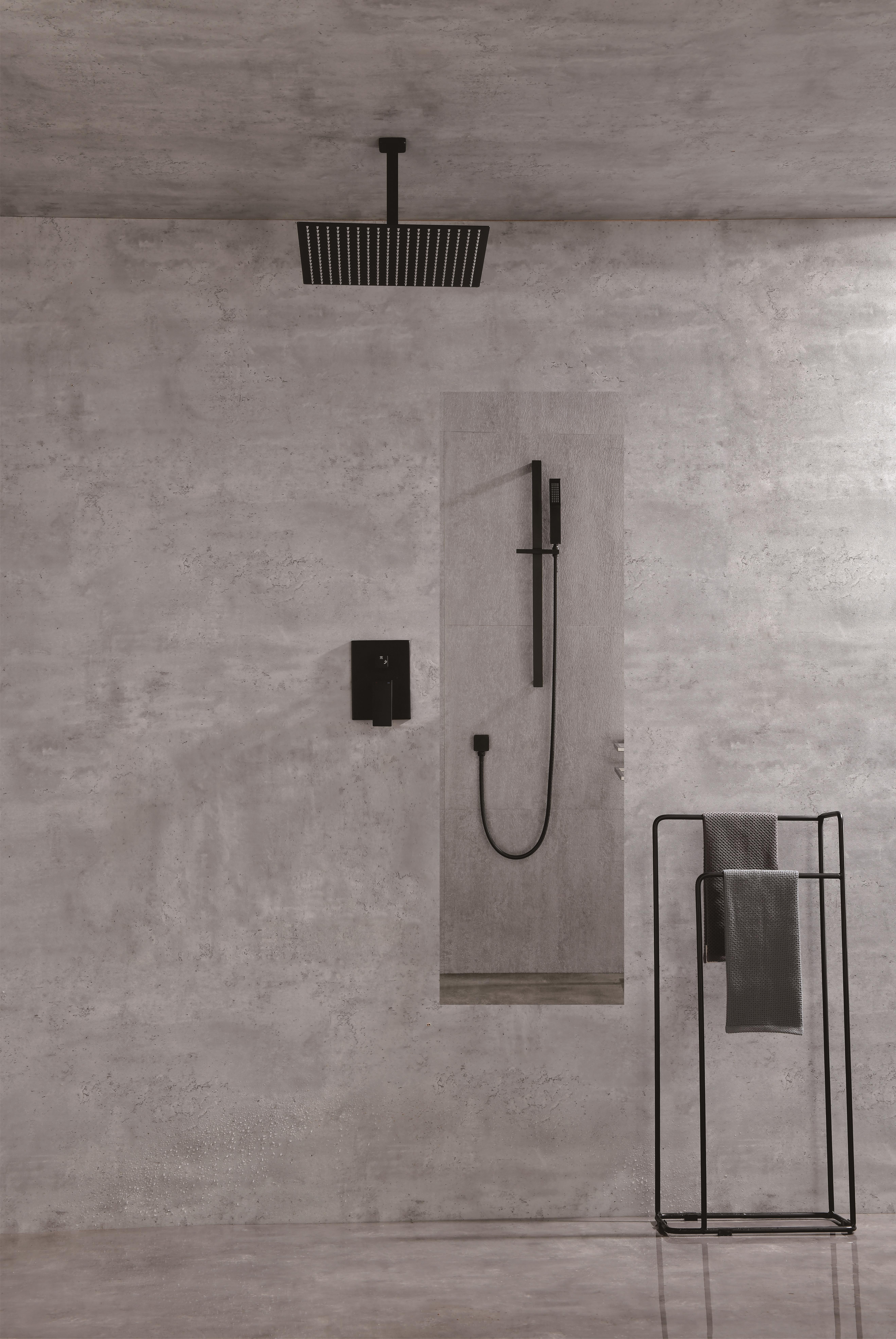 16 Inches Matte Black Shower Set System Bathroom Luxury Rain Mixer Shower Combo Set Ceiling Mounted Rainfall Shower Head Faucet (Contain Shower Faucet Rough-In Valve Body and Trim)