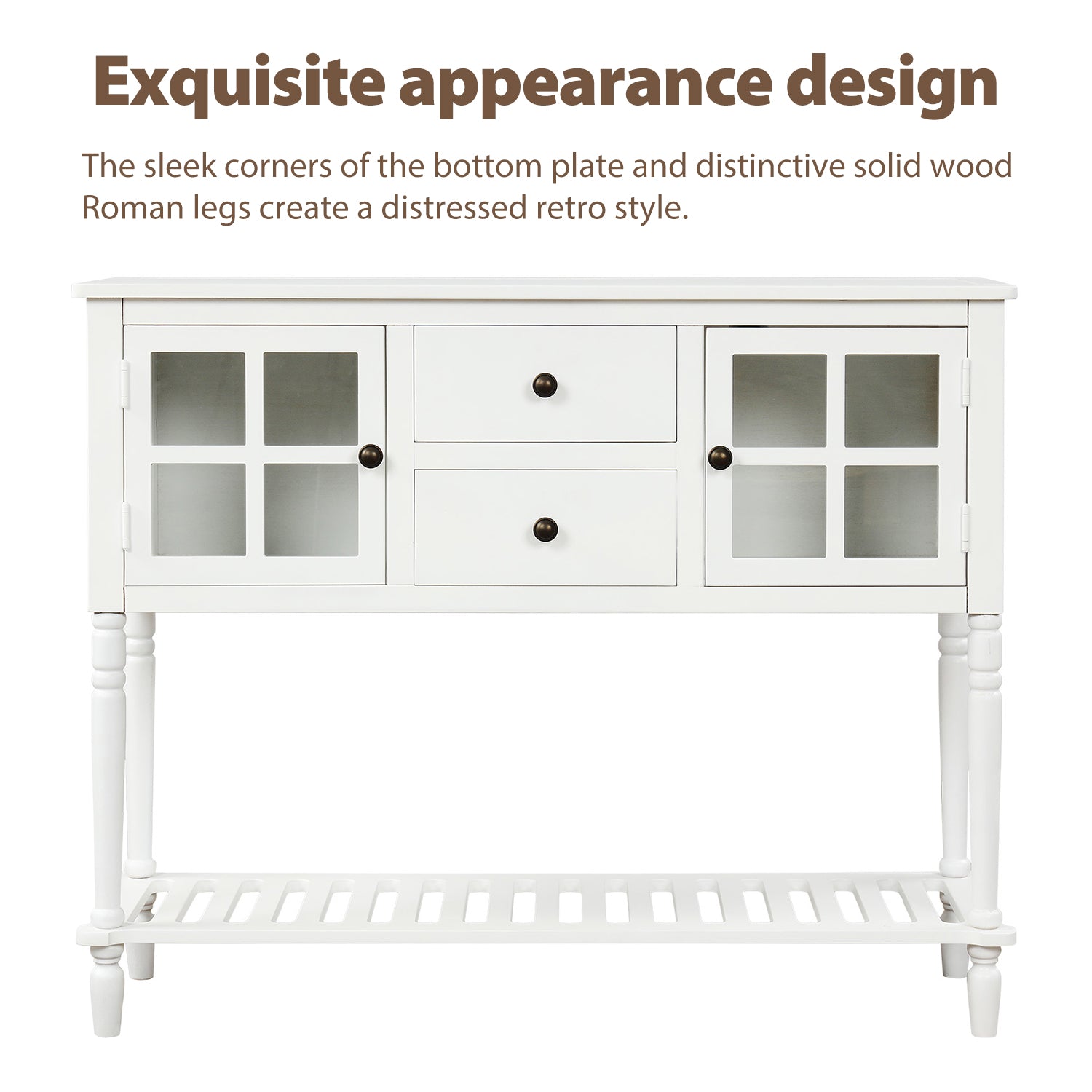 Sideboard Console Table with Bottom Shelf, Farmhouse Wood/Glass Buffet Storage Cabinet Living Room