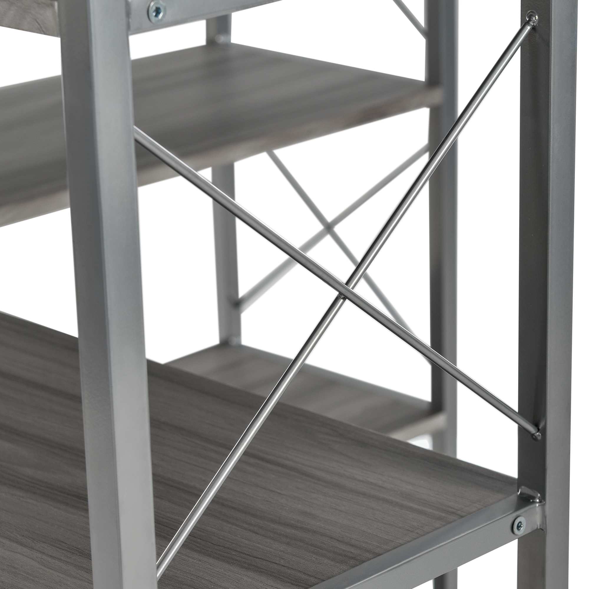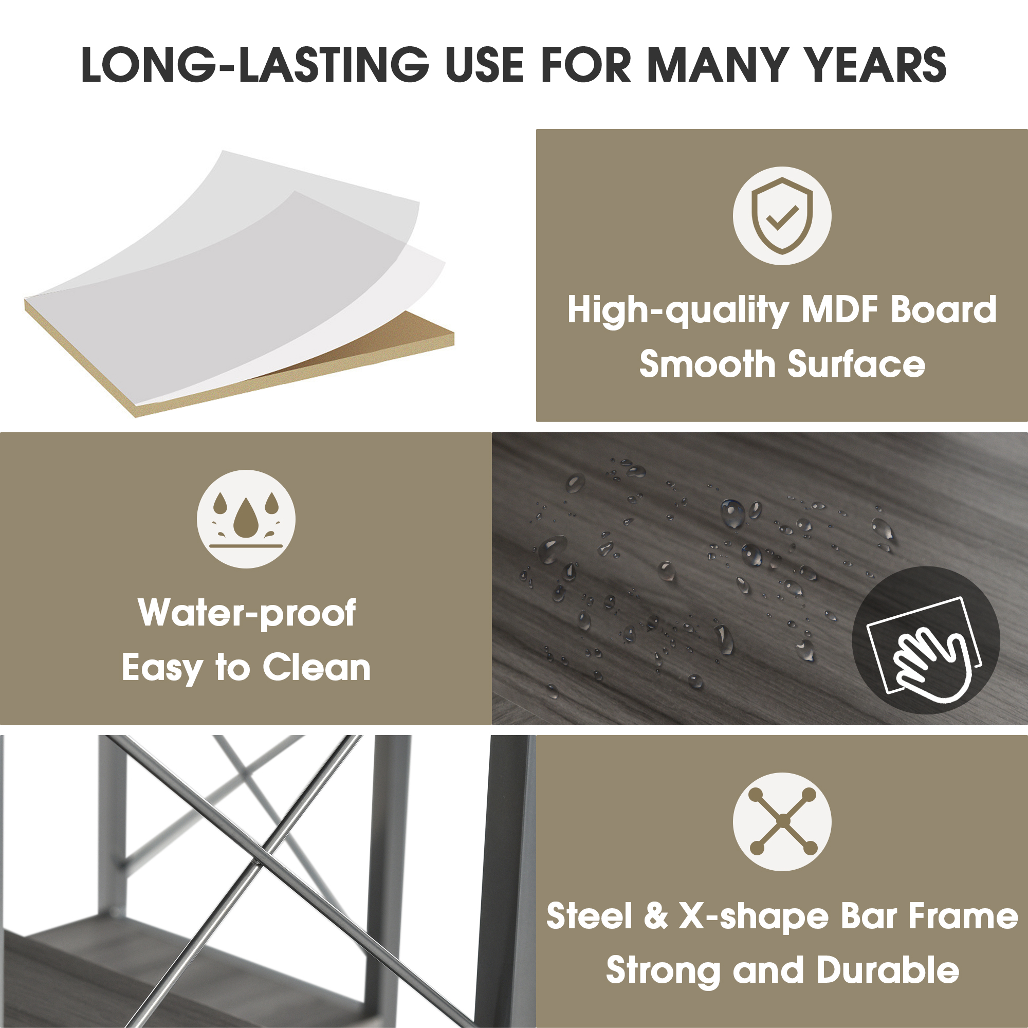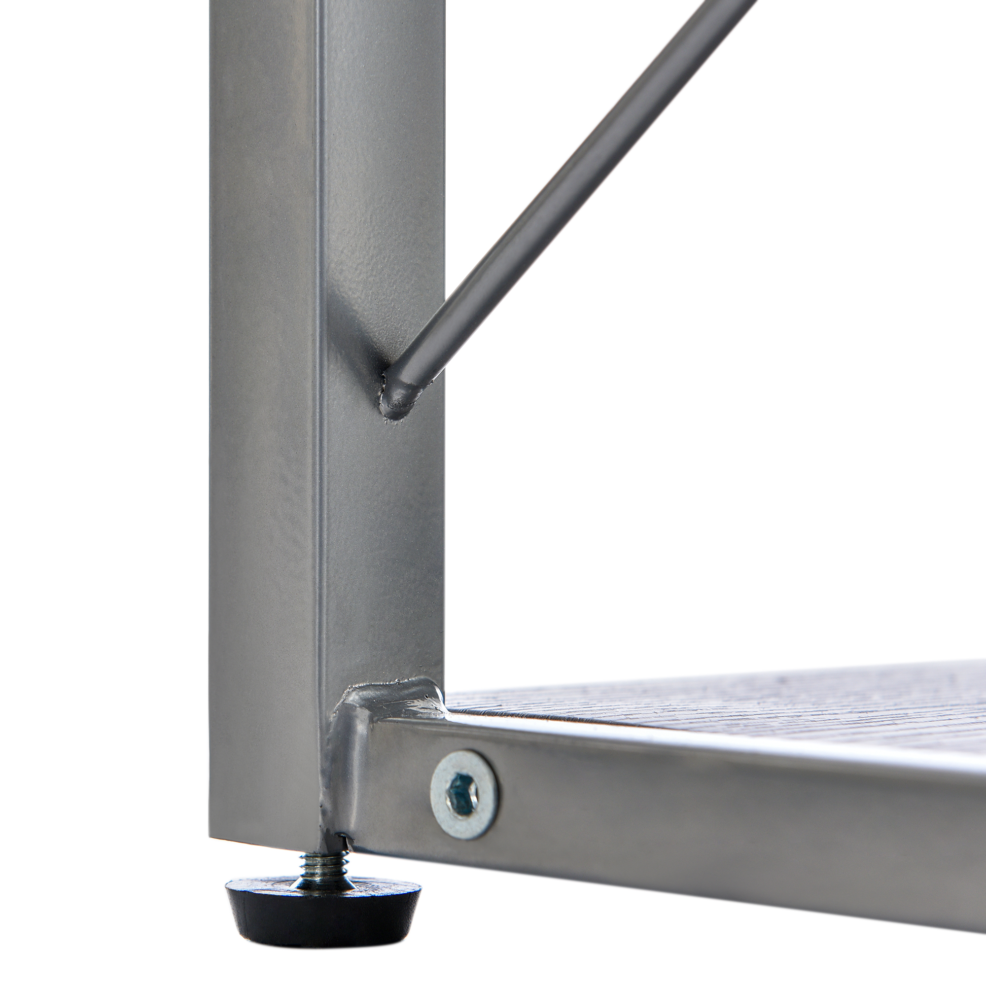 To meet different requirements from users, this metal frame bookshelf is marketed in five different colors: brown, nature, black, white, and grey. This bookshelf is equipped with adjustable foot pads to prevent the shelf from swaying due to uneven floors and also protects the floor. For safety, this metal bookshelf is also equipped with an anti-tipping device.