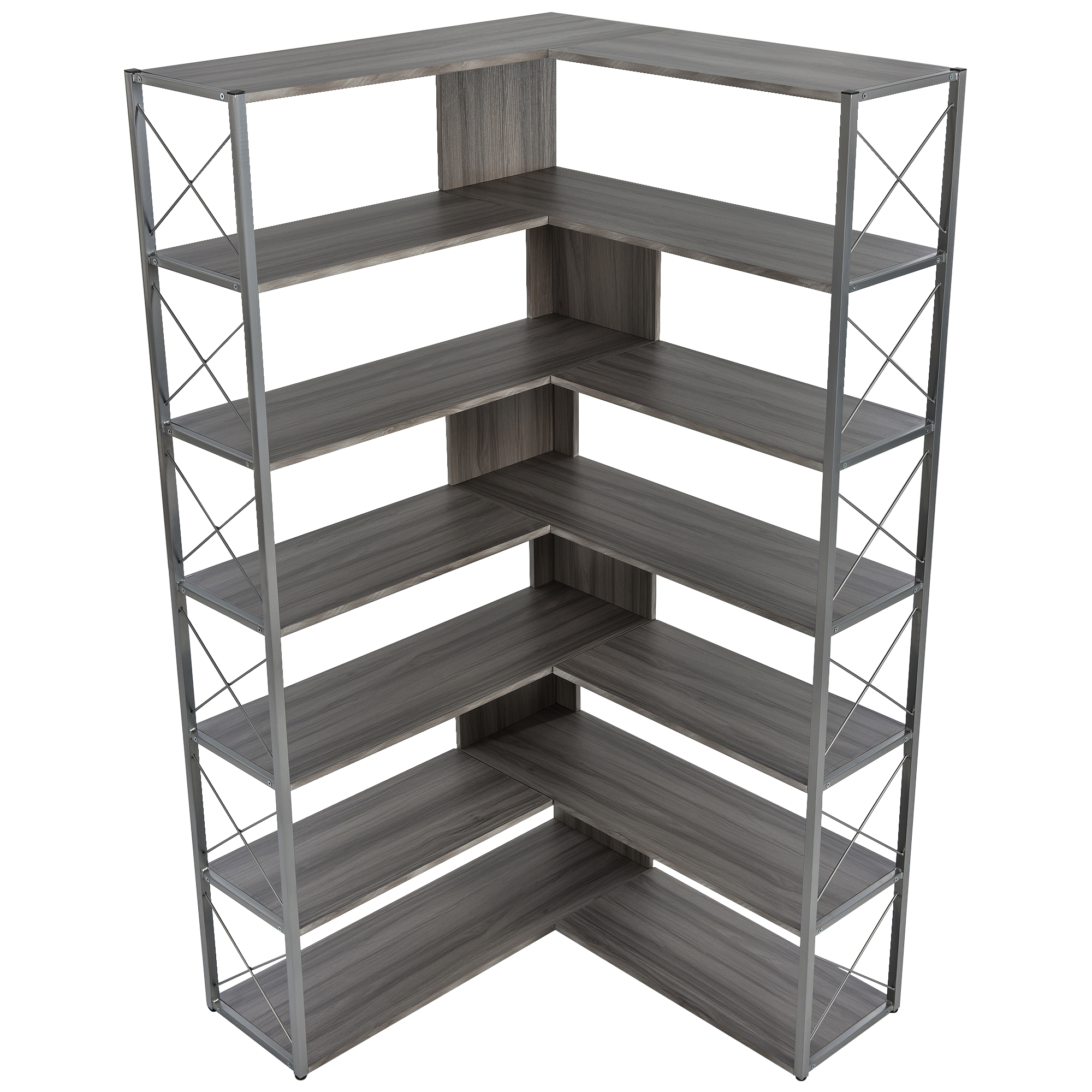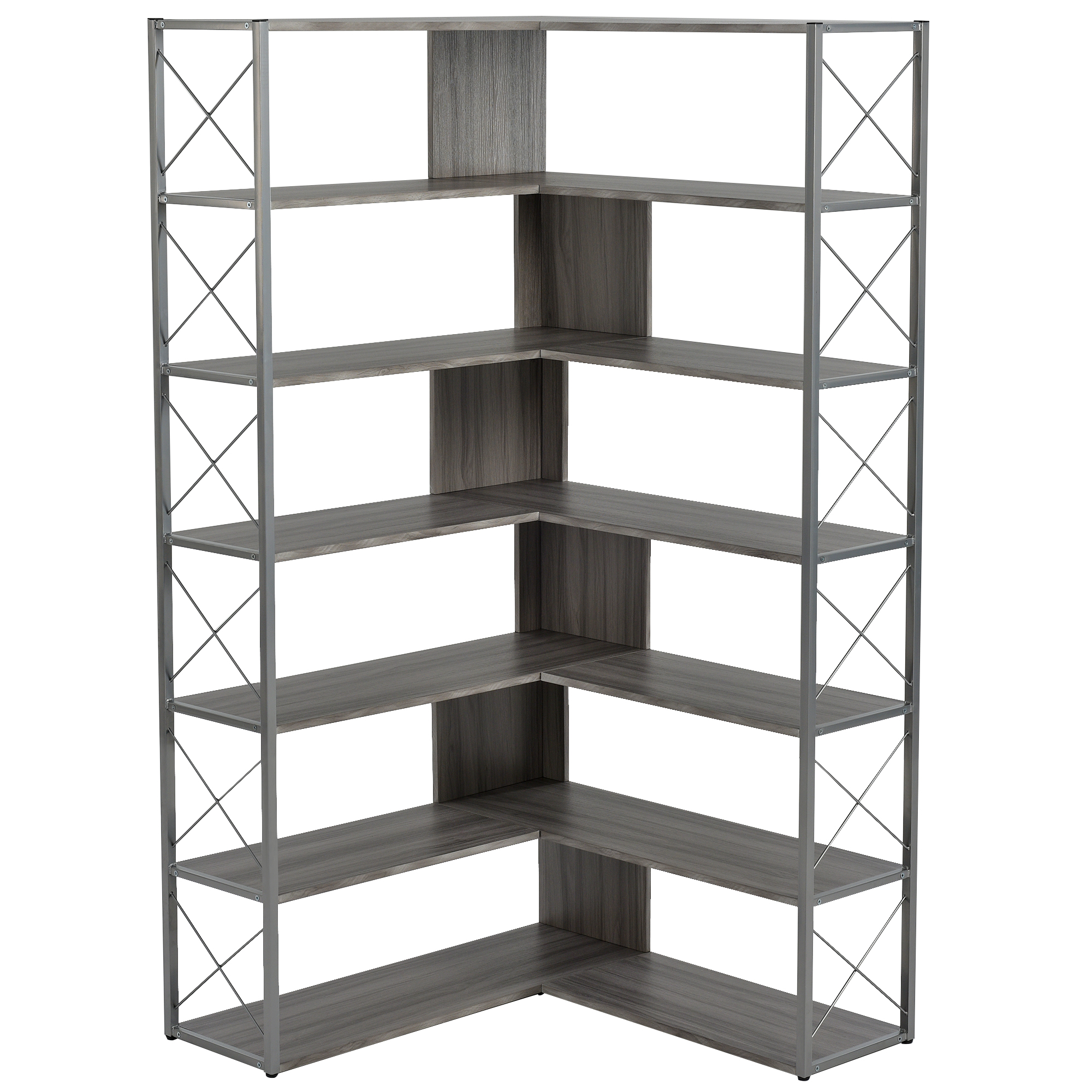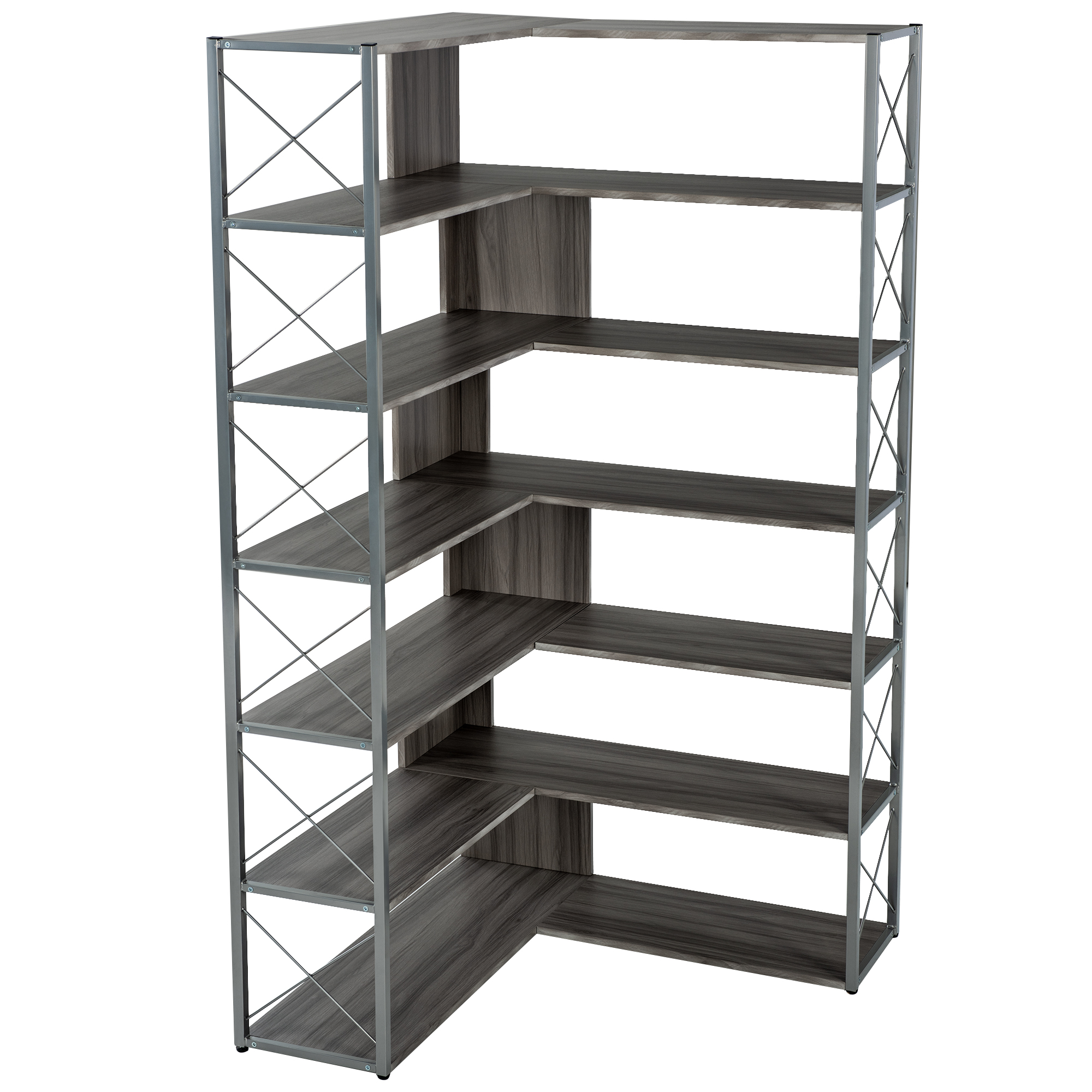 7-Tier Bookcase Home Office Bookshelf, L-Shaped Corner Bookcase