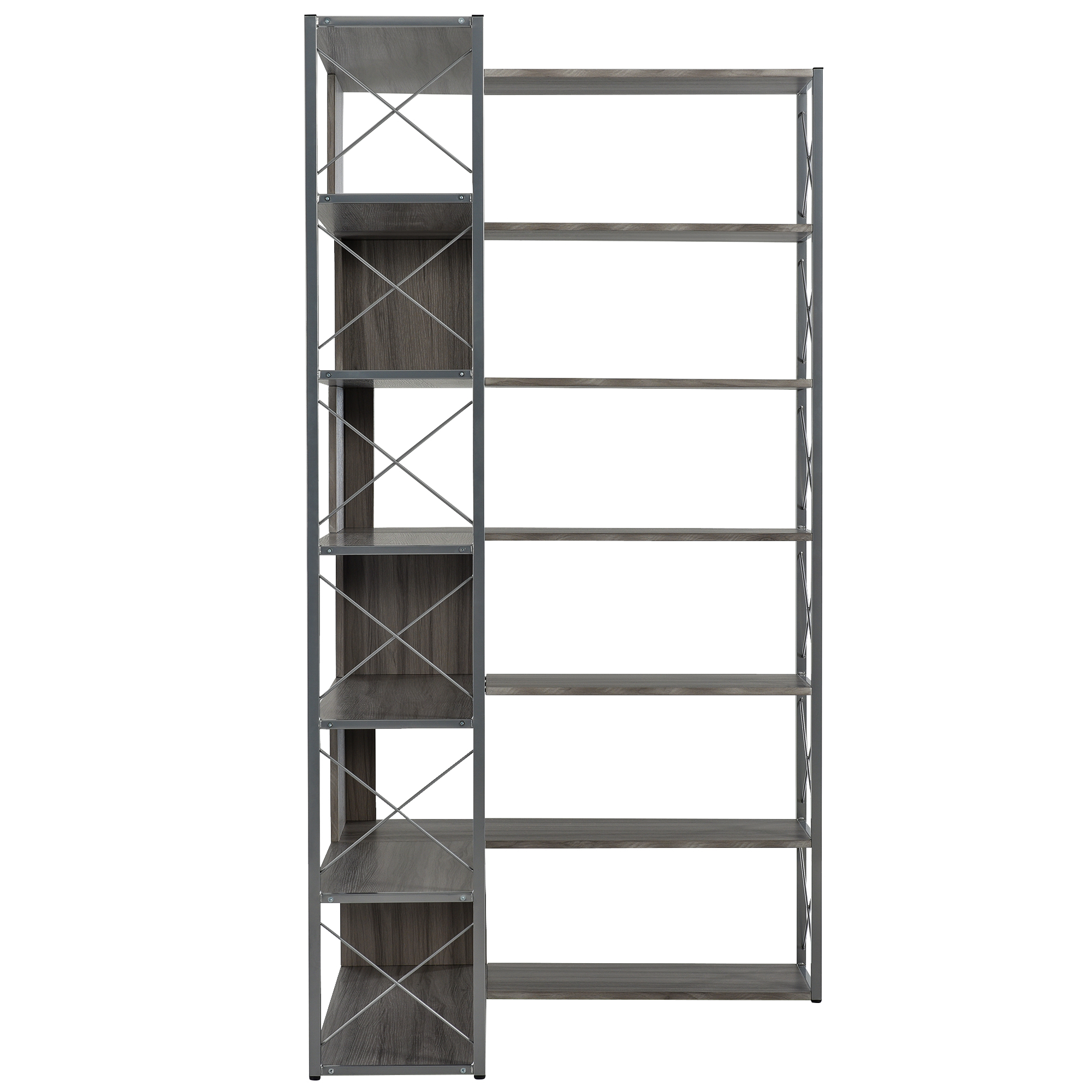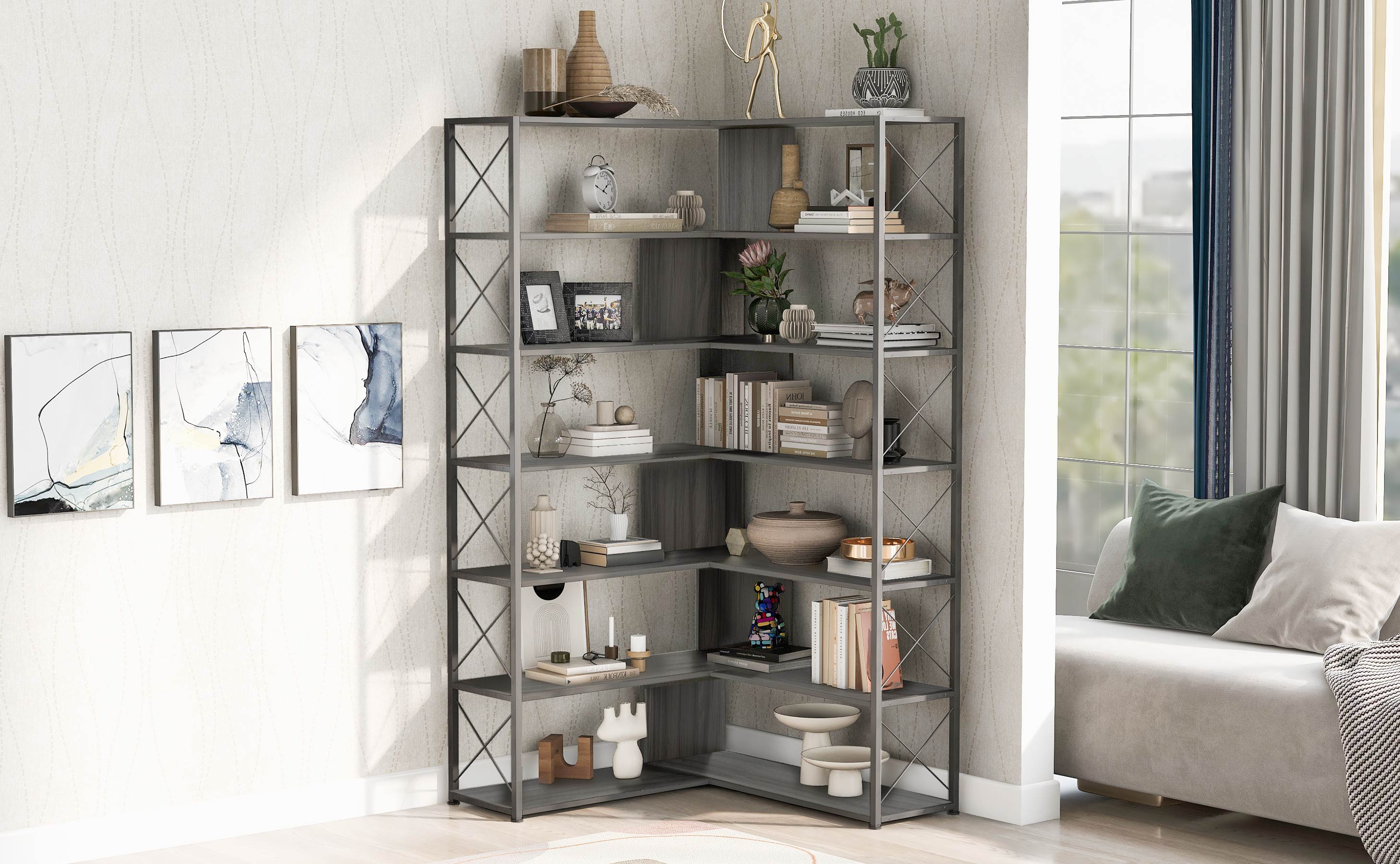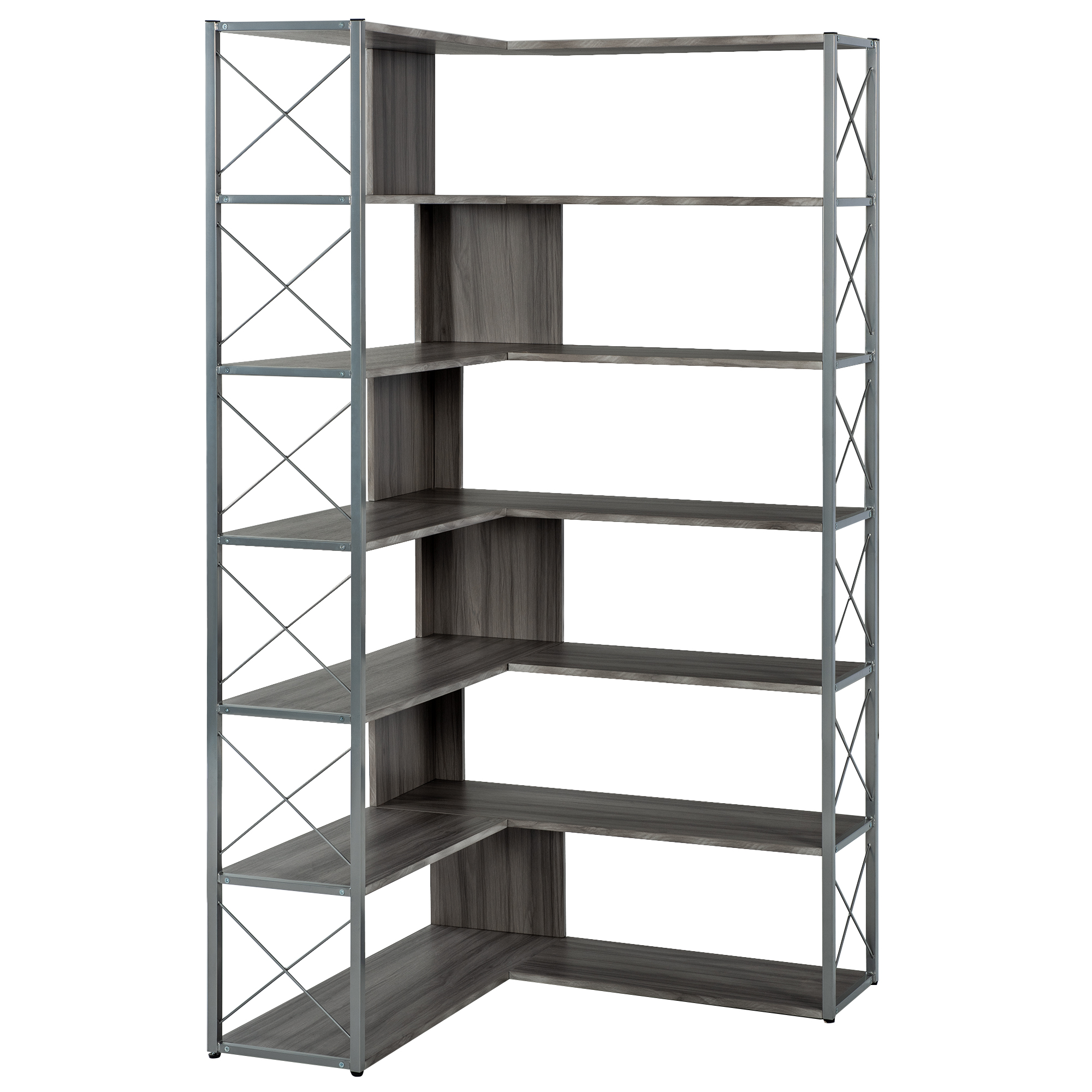 7-Tier Bookcase Home Office Bookshelf, L-Shaped Corner Bookcase