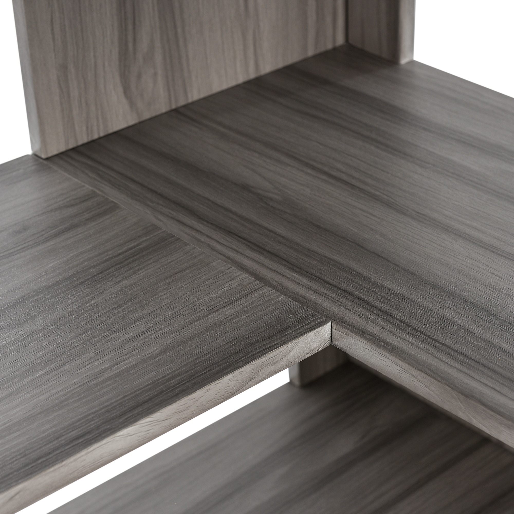 As a piece of functional furniture, this elegant and tall bookshelf has an L-shaped design, and it makes more efficient use of corner space. The X-shaped design on both sides is not only graceful but also can further strengthen the stability of the whole bookshelf and can be used as a safe facility to prevent items from falling.