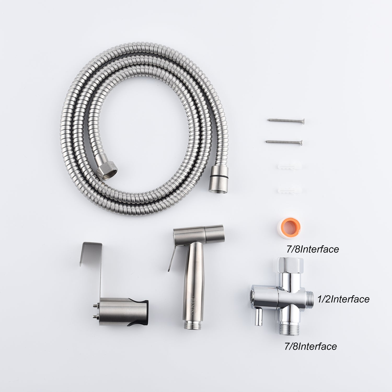 3. Comes with the installation kit so you don't have to buy anything else. Including lead-free brass T-Valve, Sprayer , Hose, Sprayer Holder (for wall or toilet side mounting), teflon plumbers tape and screw.