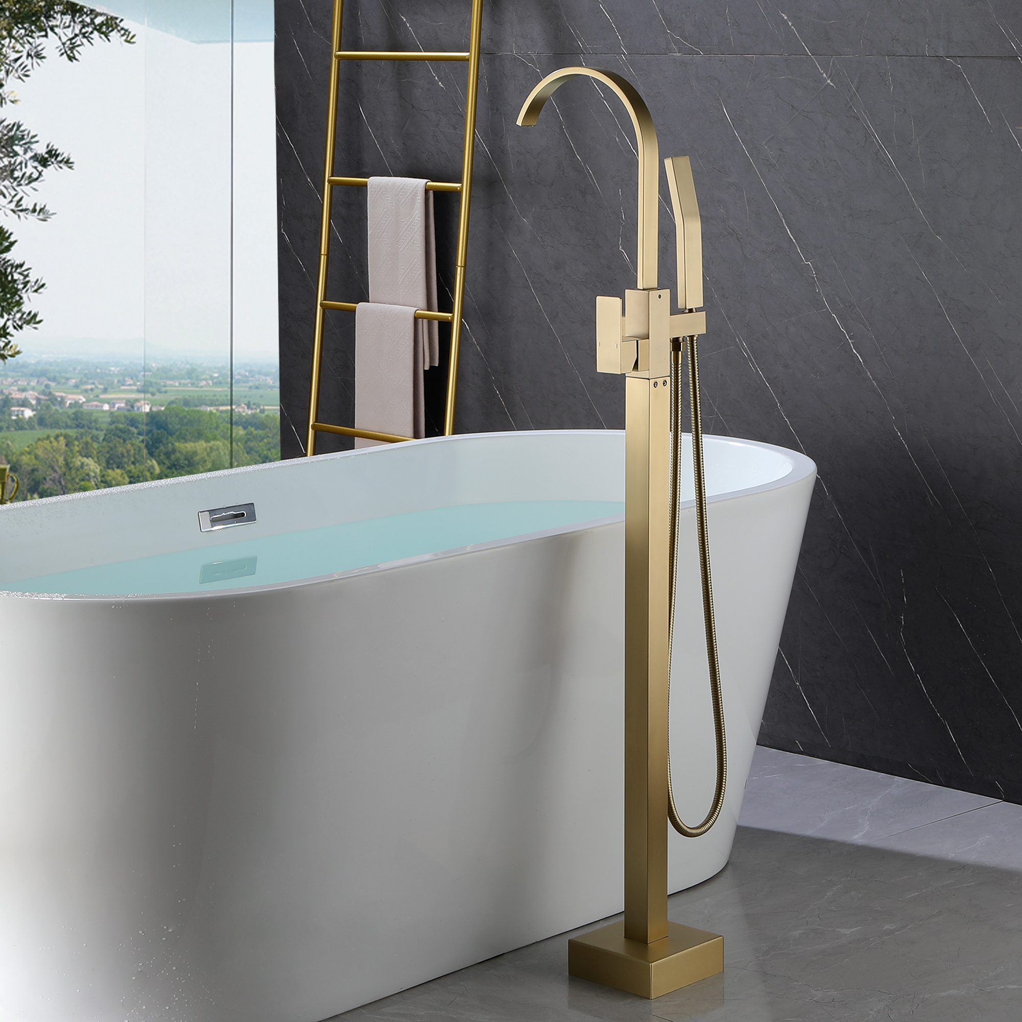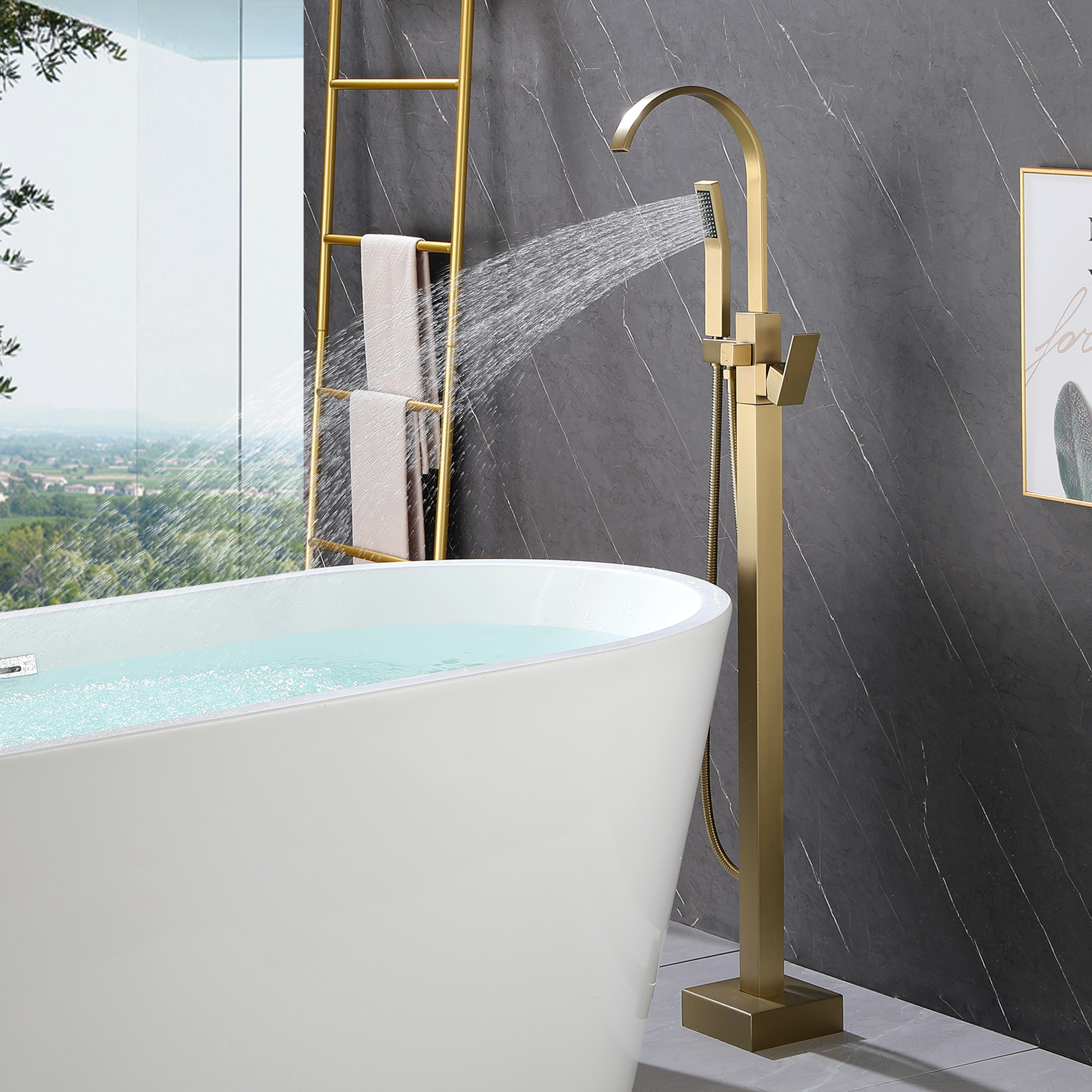 The design of the bathtub faucet ensures resistance to corrosion and tarnishing, which is also suitable for floor-standing installation. The diverter valve knob to switch water to tub spout or hand shower, make it convenient to flush the bathtub or bathroom after a shower.