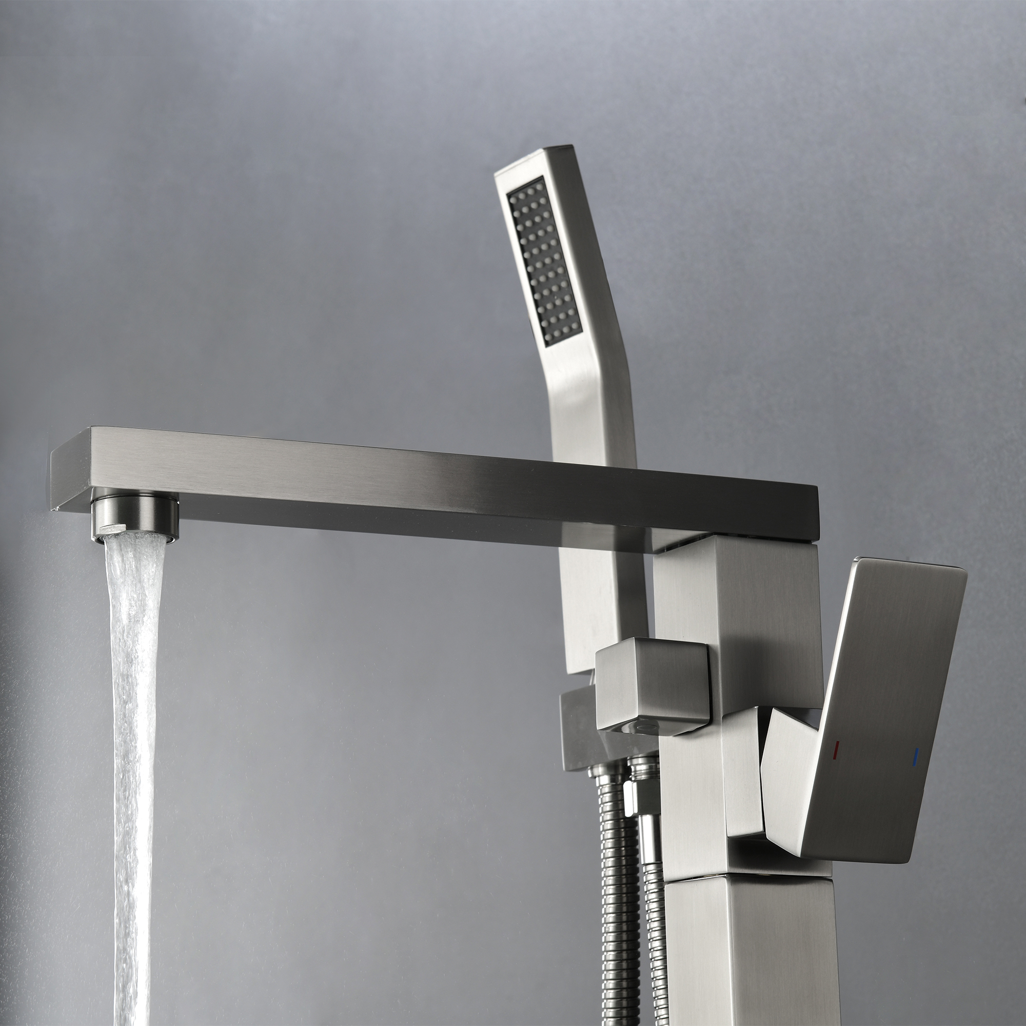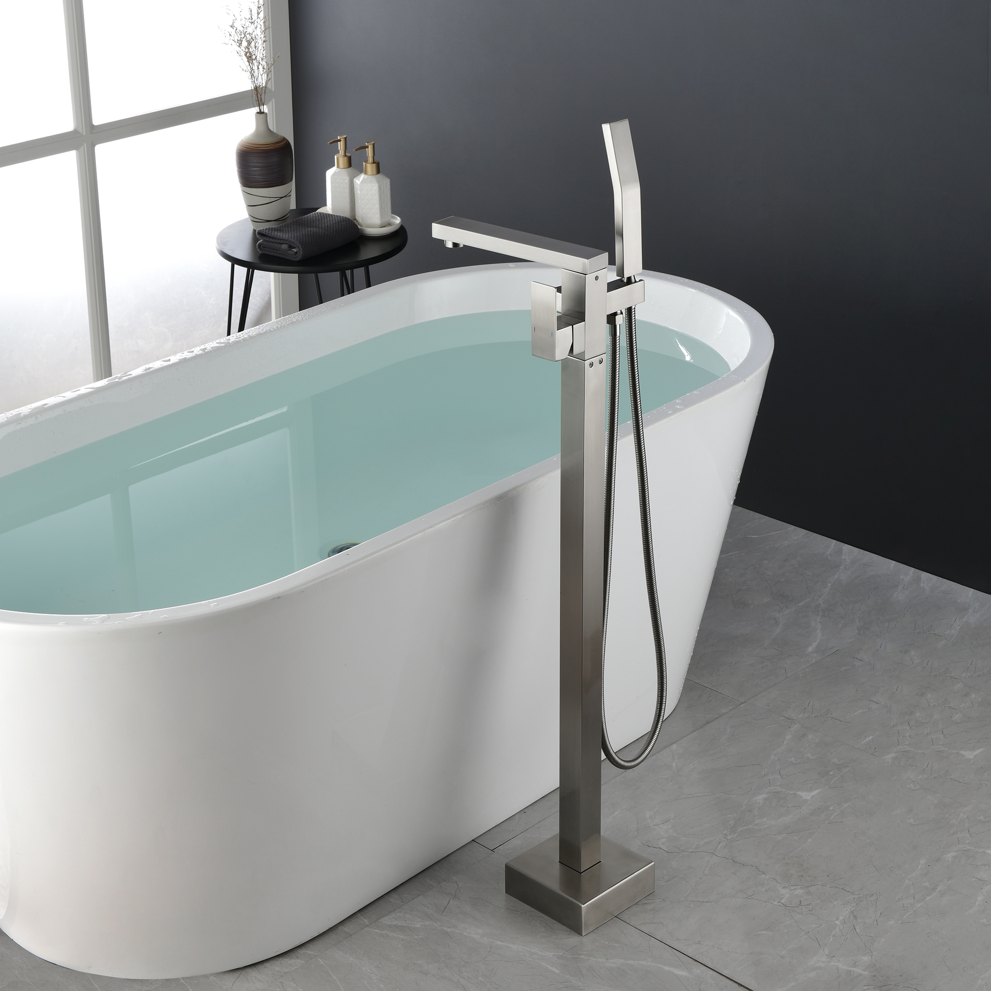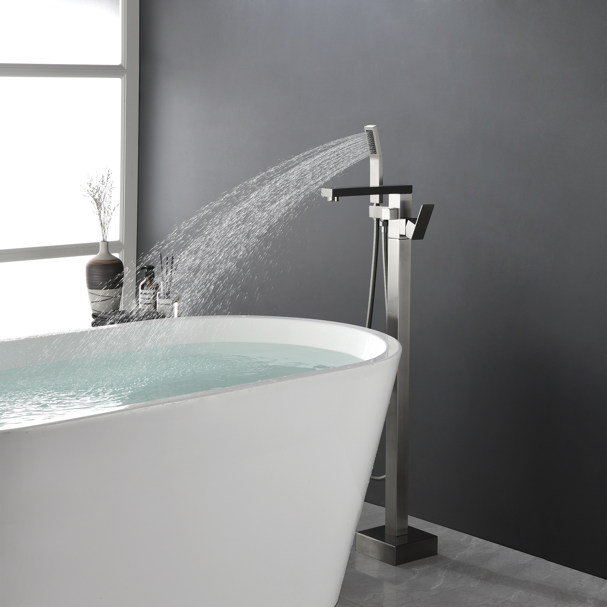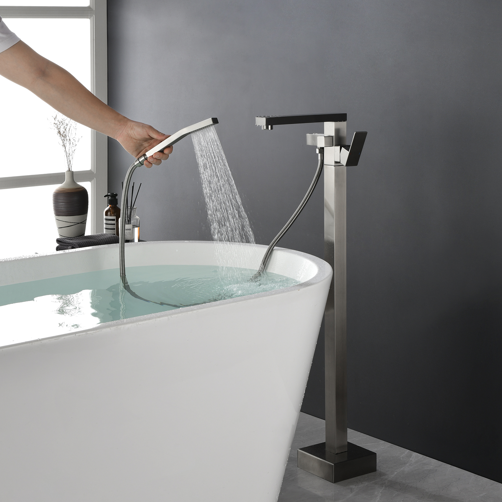 The design of the bathtub faucet ensures resistance to corrosion and tarnishing, which is also suitable for floor-standing installation. The diverter valve knob to switch water to tub spout or hand shower, make it convenient to flush the bathtub or bathroom after a shower.