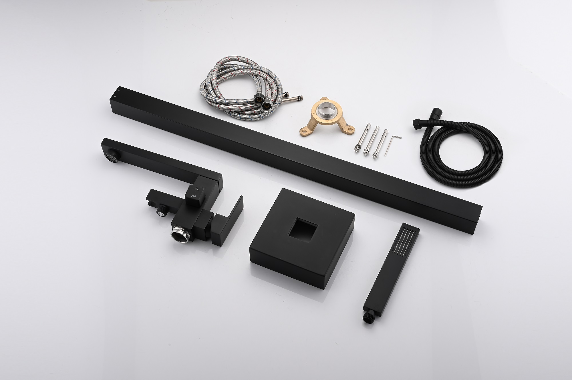 All mounting hardware, hot/cold waterlines, Handheld shower set, and 59" shower hose are included.