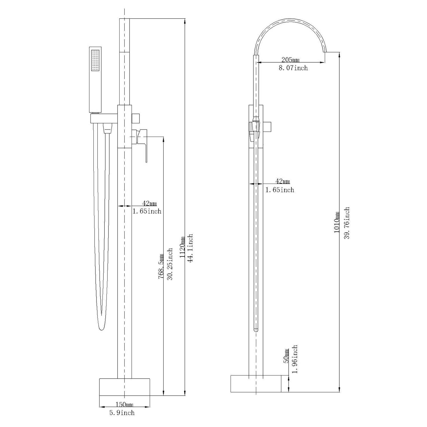 - 【 Reliable Design】: The design of the bathtub faucet ensures resistance to corrosion and tarnishing, which is also suitable for floor-standing installation. The diverter valve knob to switch water to tub spout or hand shower, make it convenient to flush the bathtub or bathroom after a shower.