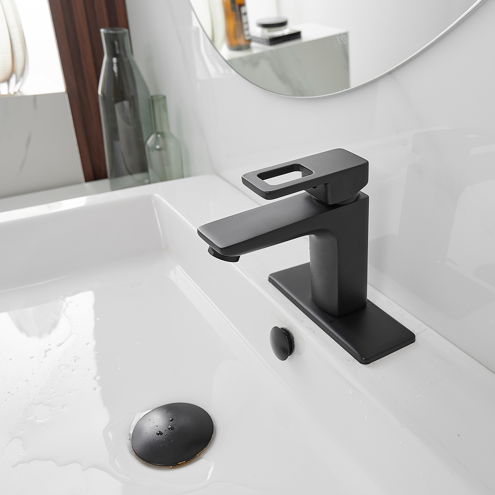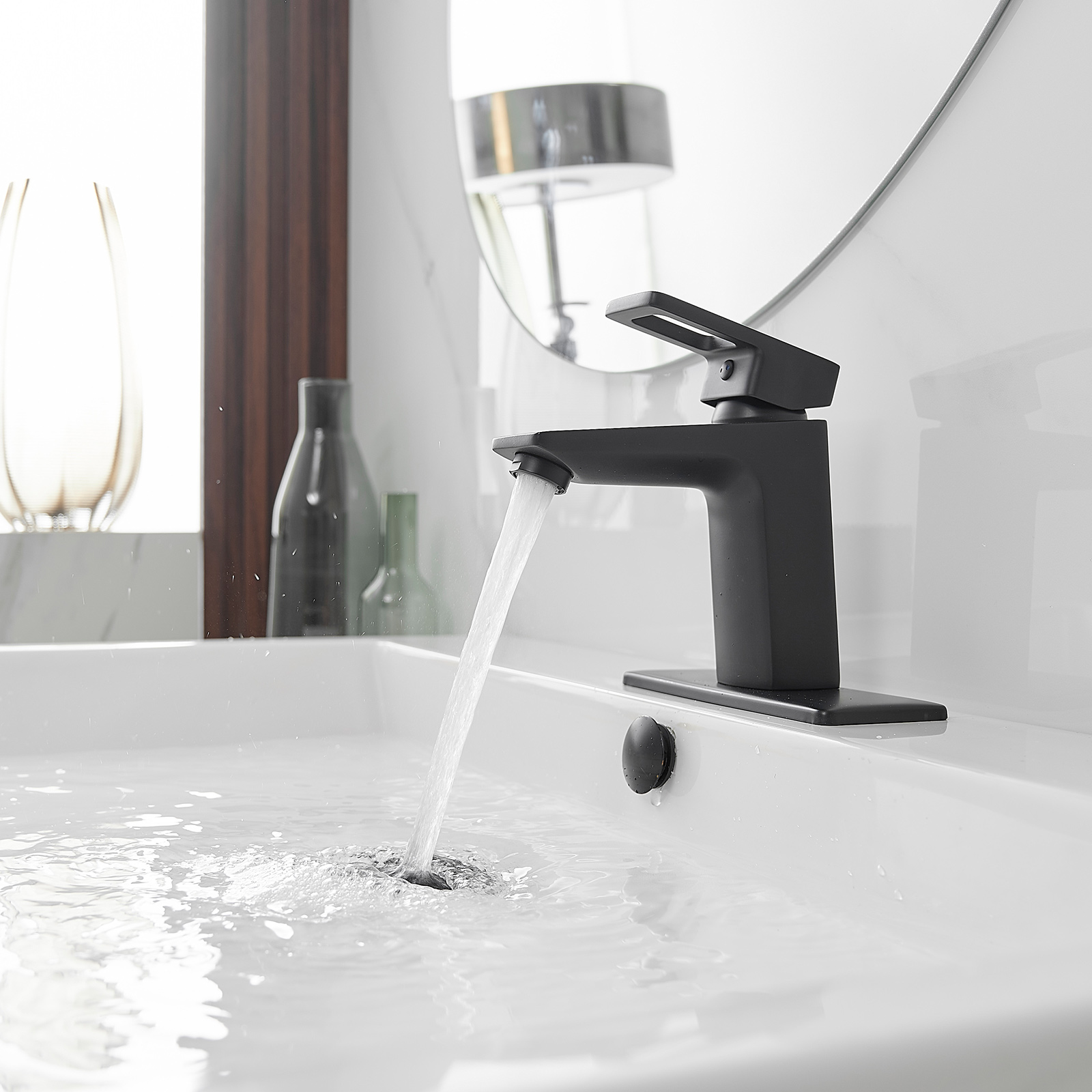 - Finish: matte black finish goes with everything, from its durable, long-lasting construction to the contemporary and decor-complementing design, this faucet belongs in your bathroom