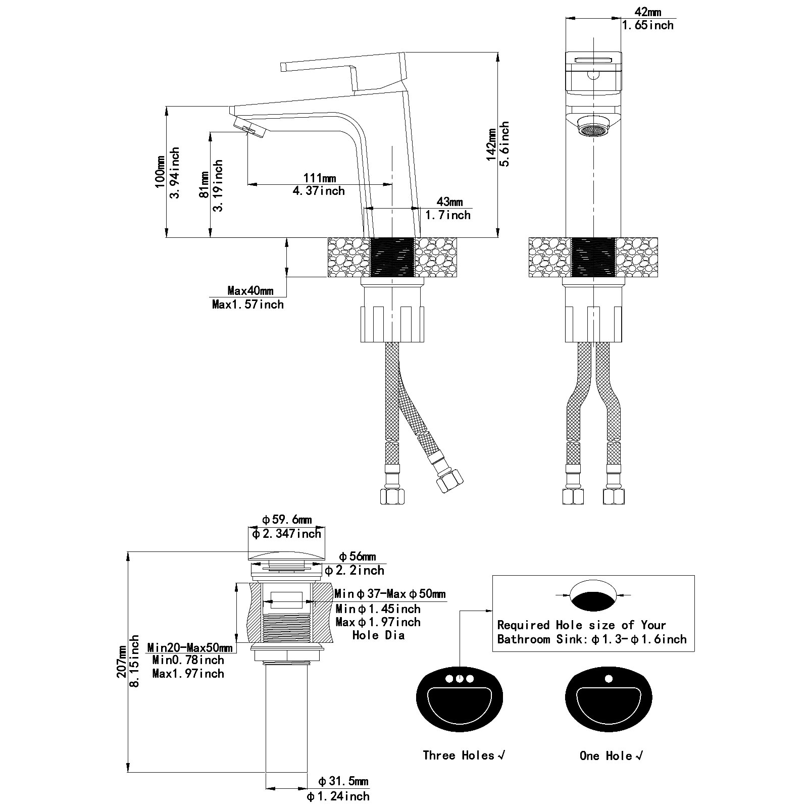- Ergonomic design: this faucet is built with high standard criteria for water efficiency without sacrificing water pressure or overall performance, complete with hot and cold water hoses and accessories