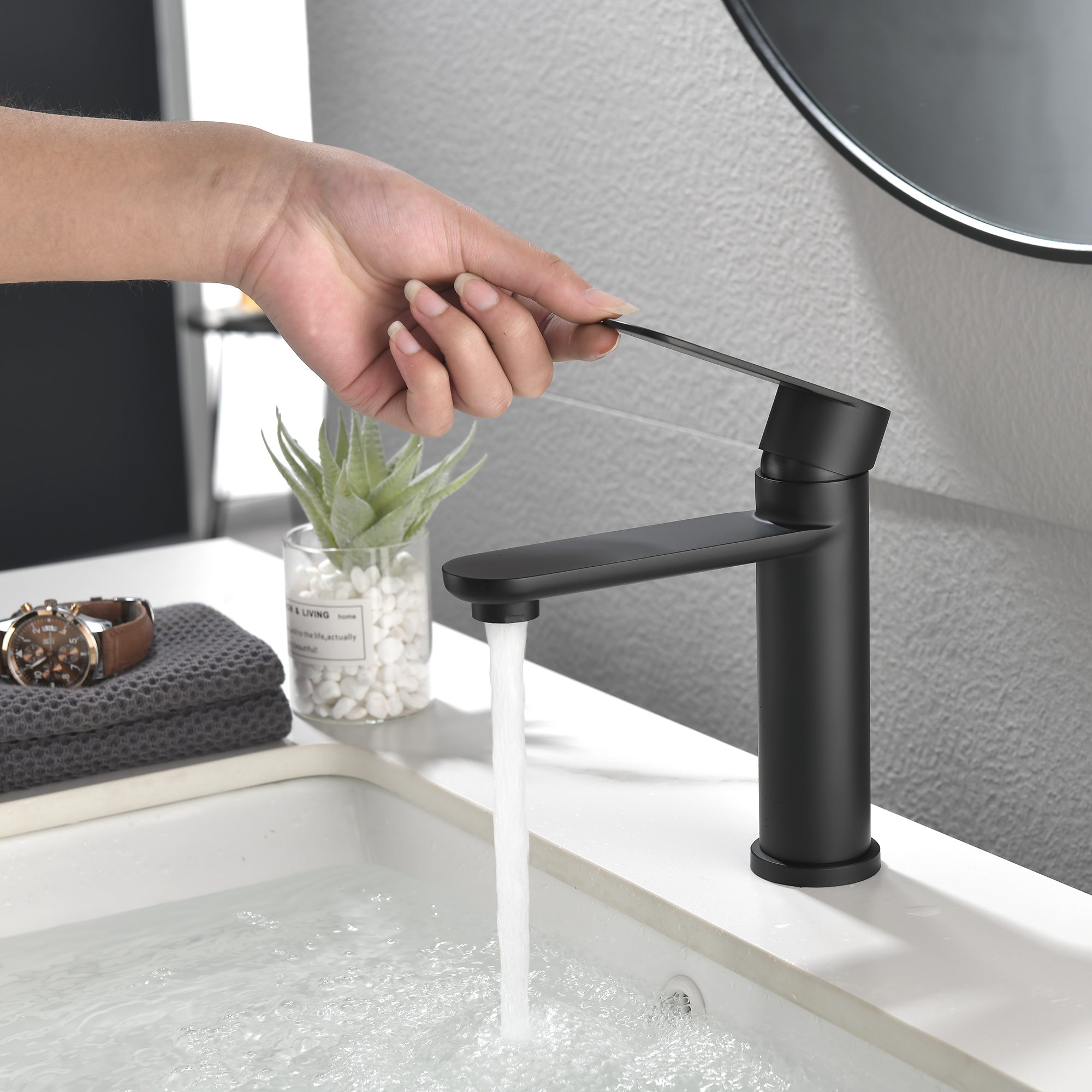 1.Installation Type:Single hole faucet2.colour:Matte Black3.Number of Installation Holes:14.Faucet Design:Metering5.Swivel Spout:NO6.Primary Material:brass7.Resistance Type:Rust & Corrosion Resistant8.Maximum Flow Rate (GPM):1.59.Handle(s) Included:Yes10.Number of Handles:111.Hot/Cold Indicators:Yes12.Deck Plate Included:No13.Valve Included:Yes14.Aerator Included:Yes15.Supply Lines Included:Yes