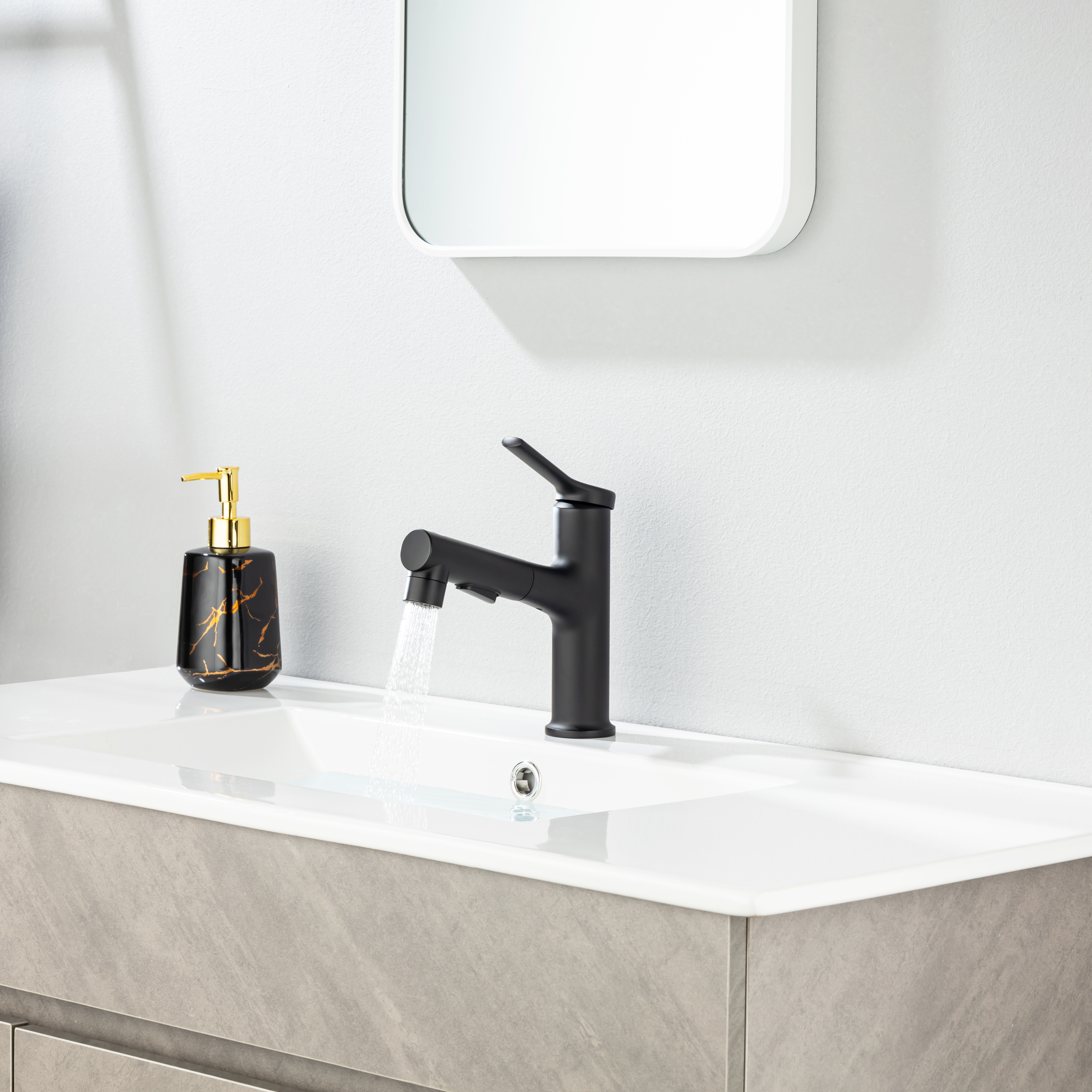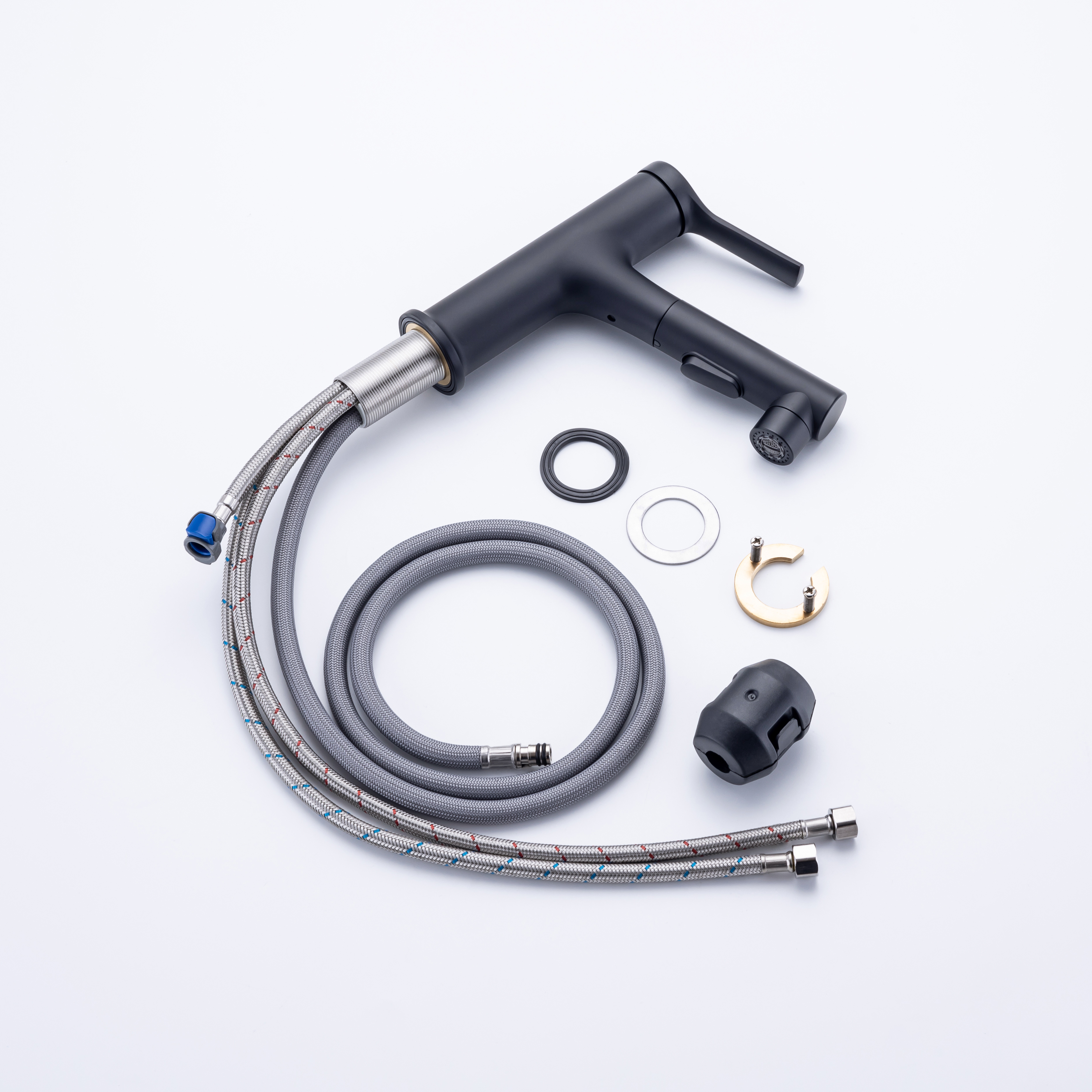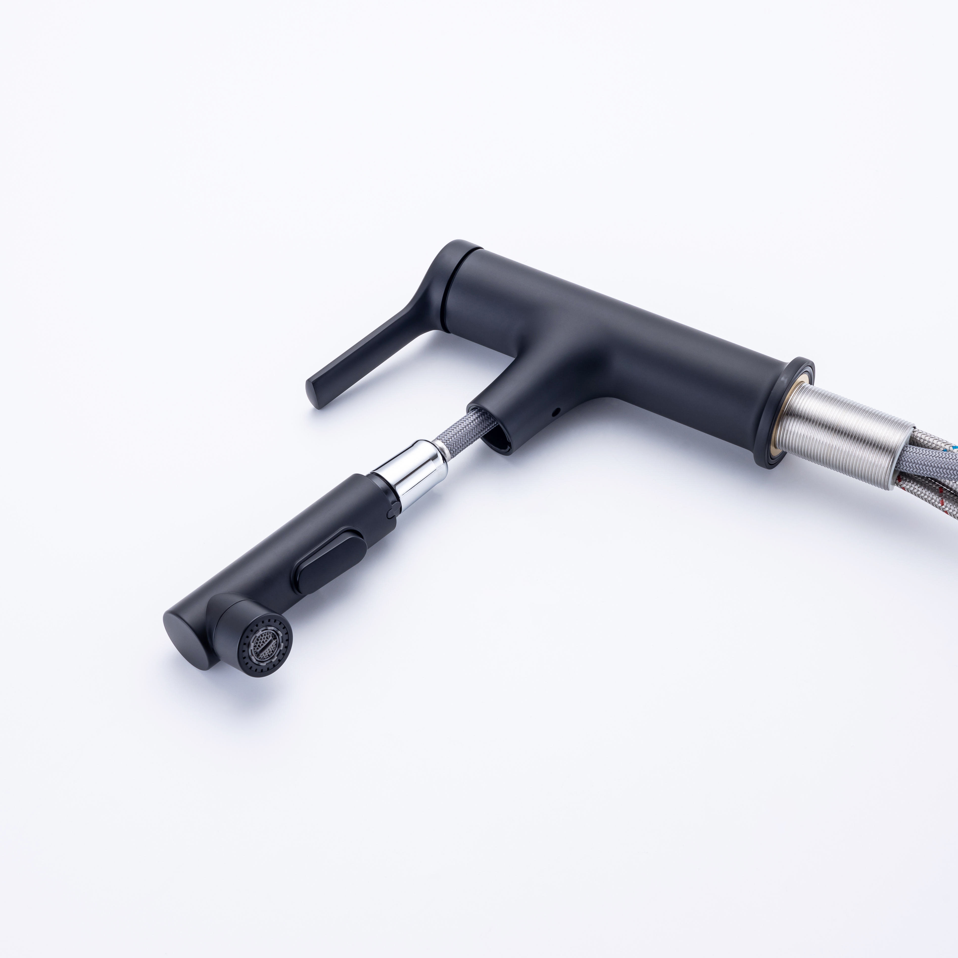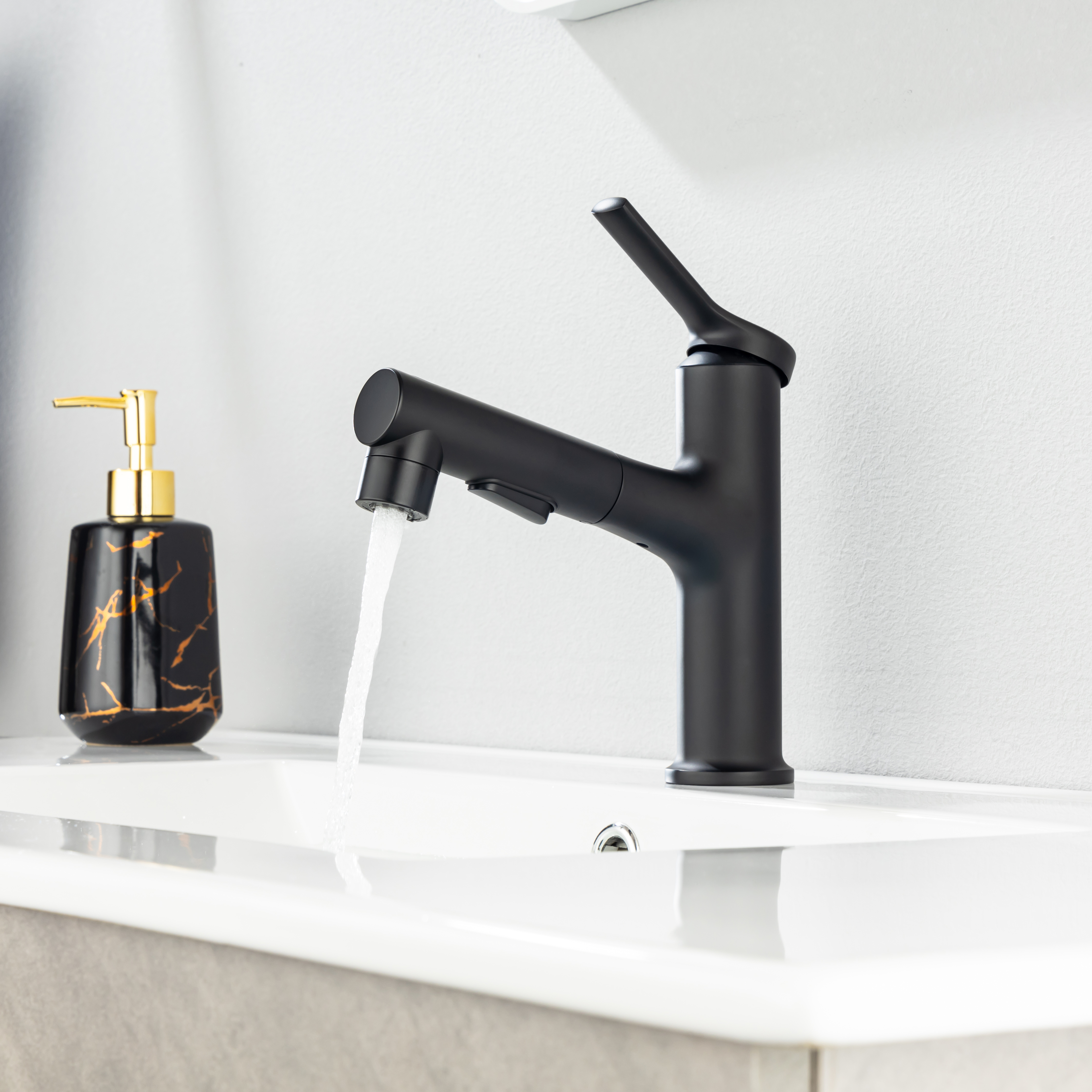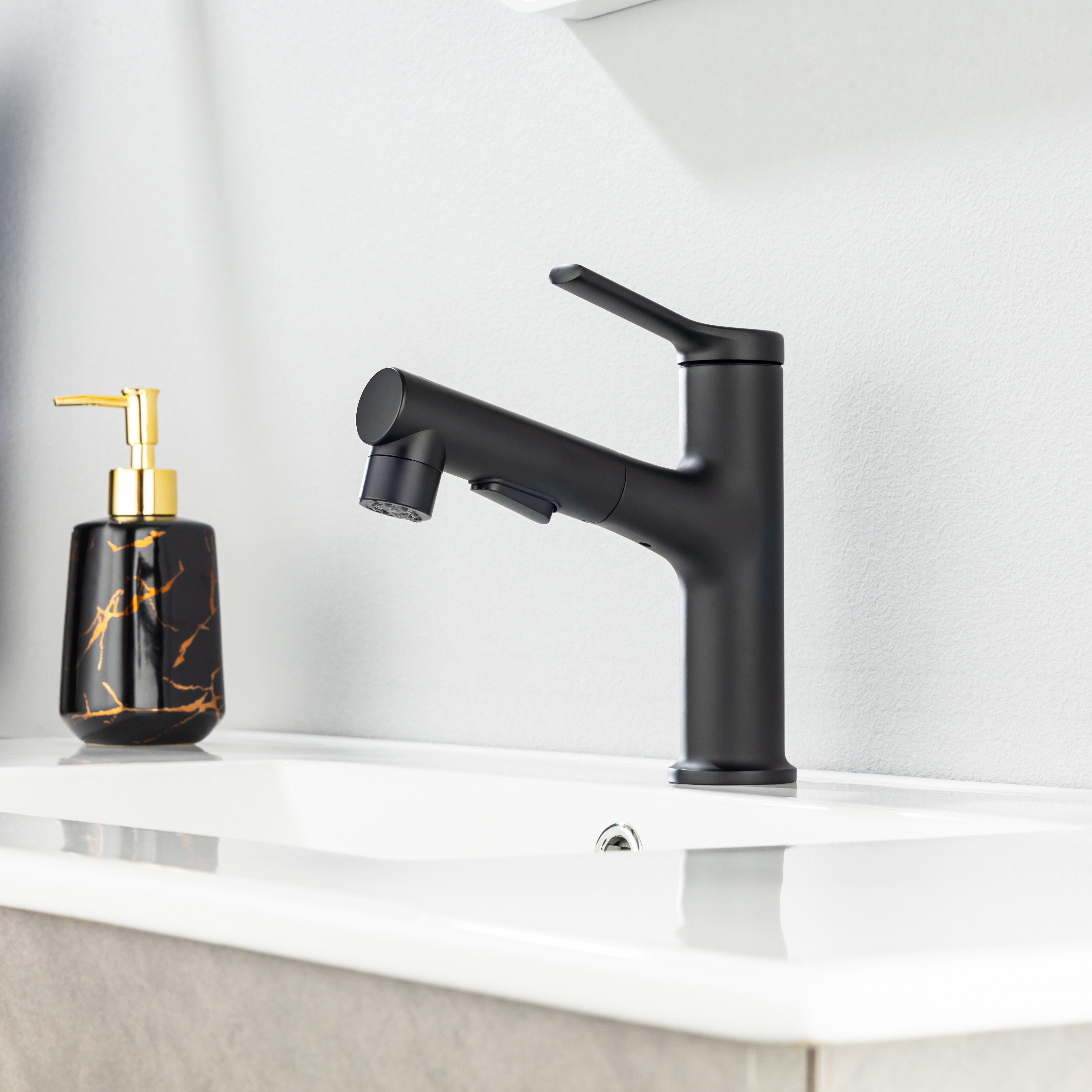 360° SWIVEL PULL OUT SPOUT - Designed for flexibility and simplicity, our 2-in-1 bathroom faucet sprayer can be pulled out up to 15.8 inch for your versatile cleaning needs like hair/hands washing, pet bathing, sink rinse, pot filling etc; High density nylon hose makes it more rust resistant & leakproof than stainless steel one