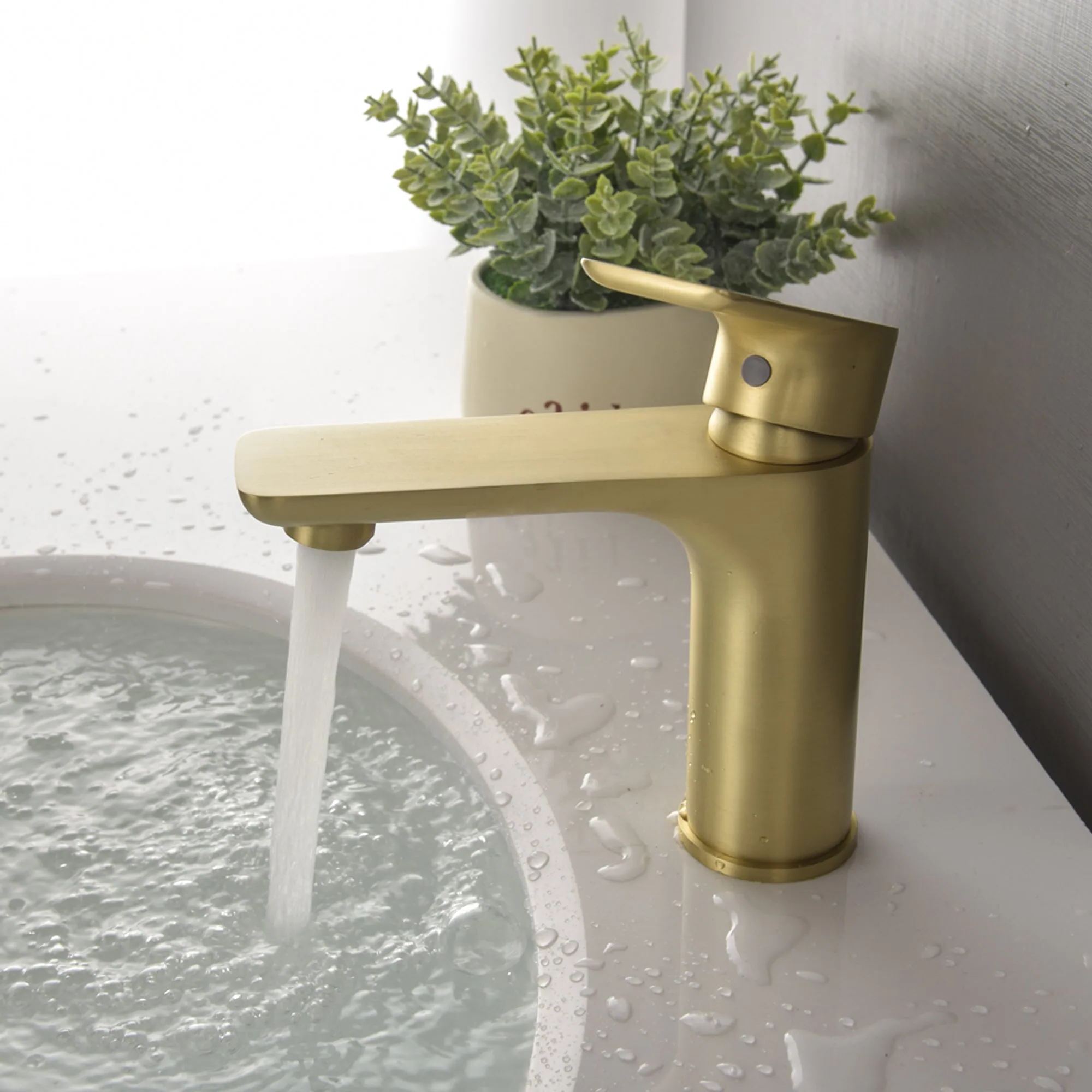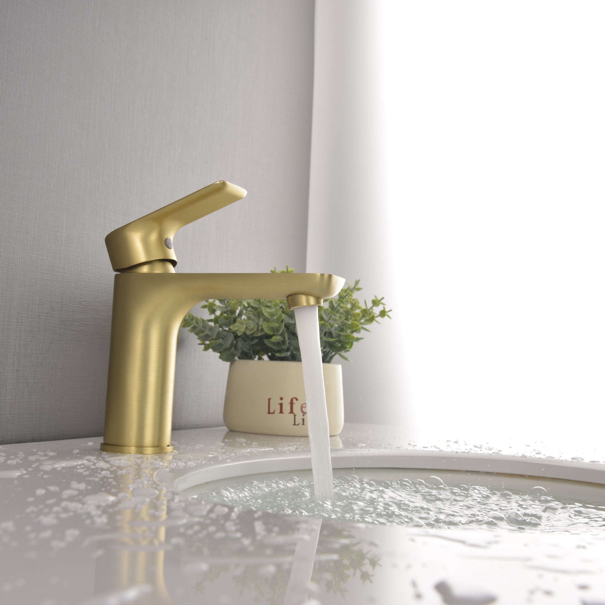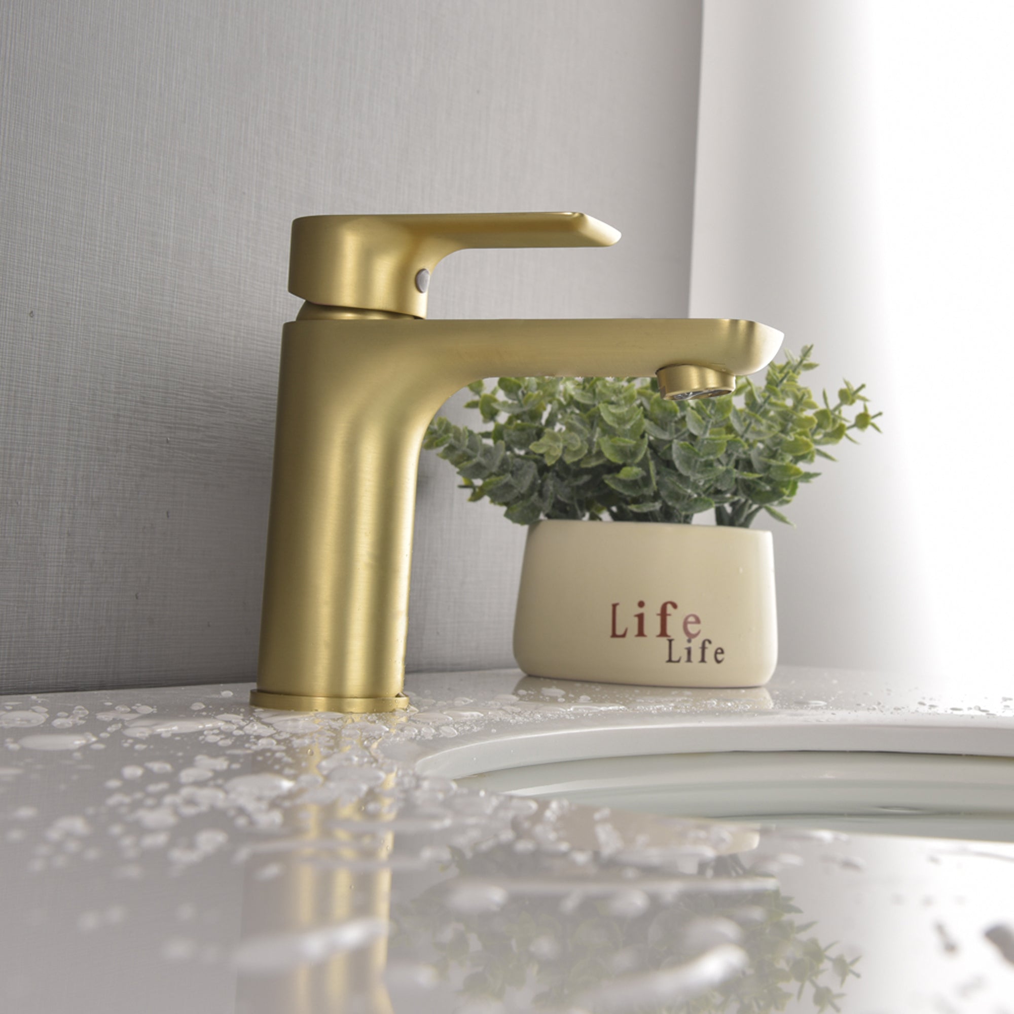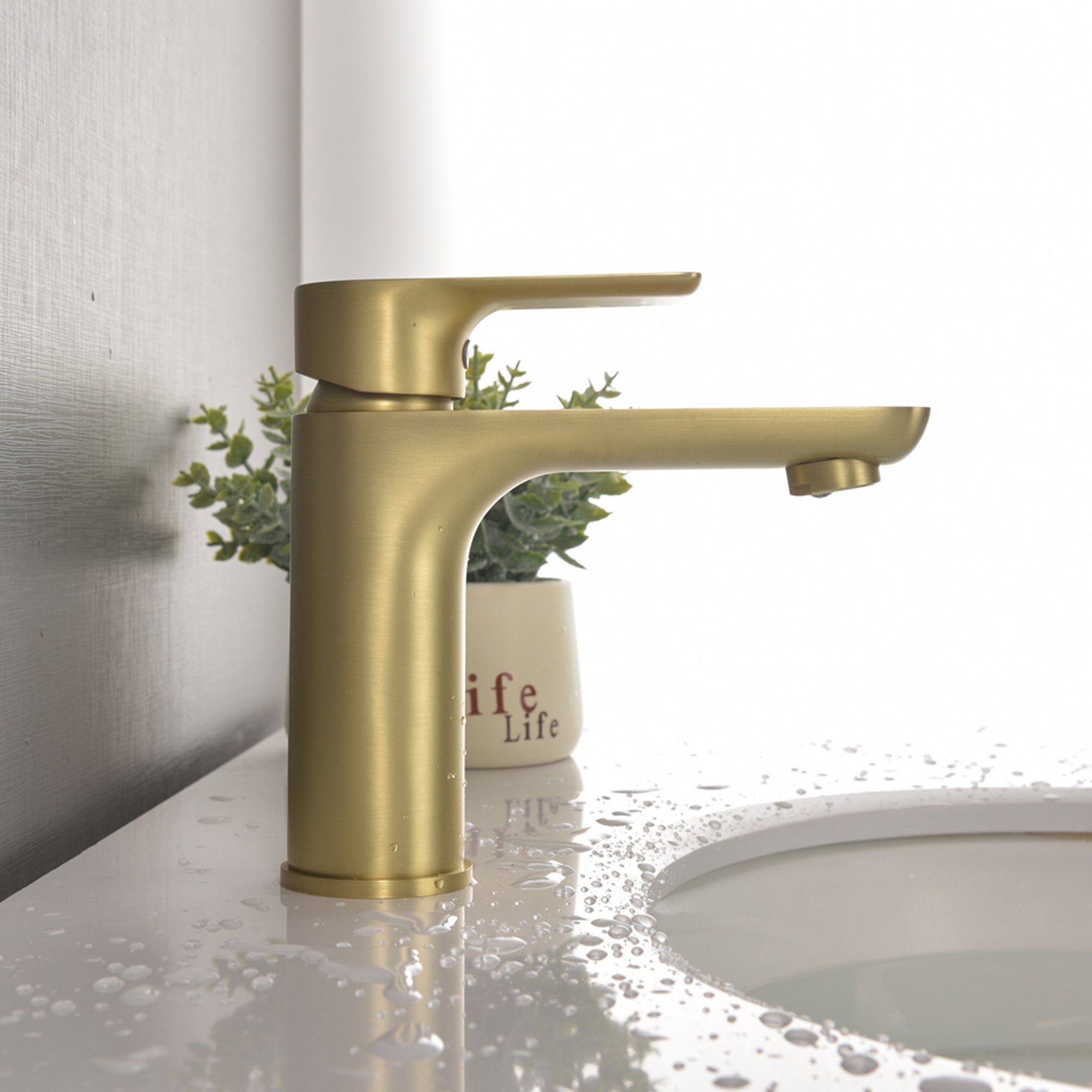 - Solid brass structure, our brushed gold bathroom sink faucet constructed by solid brass, ensuring for quality and longevity; the modern brushed gold look of the faucet will brighten your bathroom