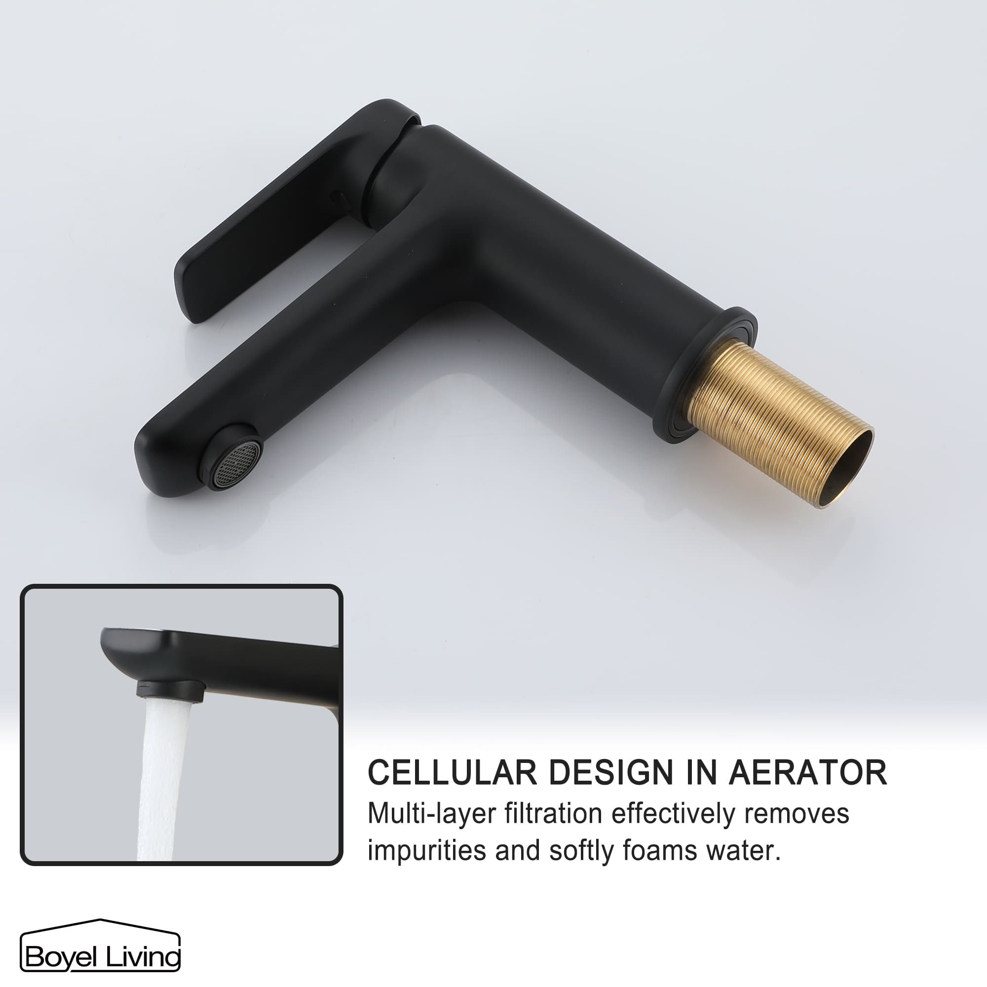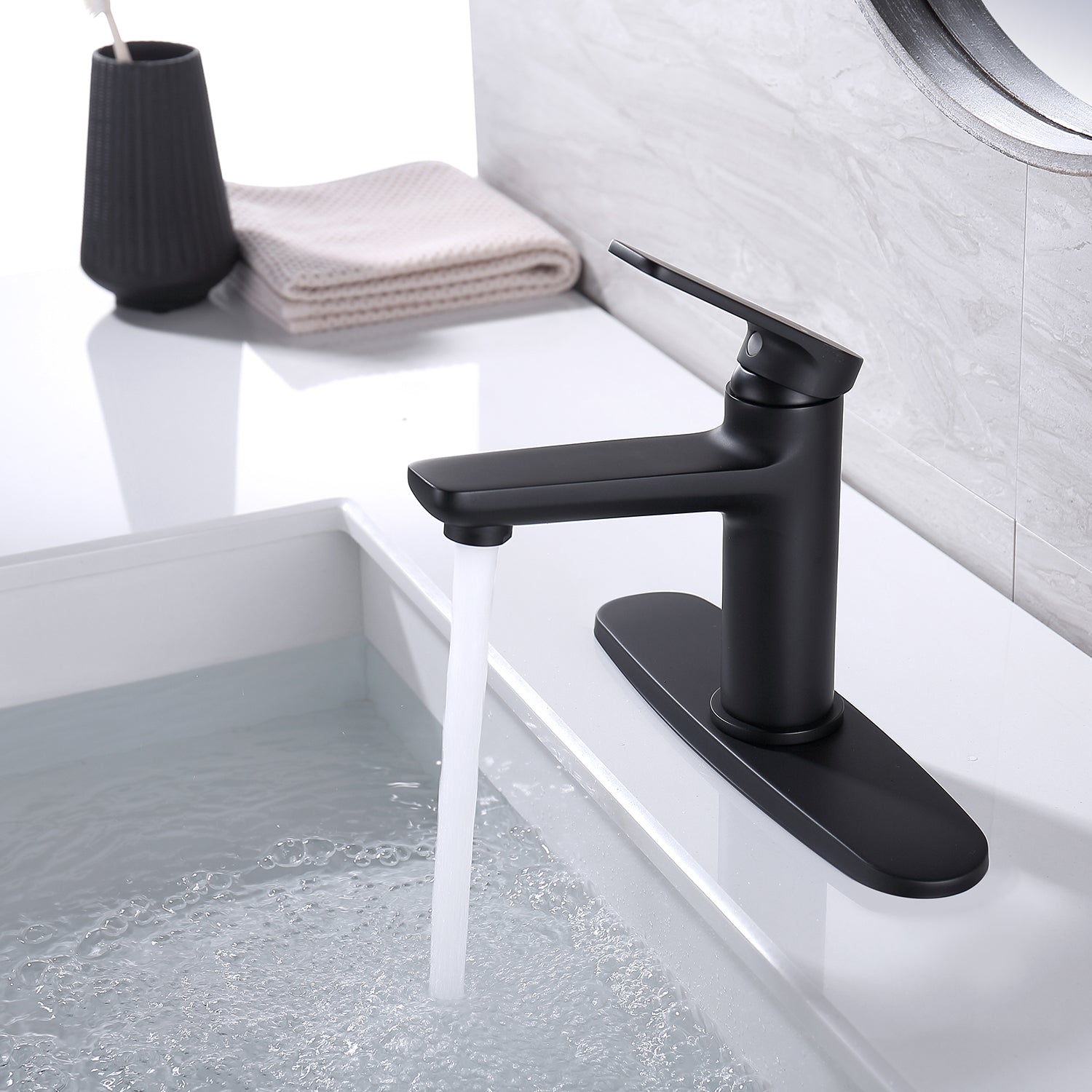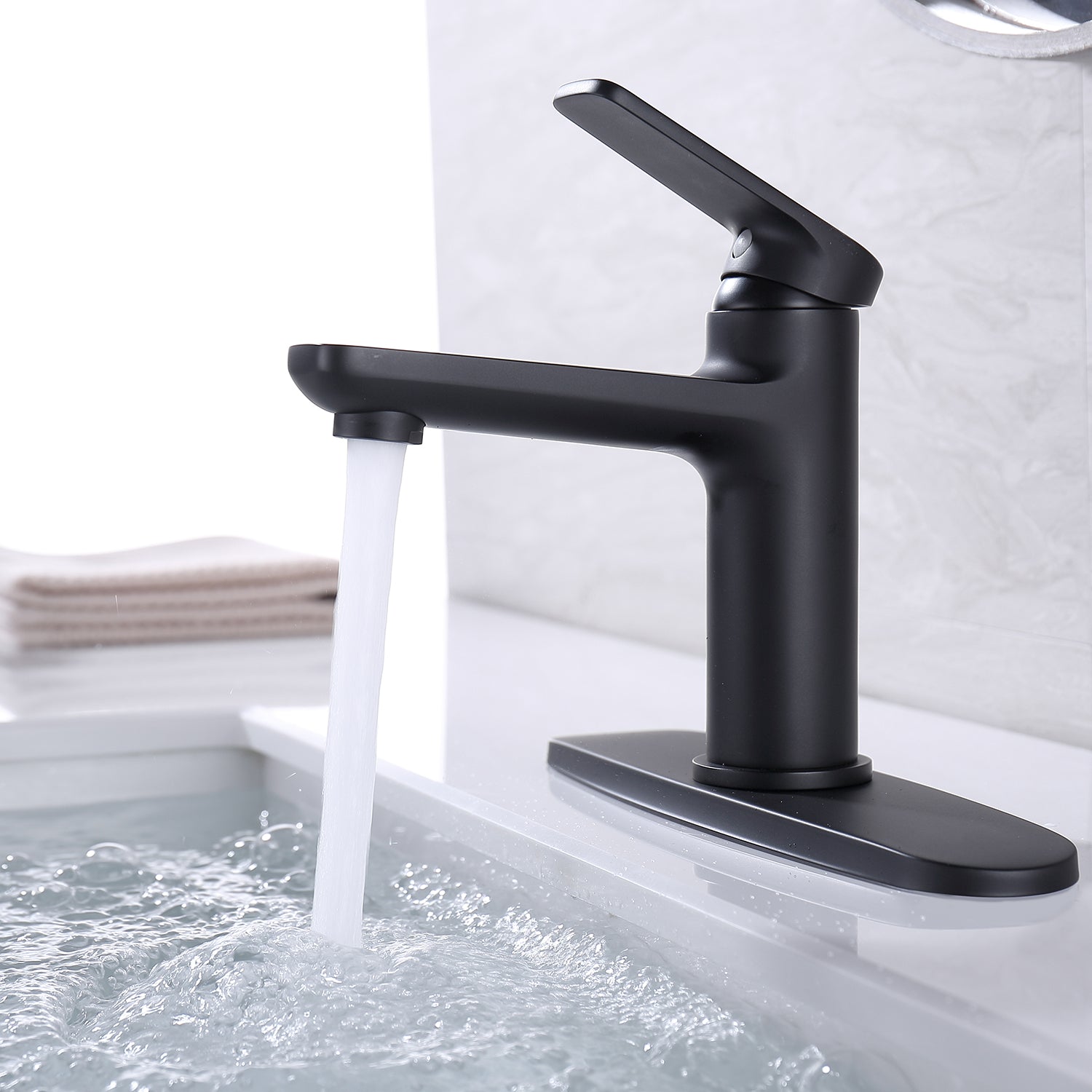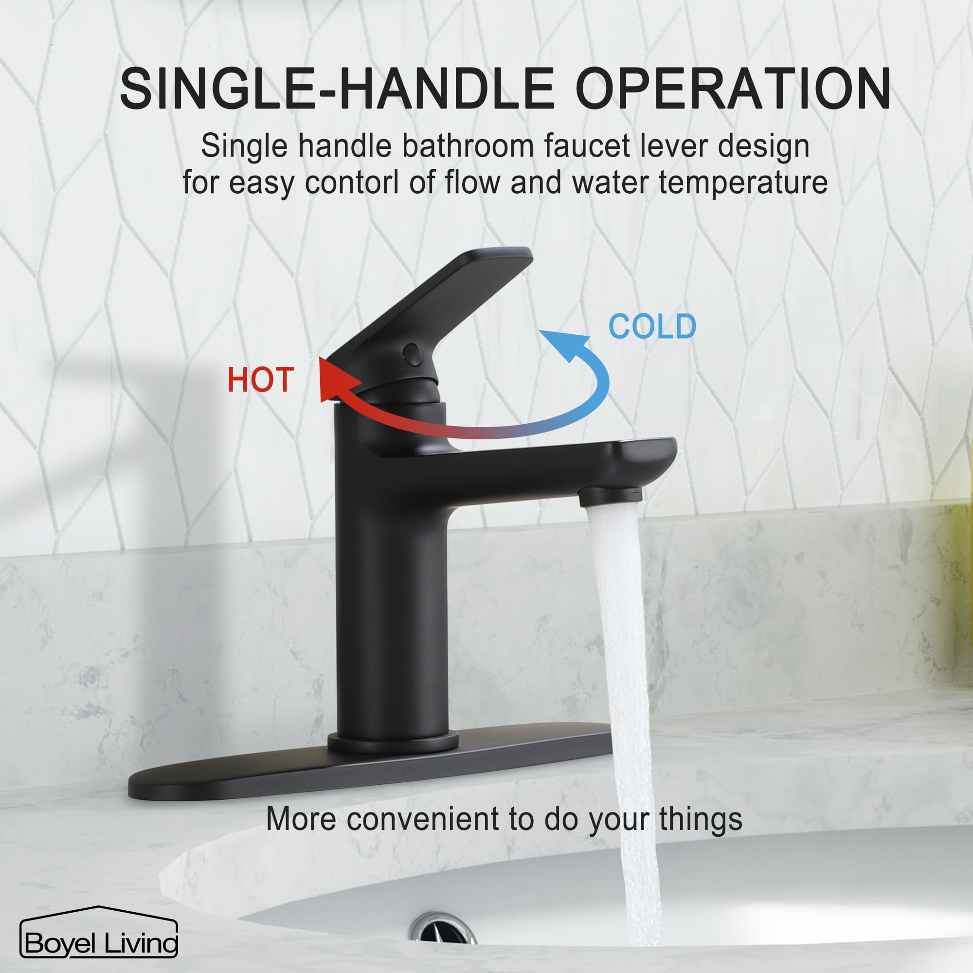 Black faucet body with lever handle decorates with home, hotel, commercial bathroom, and lavatory. Resist rust, corrosion, and tarnishing, easy to clean. The bathroom faucet provides you with a clean, healthy, stylish, comfortable, warm, harmonious and exquisite life.