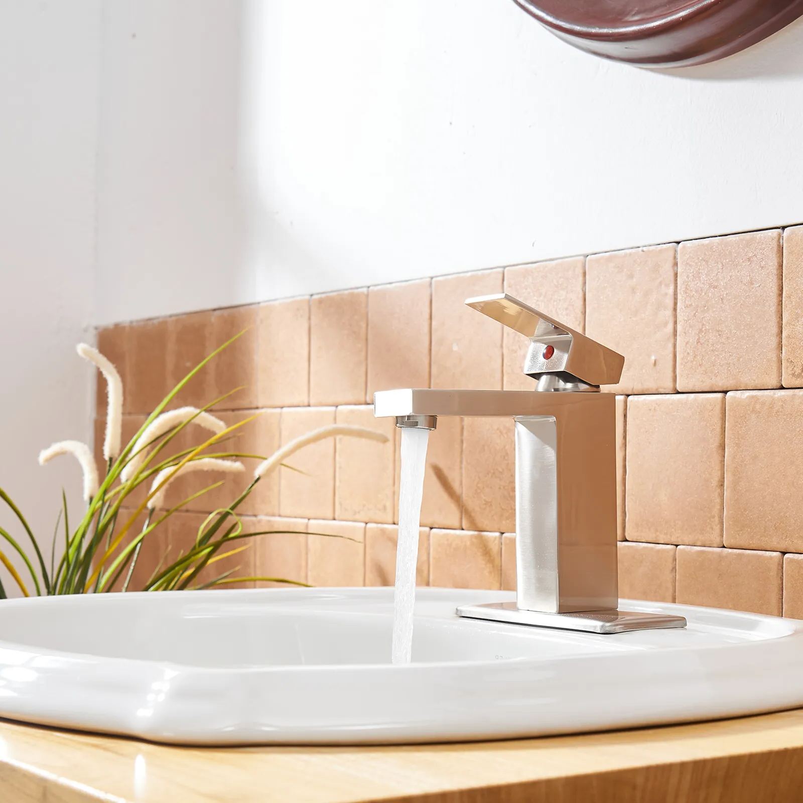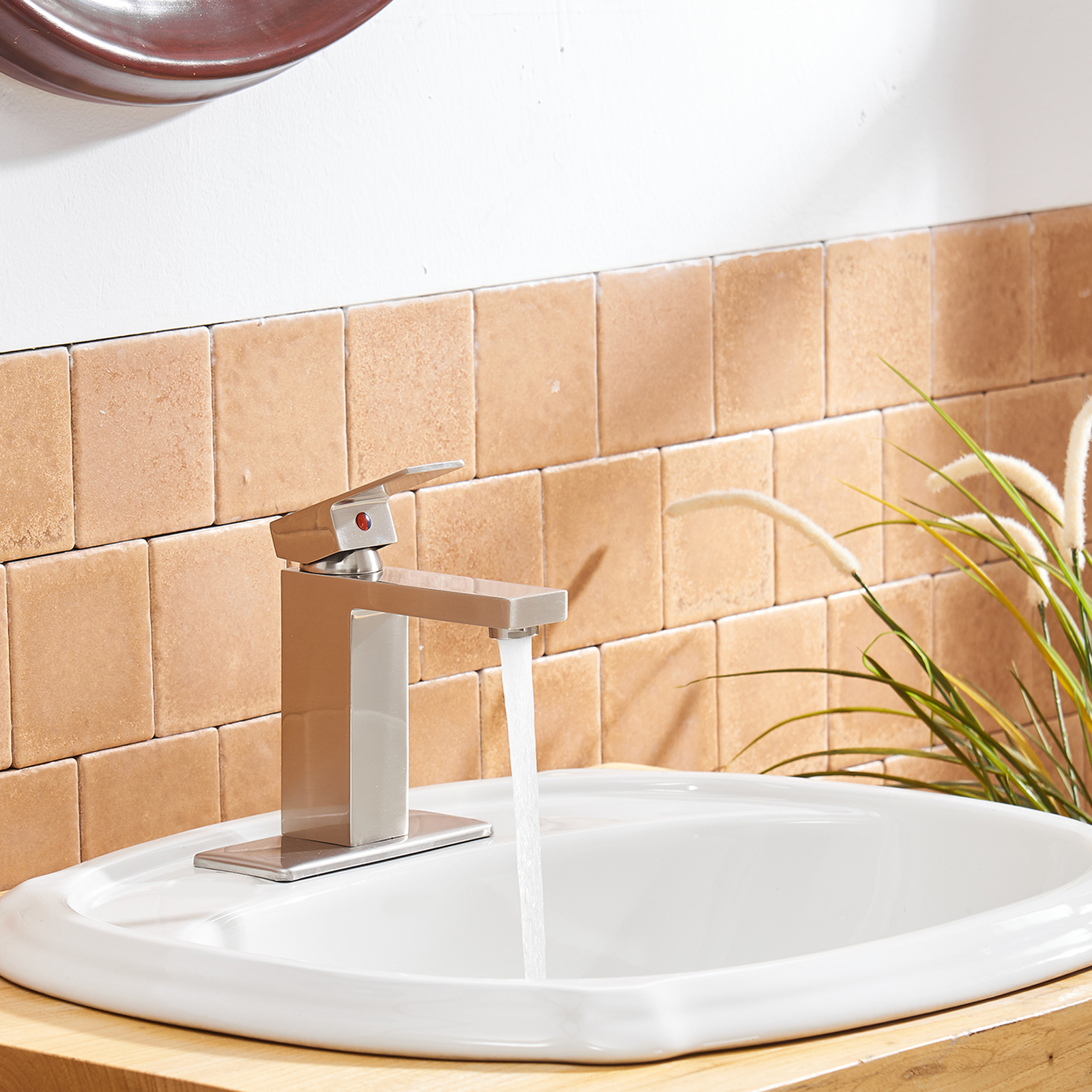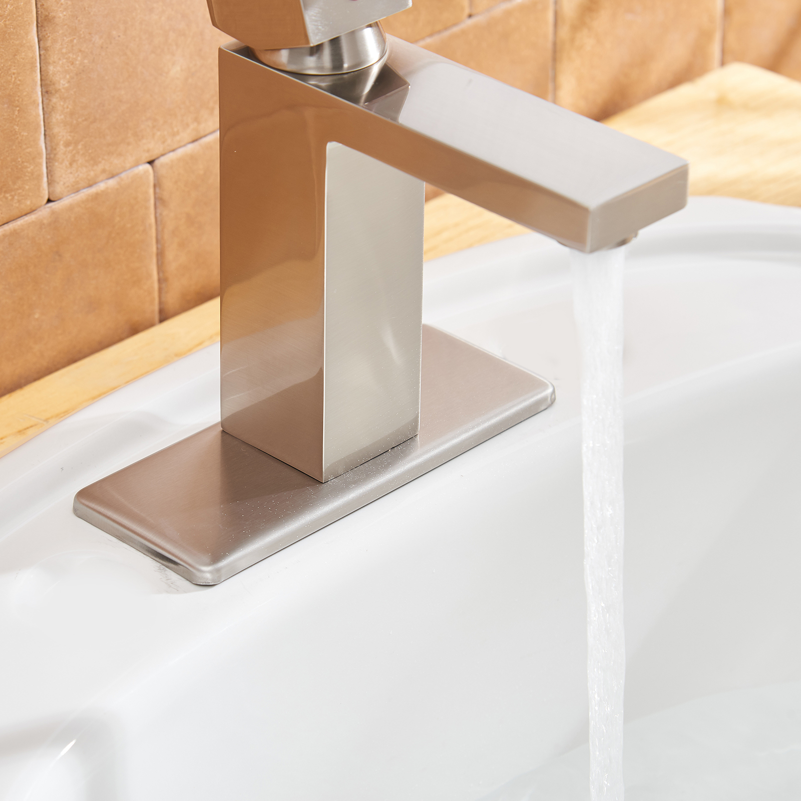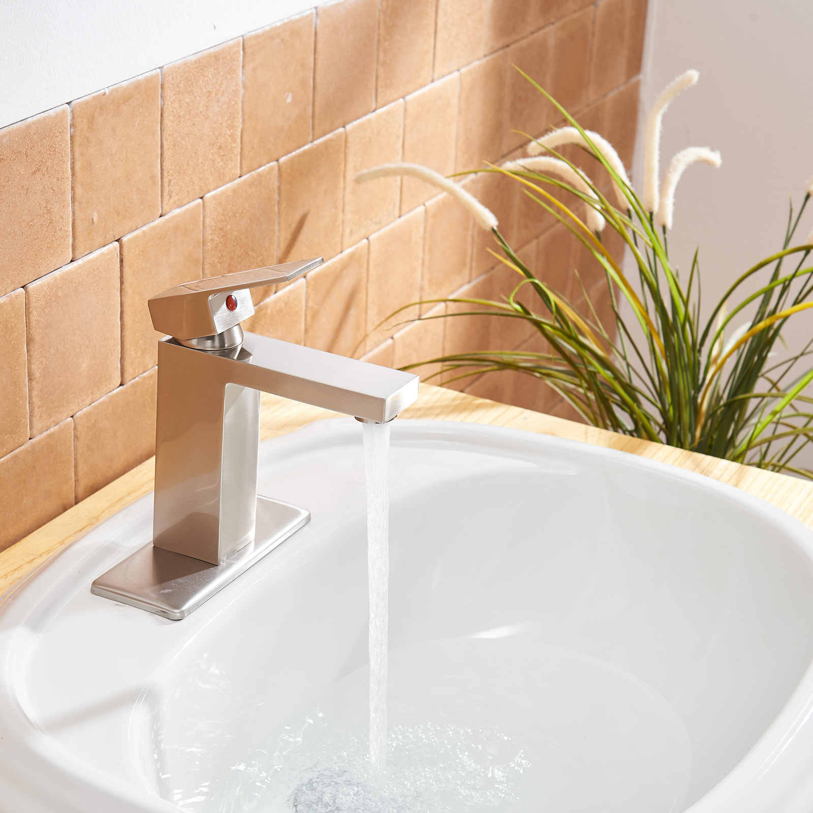 - Finish: Brushed nickel finish provides a lightly brushed warm grey metallic look. From its durable, long-lasting construction to the contemporary and decor-complementing design, this faucet belongs in your bathroom