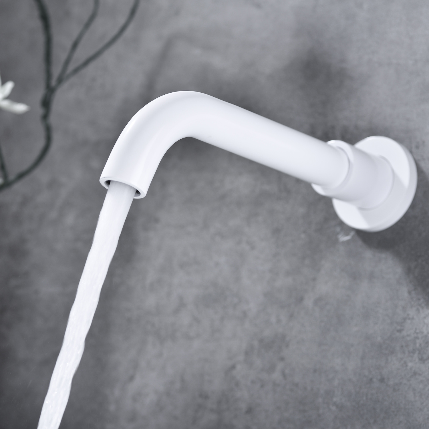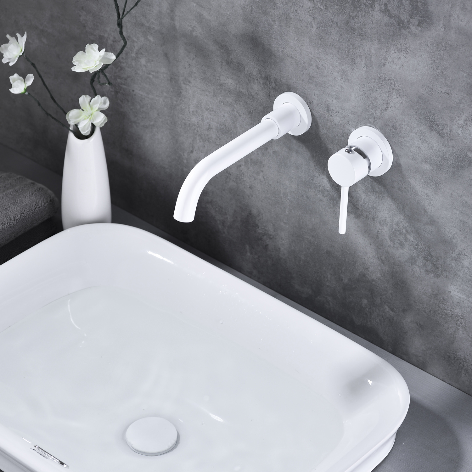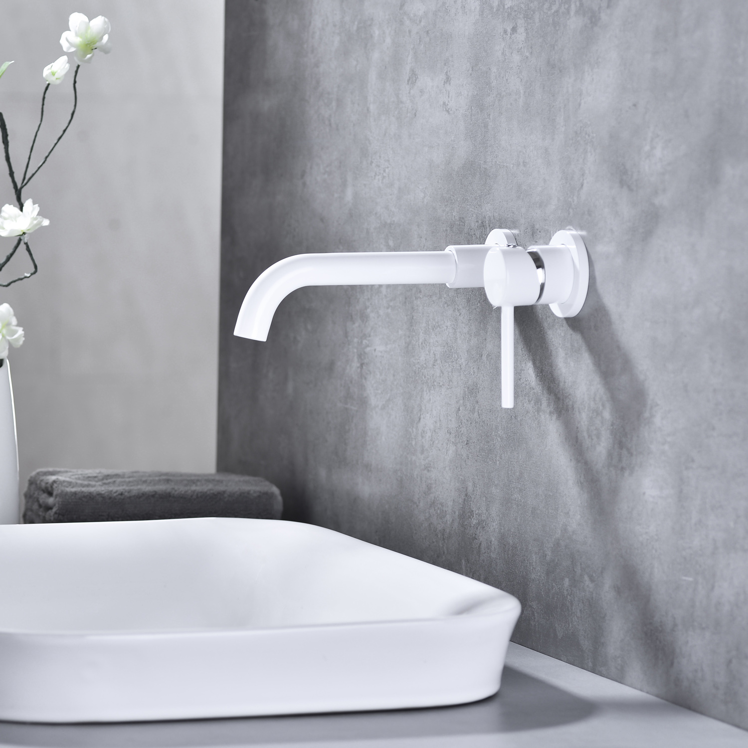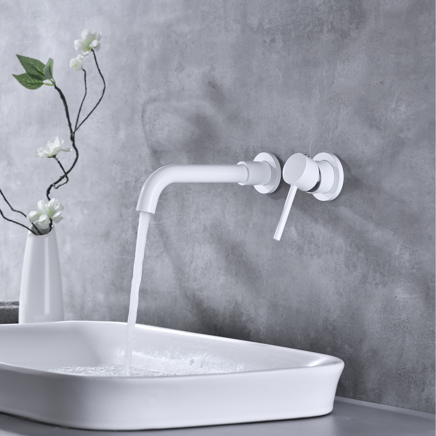 Single Handle Bathroom Faucet for Wall Mount.Gently curved spout suit your washing needs and no-splash water.Brass Construction to resist daily scratches, corrosions or tarnishing.ensuring Quality and Longevity.Designed for wall mounting to free up your countertop space, compatible with any bathroom basin.