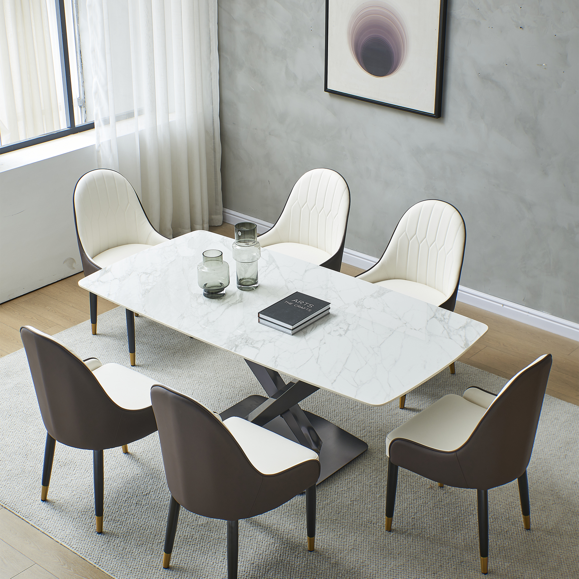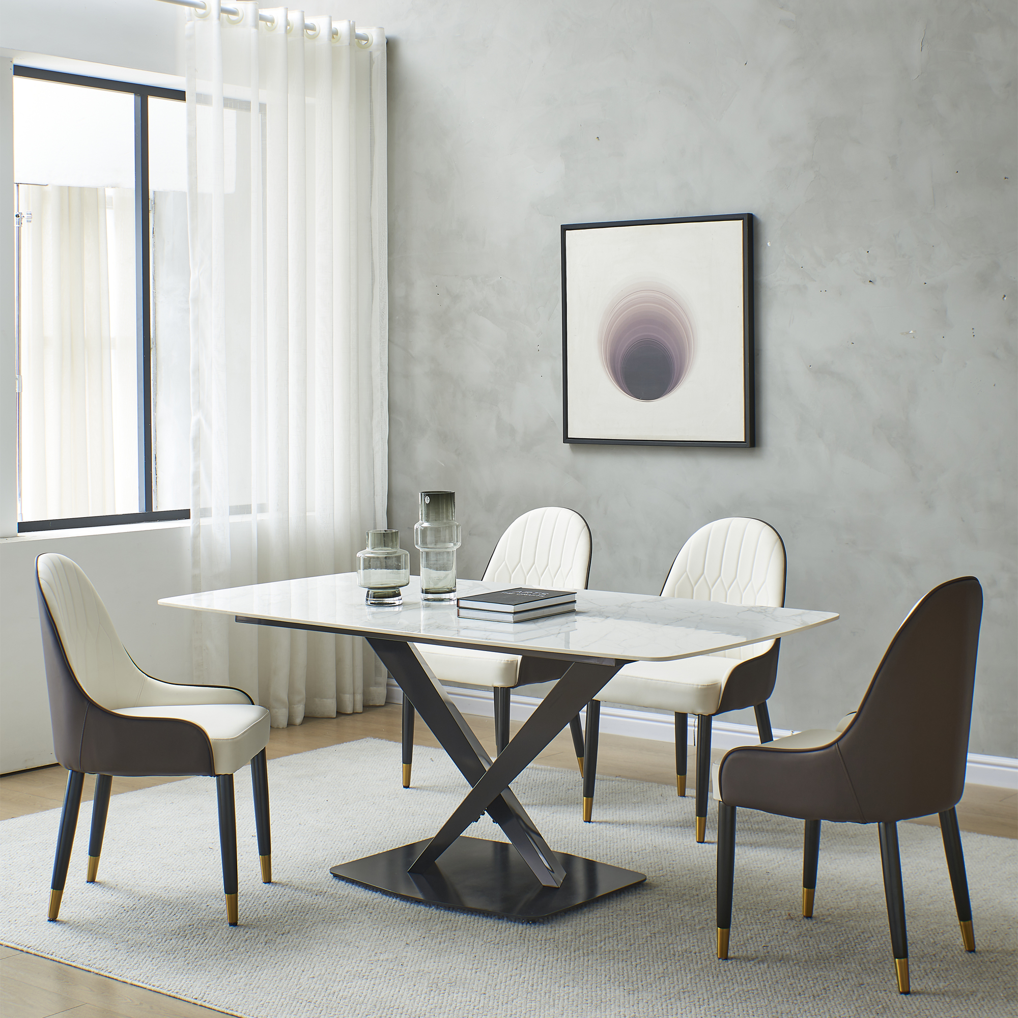 Style: Modern Dinning with X shape solid black base