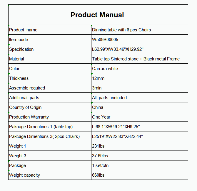 Material: Sintered stone + Carbon Steel frame