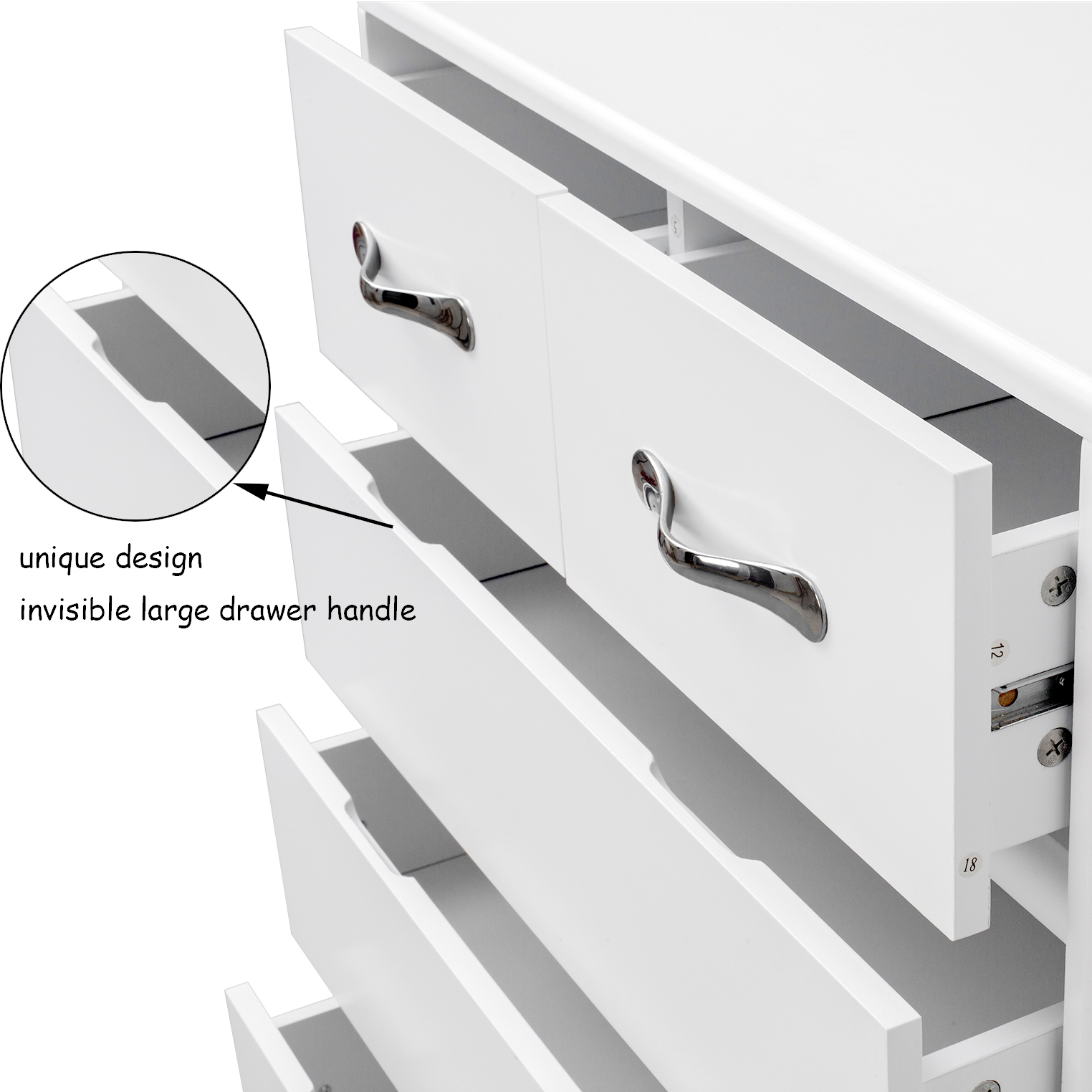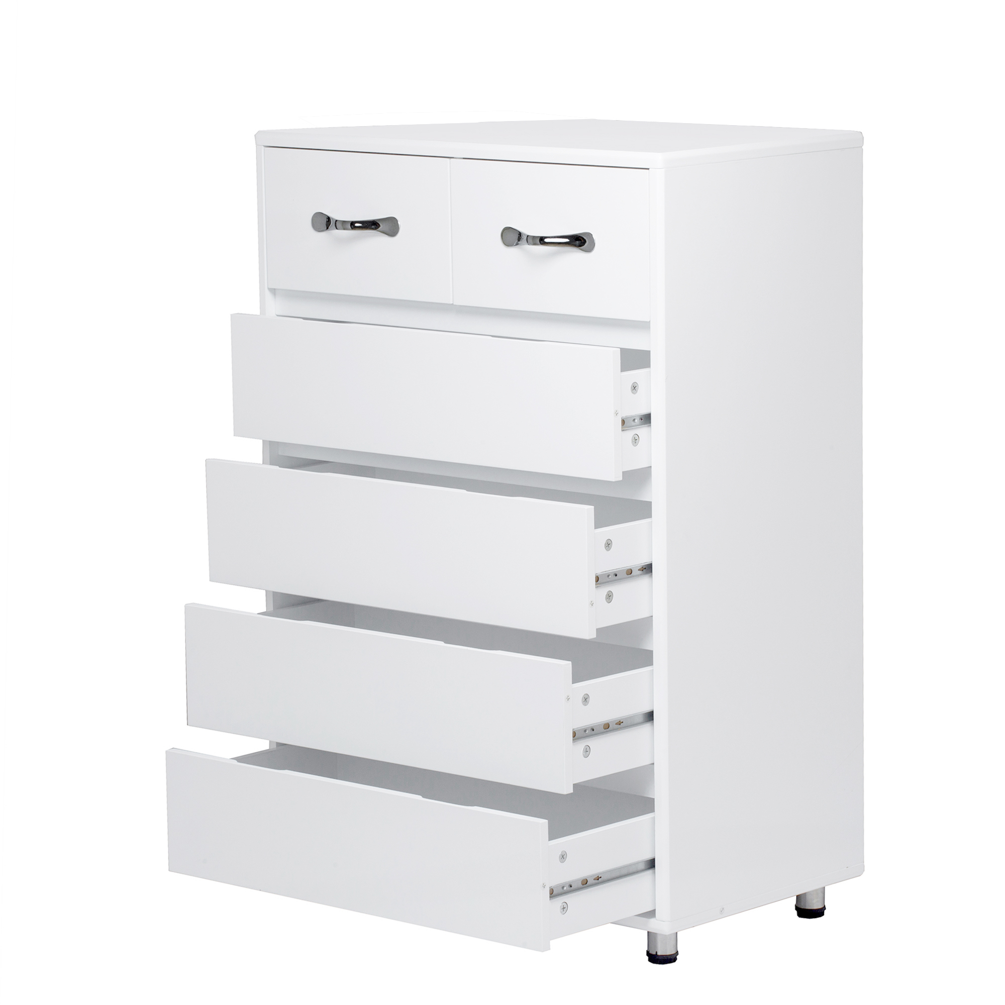 Material: E1 degree MDF board, the thickness of majority plates is 12 mm. Metal drawer slide, steel tube legs.