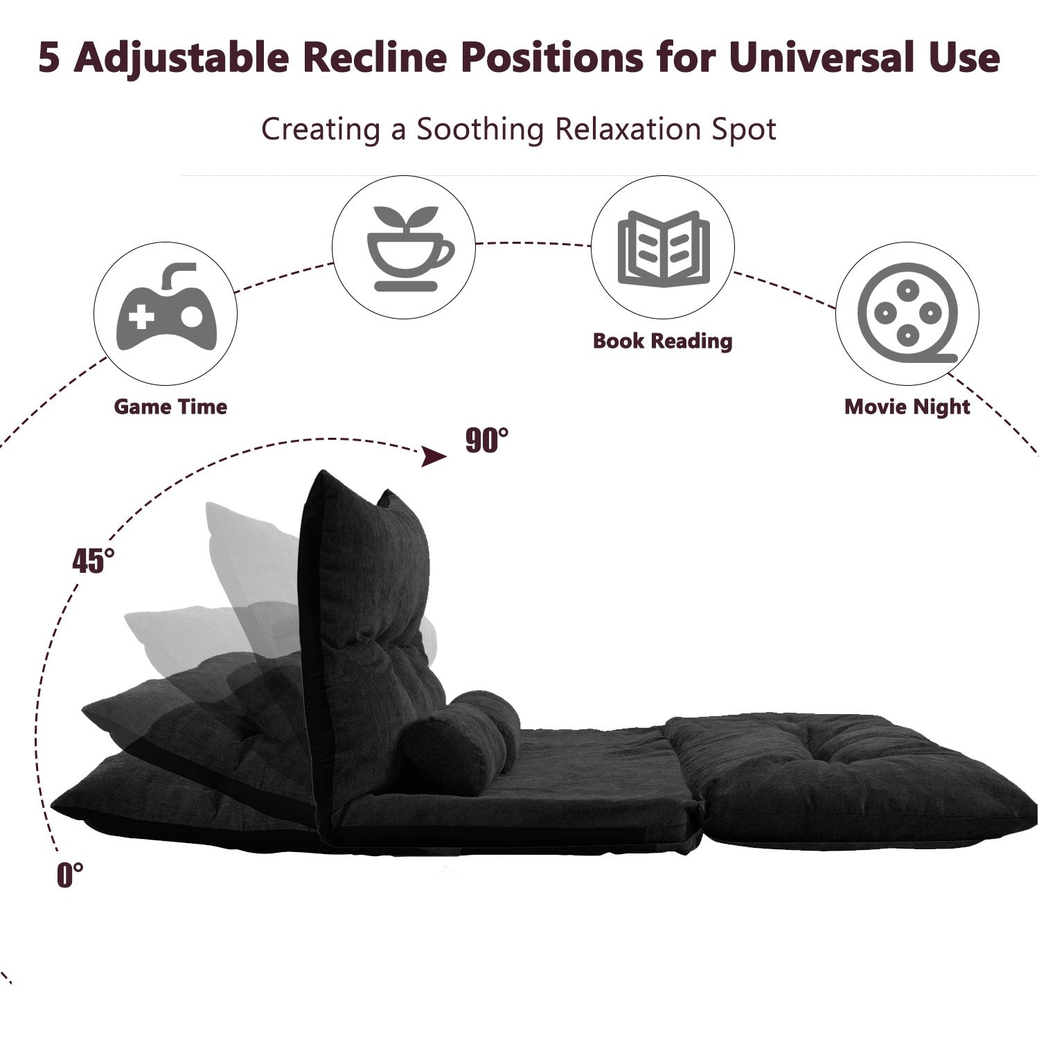Five Position Available: This sofa could be adjust to five different positions. One position for sitting and the other position for lying. You could adjust the position as you like. This folding mattress sofa could not only be a sofa but also could be a bed.
