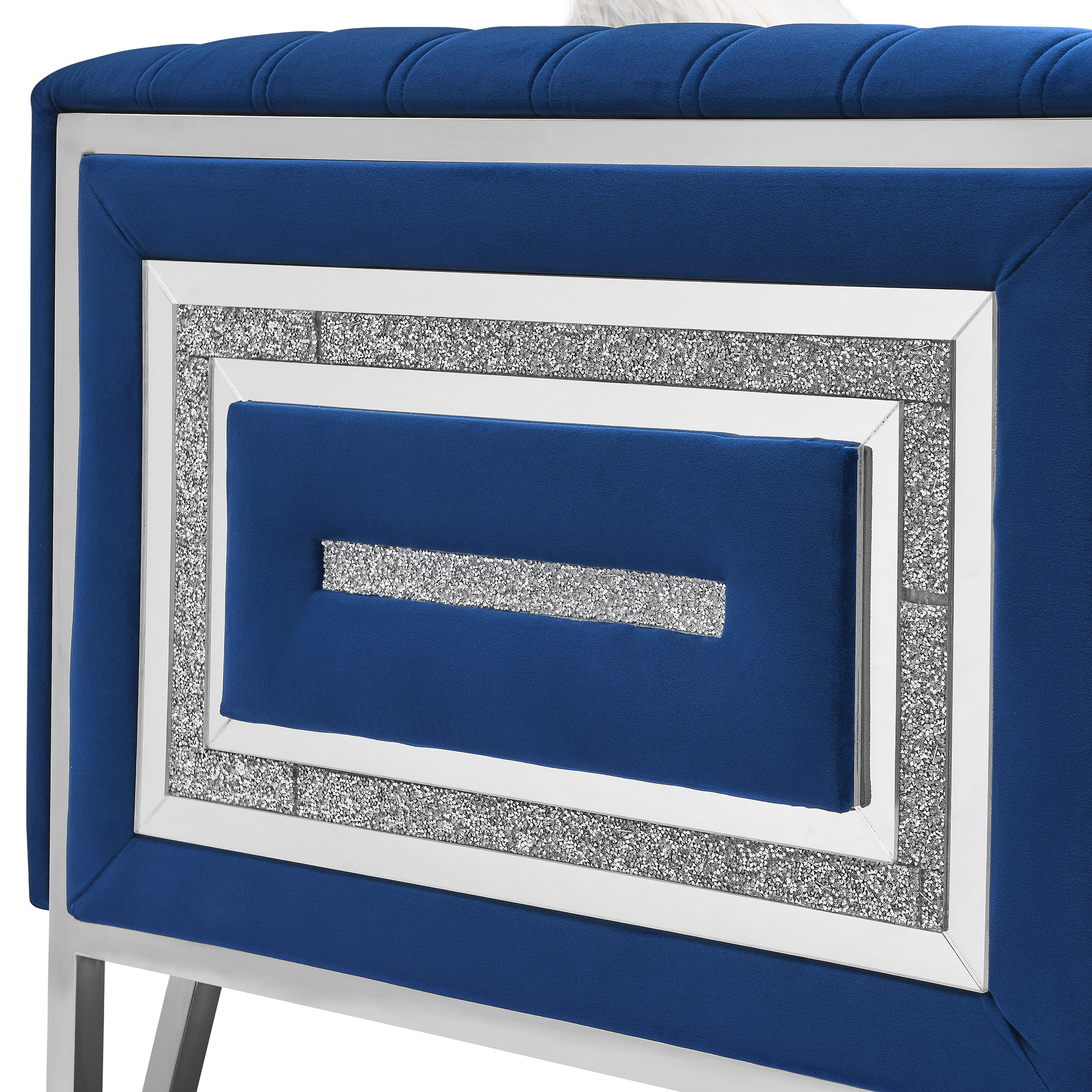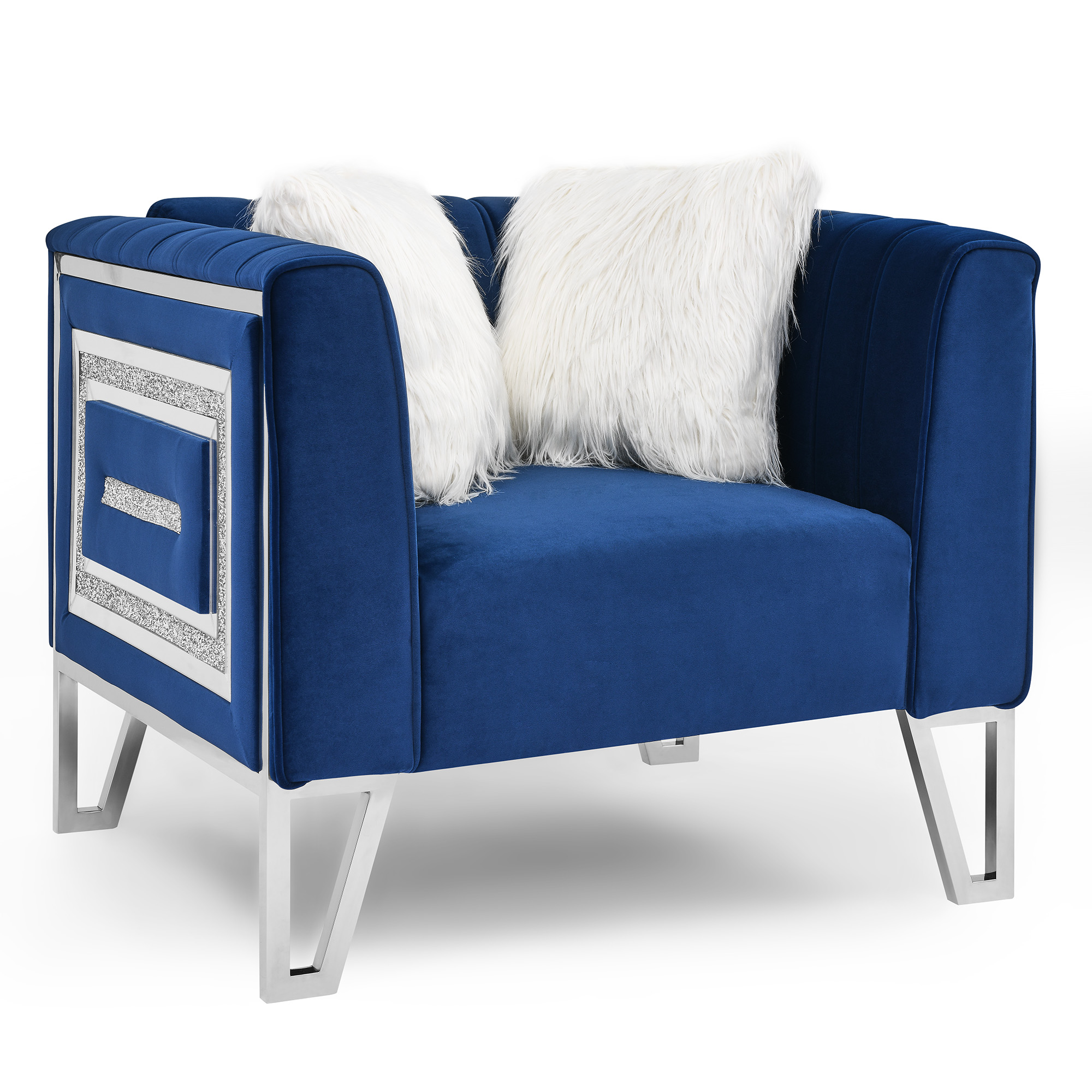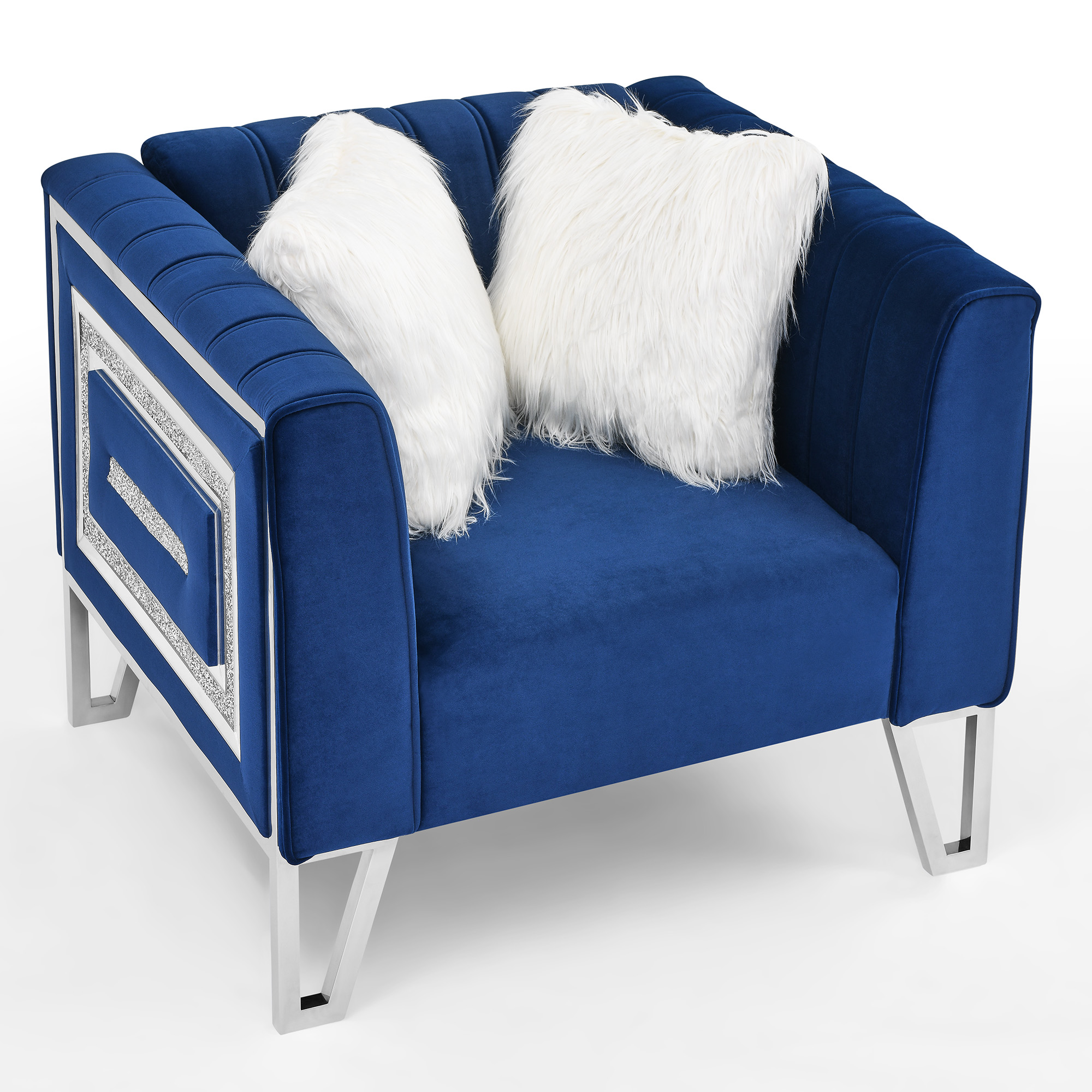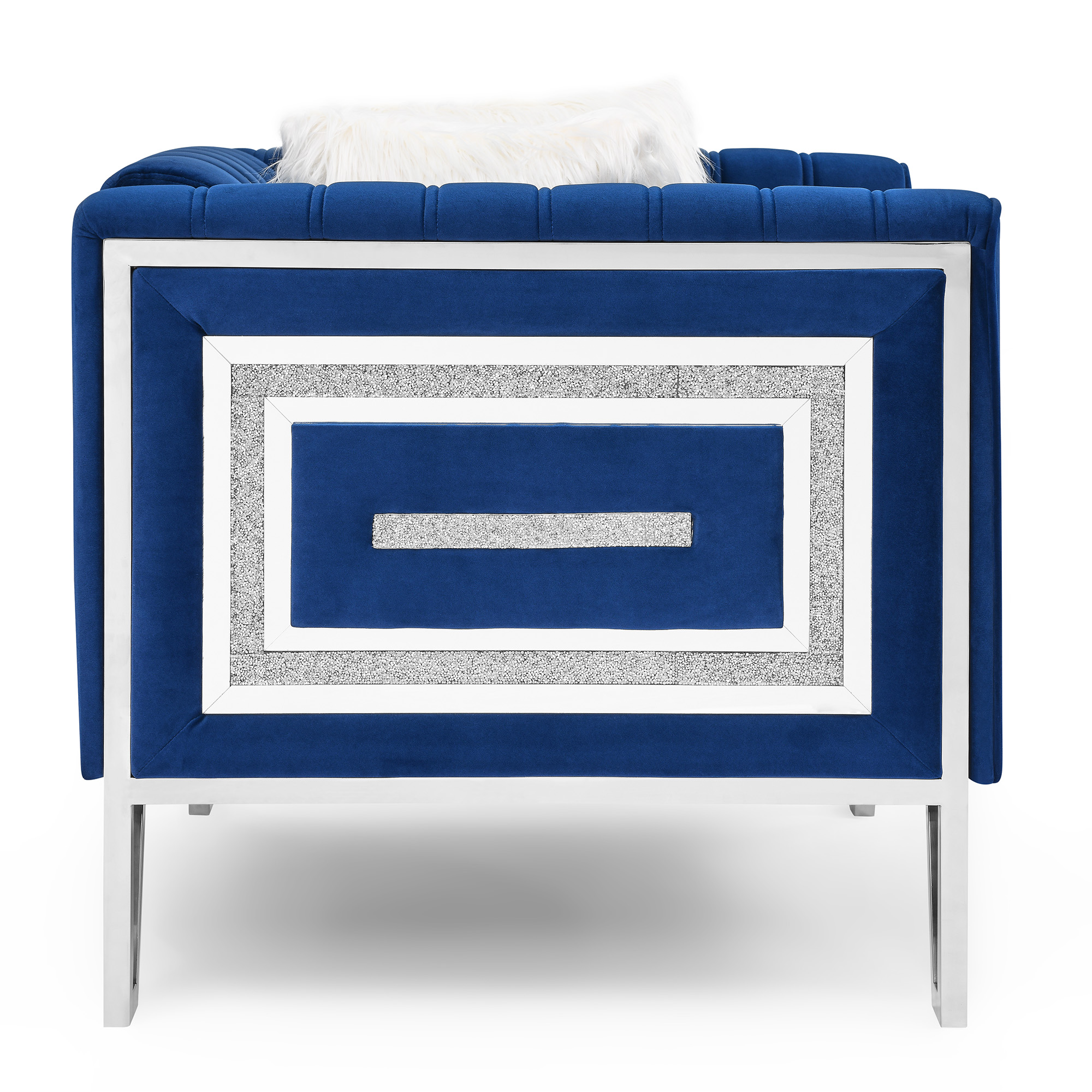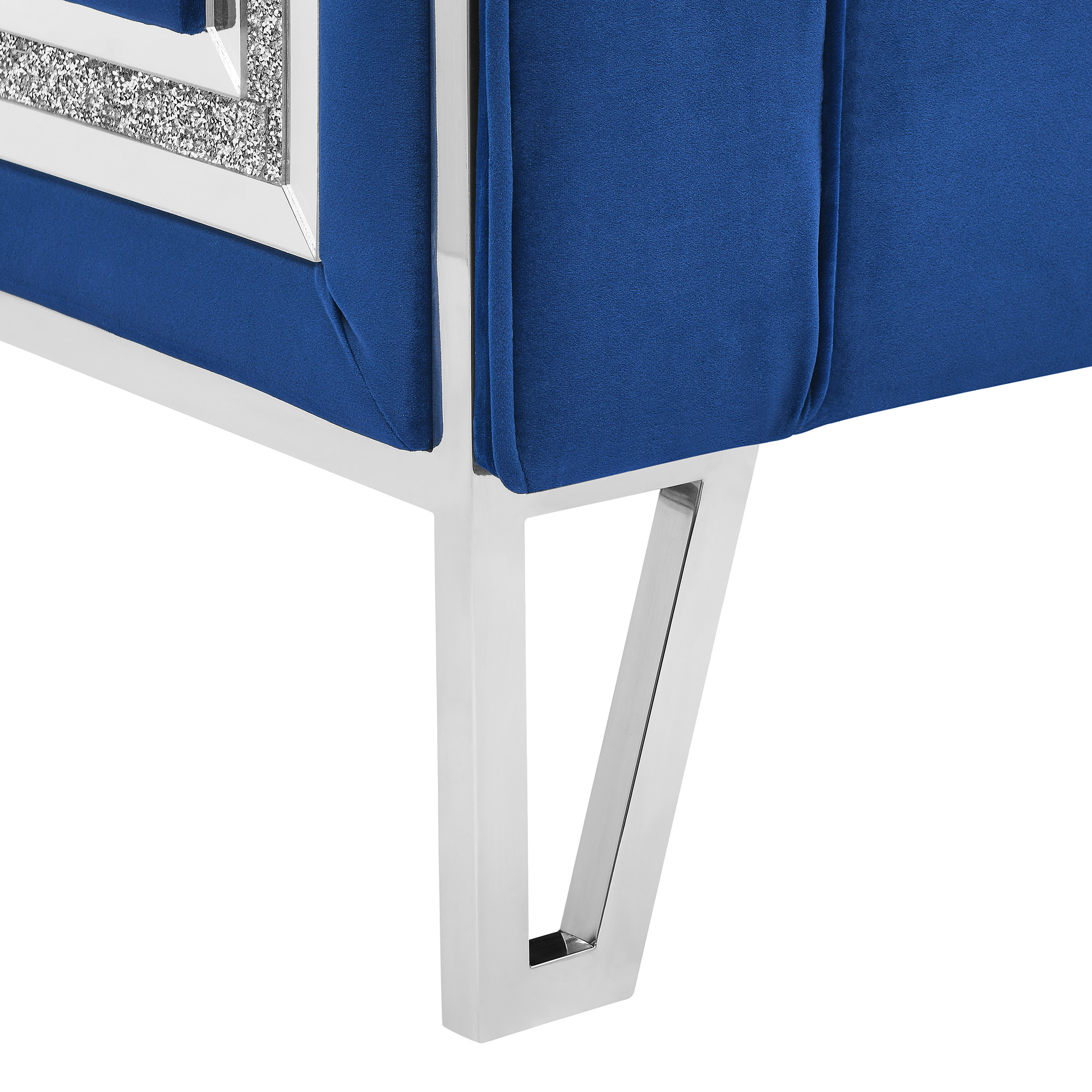 The perfect pick for meeting your aesthetic needs, this set features a contemporary look and a streamlined silhouette. Dramatic channel tufting on the back lead the modern fashion and the mirrored side trim with faux diamonds and stainless steel legs provides a unique modern flavor.