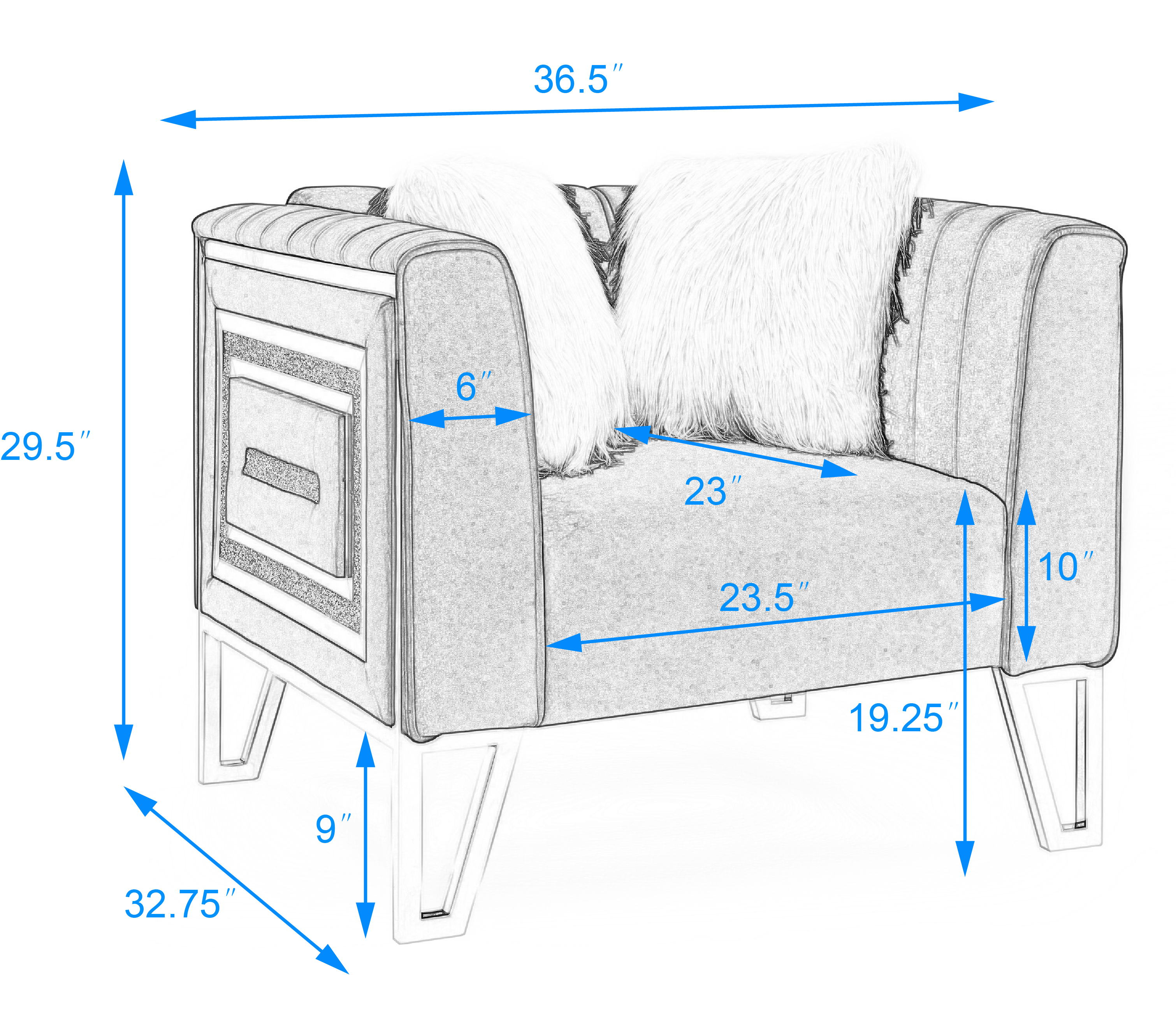 Sofa Chair Size: 36.5”Lx32.75”Wx29.5”H