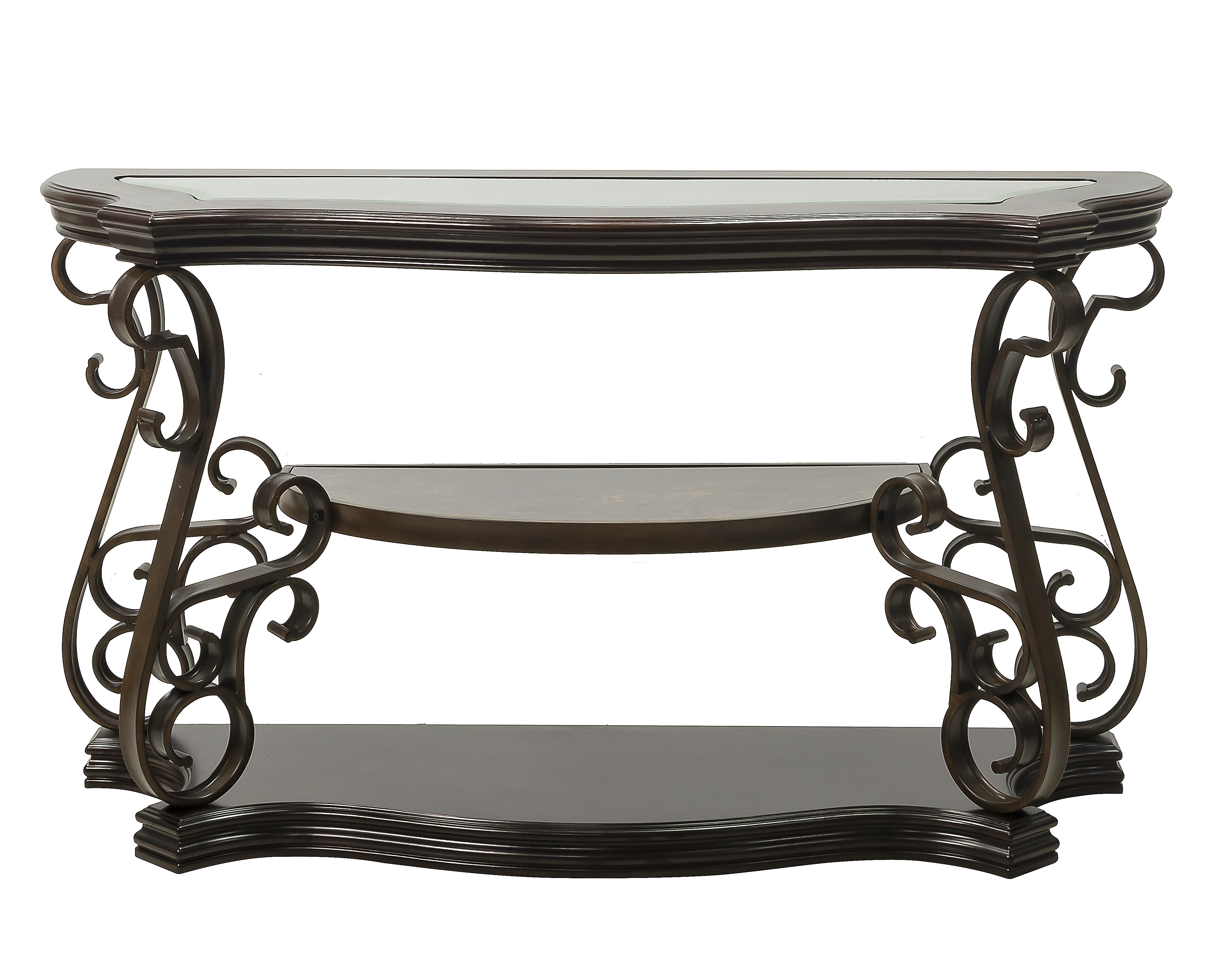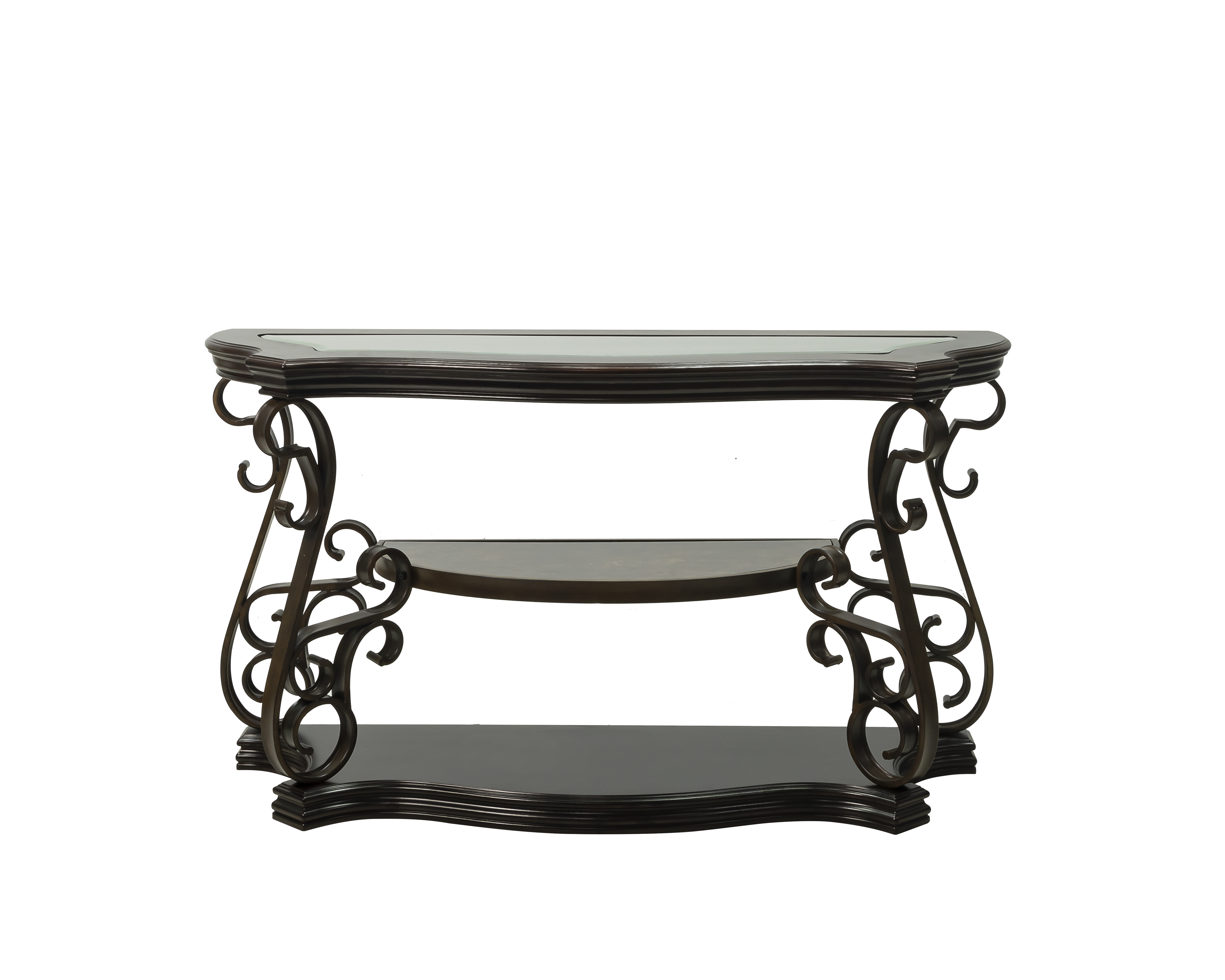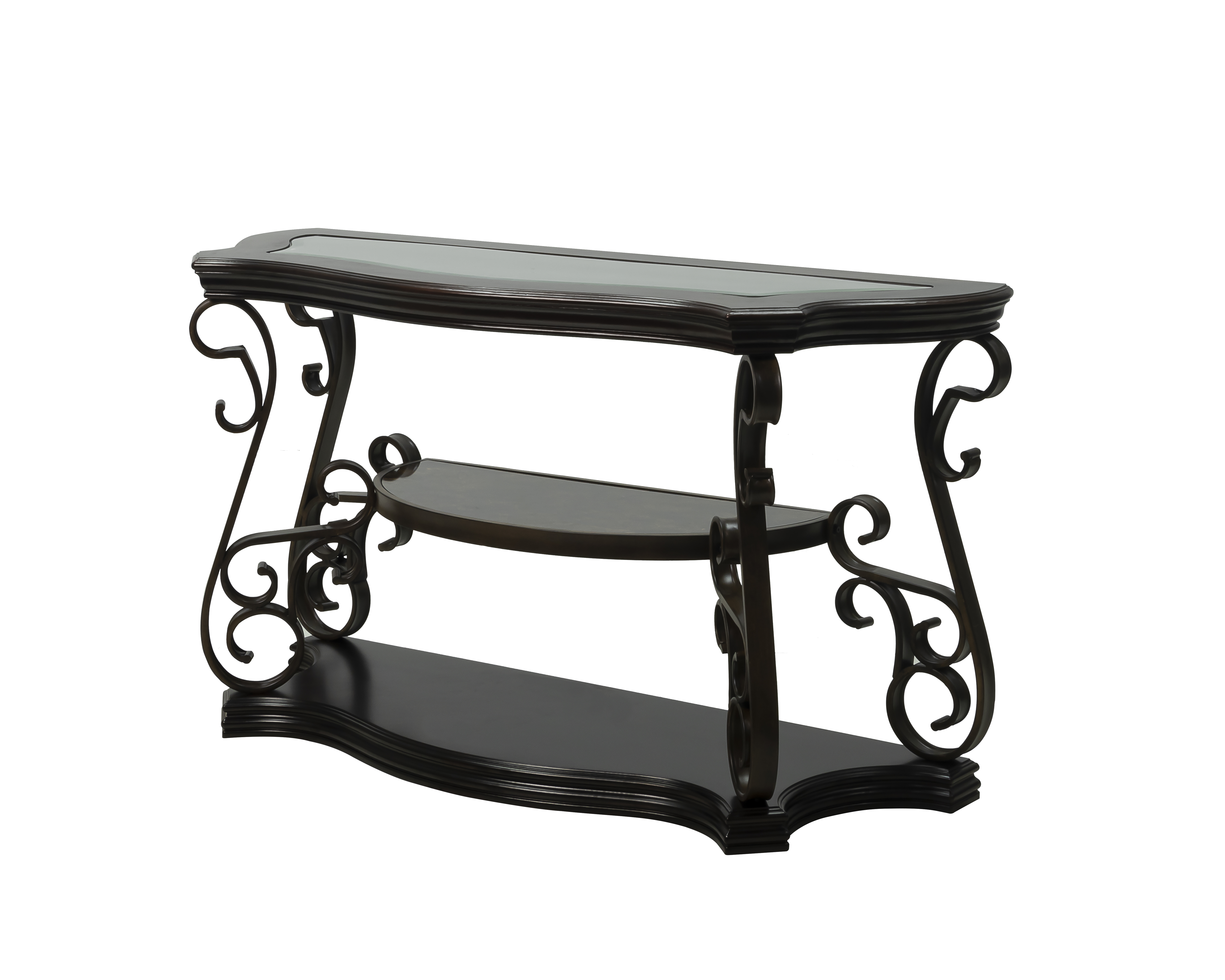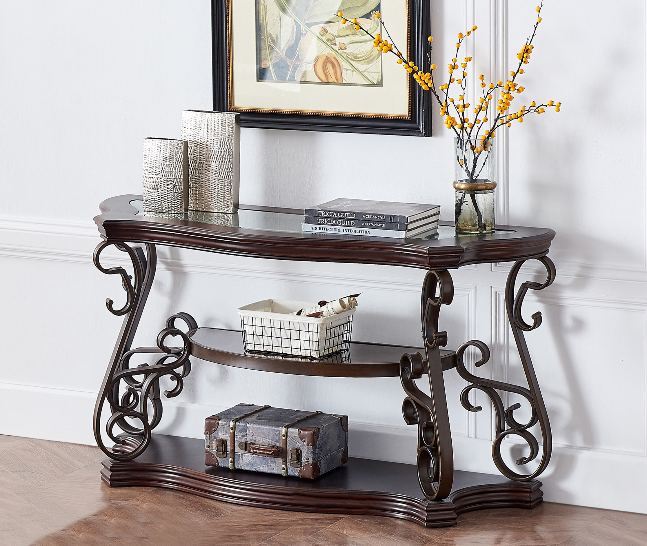 - 【DRAMA IN THE DETAILS】: This sofa table with a fixed shelf is made of MDF wood with 100% birch veneer to ensure a long life free of defects. Topped with a beveled glass tabletop. The middle shelf is made of MDF wood with marble paper no need to worry about cracking, more natural, healthy and eco-friendly. The hand-applied powder coating finish pairs beautifully with the metal legs, for a showstopper look you simply can't forget.