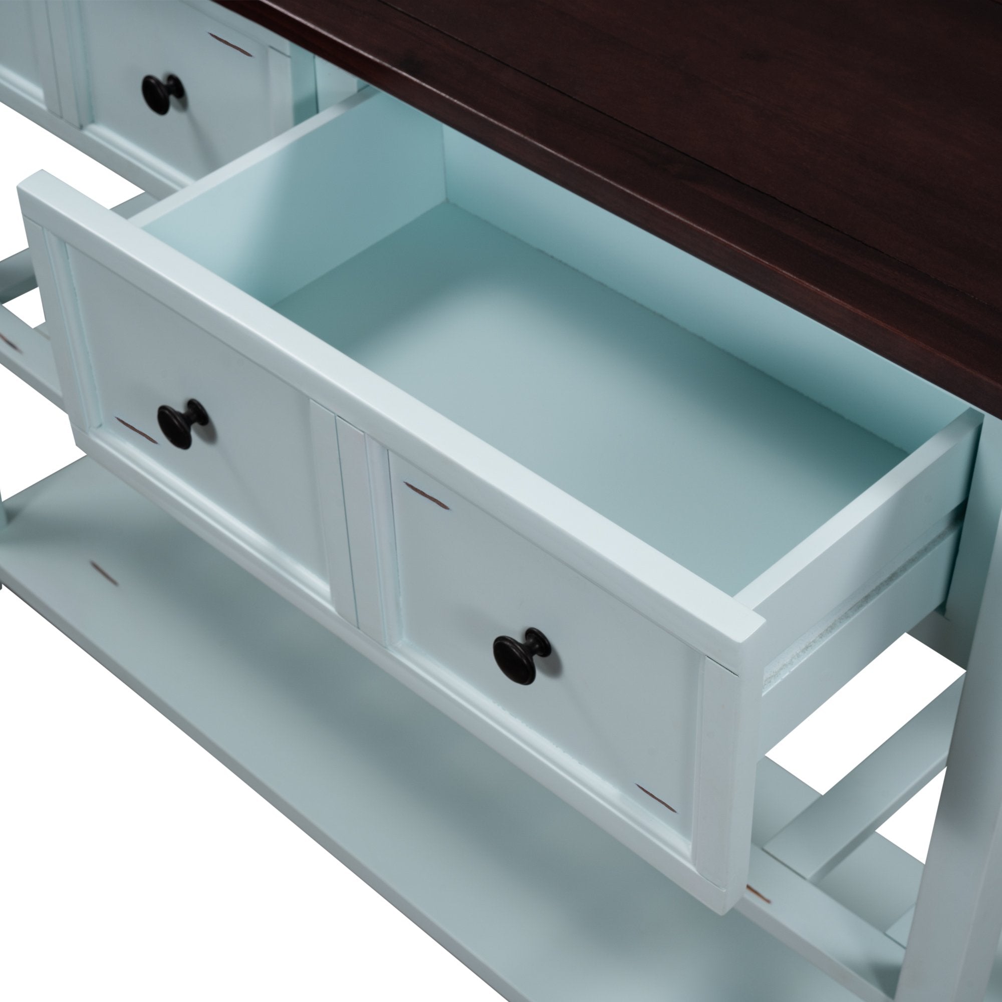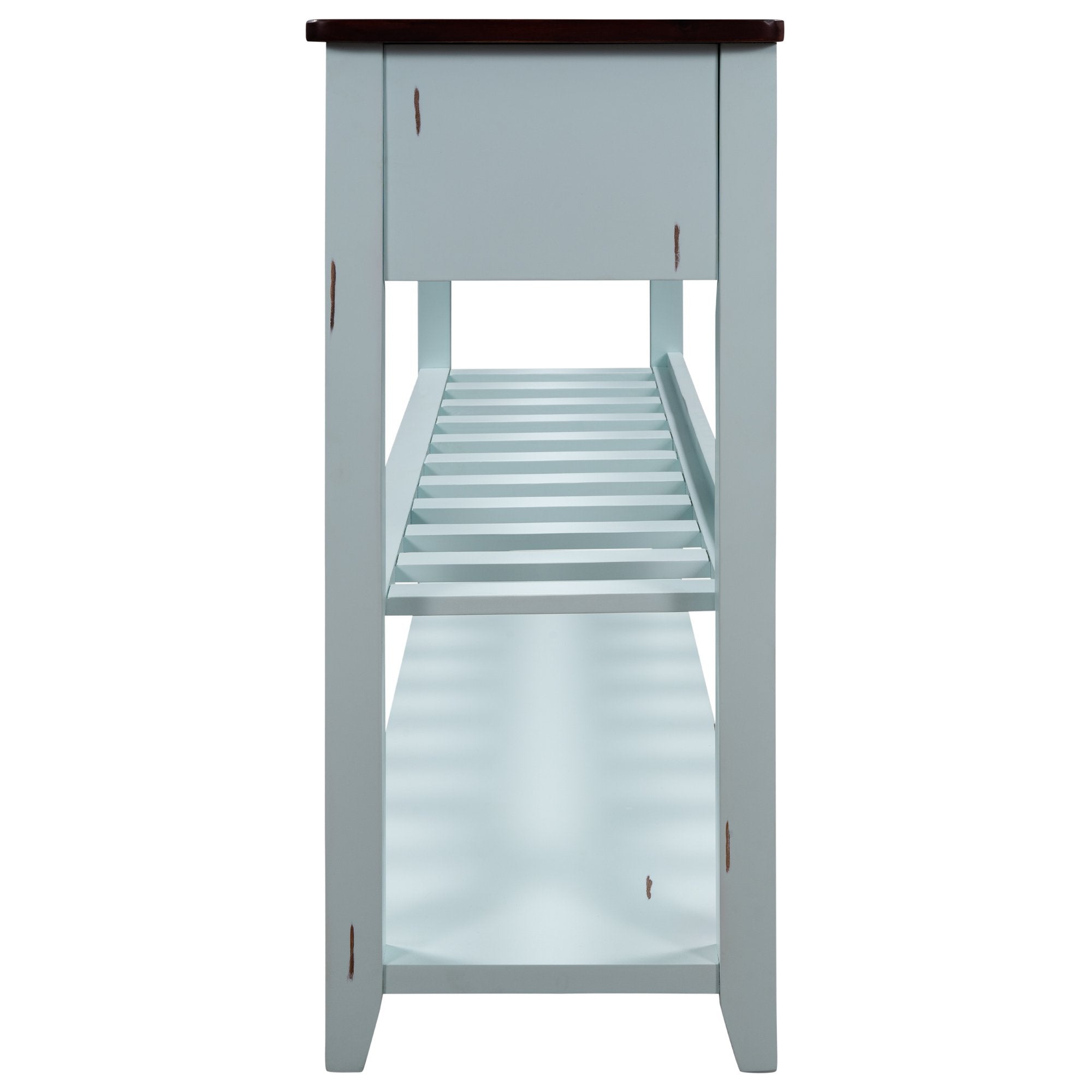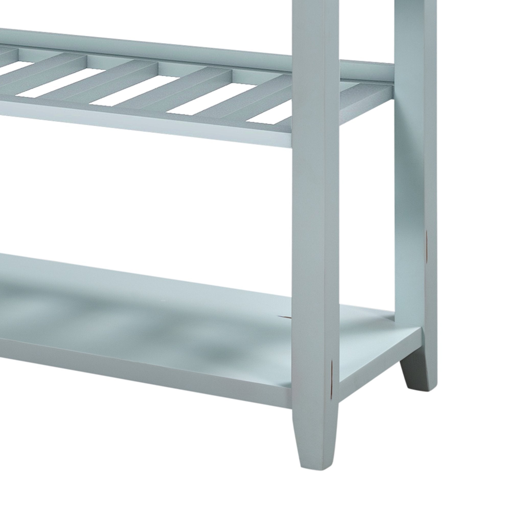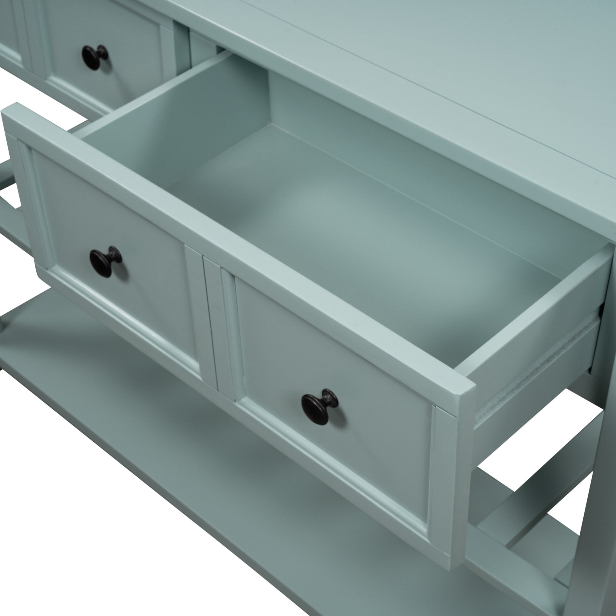 Give an empty space in your home a much needed pick me up with this Victorian era inspired console table. Crafted with a design that exudes elegance, this table features wood accent detailing throughout the strengthened mixed Pinewood frame for a chic overall aesthetic. With plenty of space to offer, utilize the two front facing storage drawers to minimize clutter while keeping select essentials within easy reach, or display your favorite décor on the spacious upper counter or bottom shelf.