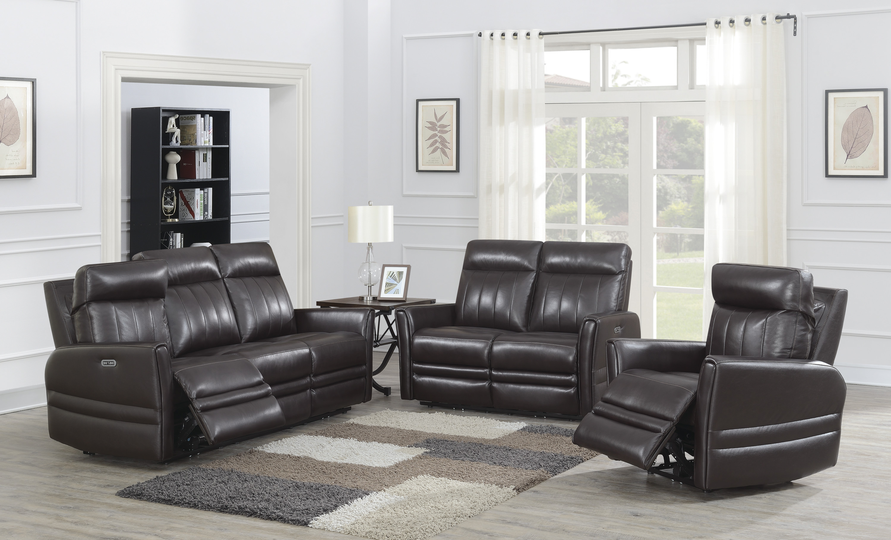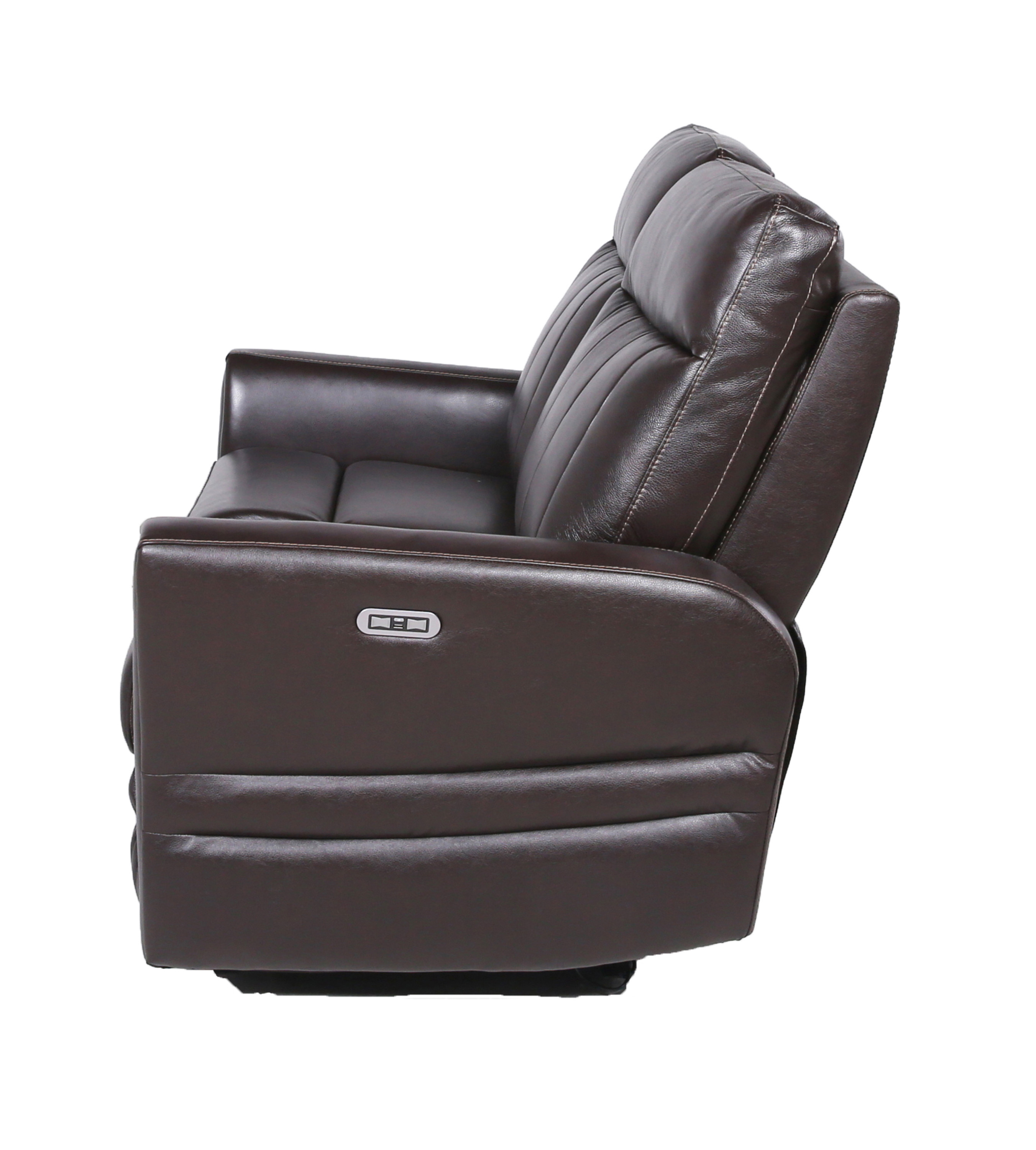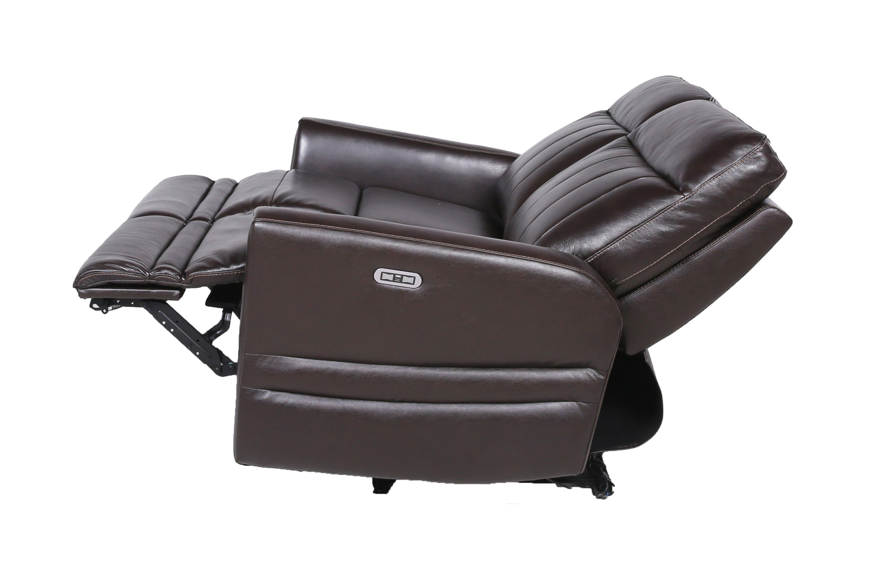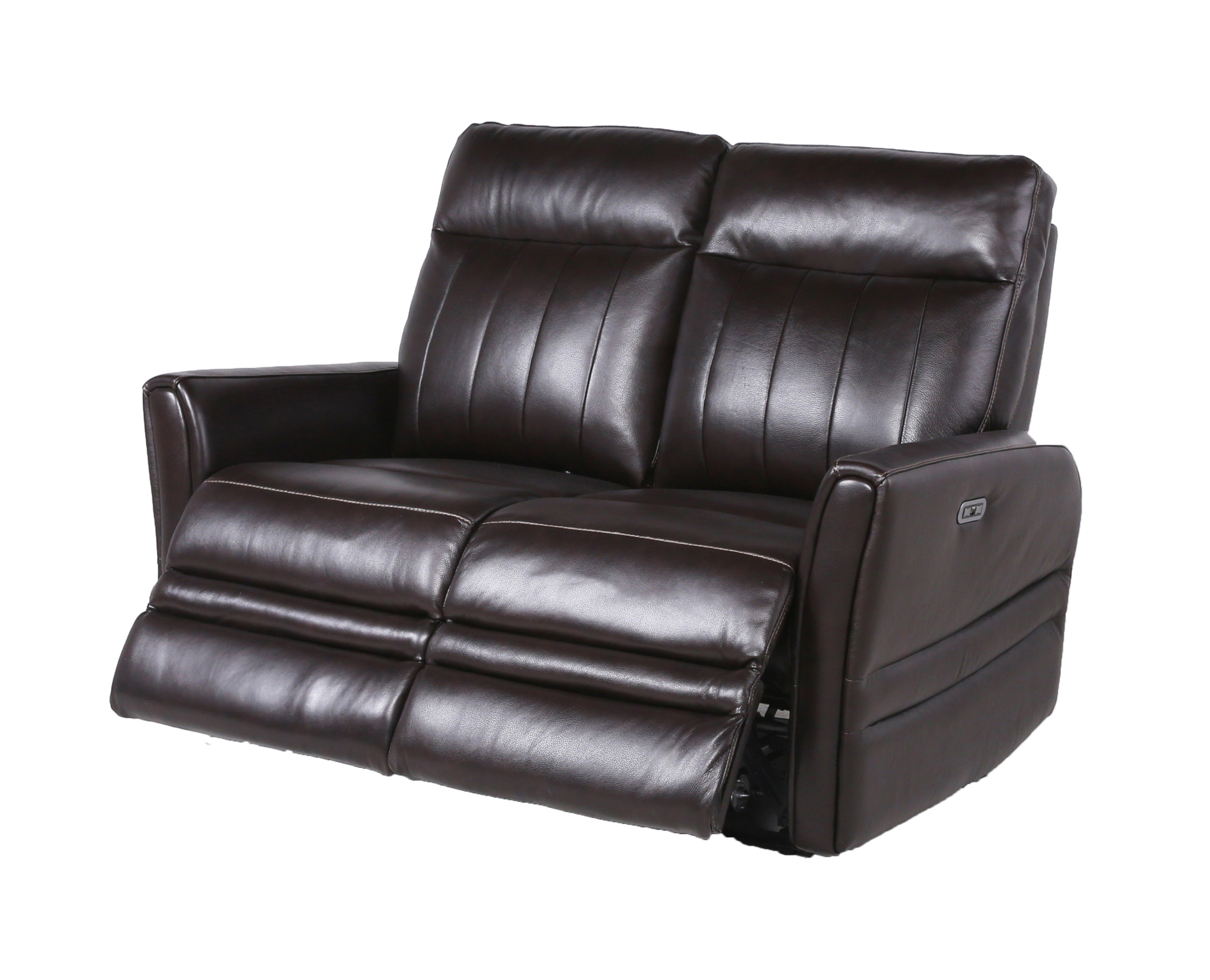 DimensionsCarton Dimensions L 58.5 x W 34.5 x H 30 Features-Constructed of top-grain leather on all seating areas and polyurethane sides and backs-Power articulating headrest and power footrest with USB port and home button to return seat and headrest to original position-High-resiliency foam seating-Contemporary styling Product DescriptionIndulge in the utmost sophistication and contemporary style with our Recliner Loveseat. Designed to elevate your living space, this collection presents a sophisticated take on motion upholstery. Featuring top-grain leather on all seating surfaces, it exudes luxury and comfort. The power leg rest and power articulating headrest offer personalized relaxation, while the vertical channel-back and upholstered beveled leg rest lend a flair of elegance. Whether you're watching the big game or simply unwinding, this recliner loveseat ensures maximum support and style.