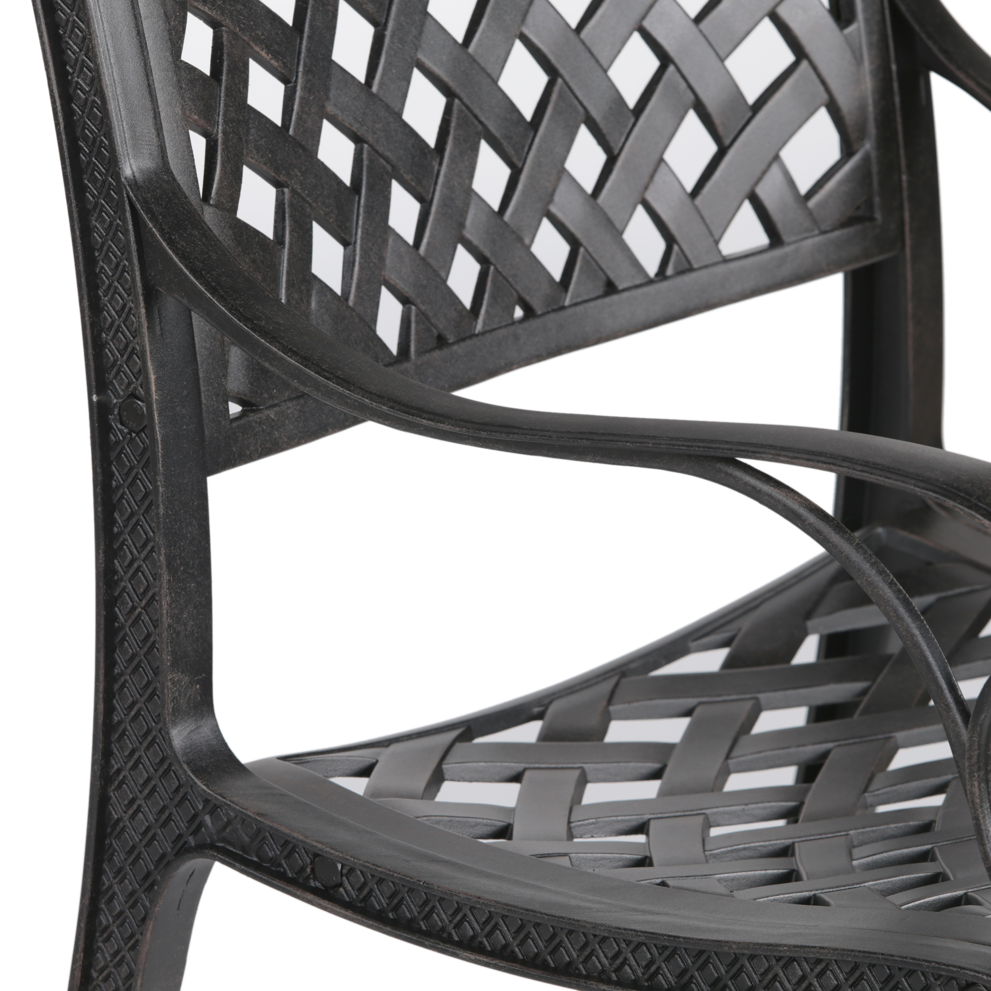 Lattice-patterned design seat back makes this collection an ideal traditional option for any outdoor setting
