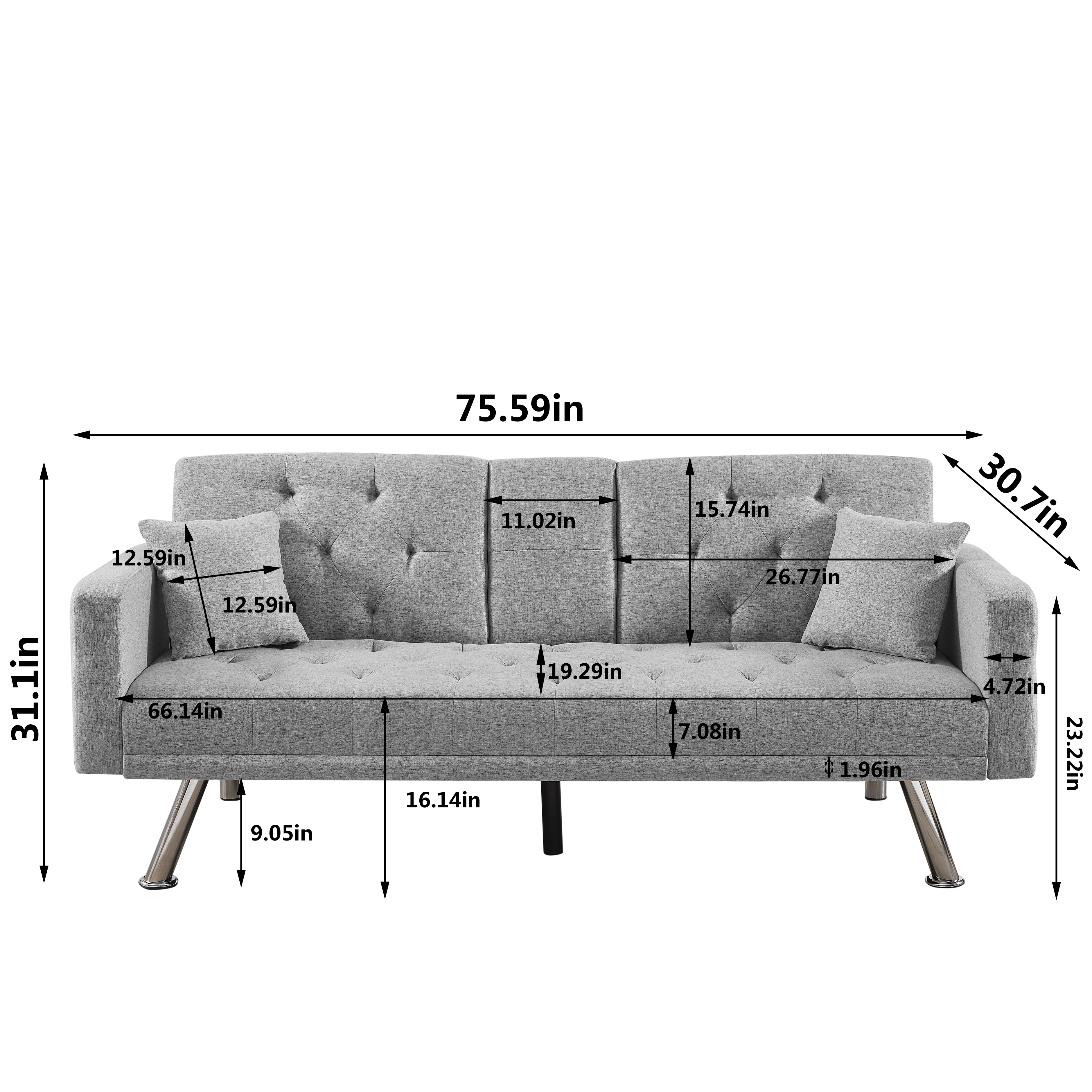 MULTIPLE ADJUSTABLE POSITIONS: 3 adjustable positions give you different comfort levels, if you want to watch TV in the living room, you can adjust the backrest to 120° , if you want to take a nap, you can adjust the angle to 180 ° as a bed. All in all, the adjustable backrest can meet the different needs in your life.Friendly Design: Provide customers with the best user experience. The soft backrest locks into place to provide the right support for your back and waist. As for the upholstered seats, it doesn't feel hard to sit on. A cup holder can give you space for a drink or wine.HIGH QUALITY: Breathable cotton and linen textiles and sofas are supported by solid rubber wood feet, which can hold up to 500 pounds.EASY ASSEMBLY: With detailed instructions and a complete kit, you can easily assemble within 20 minutes.