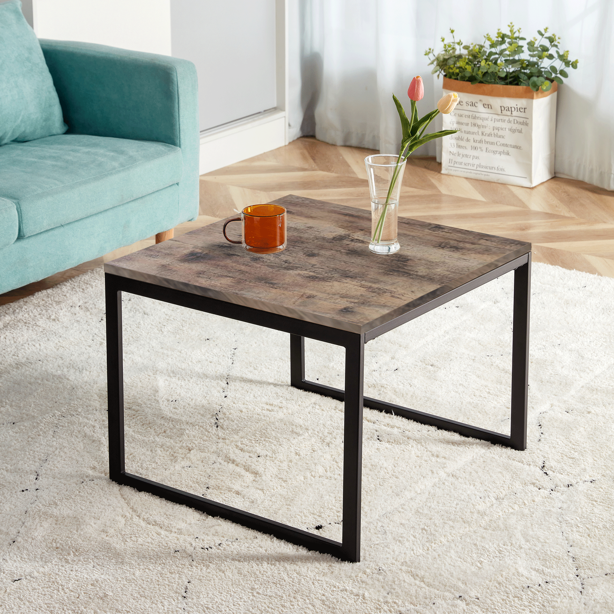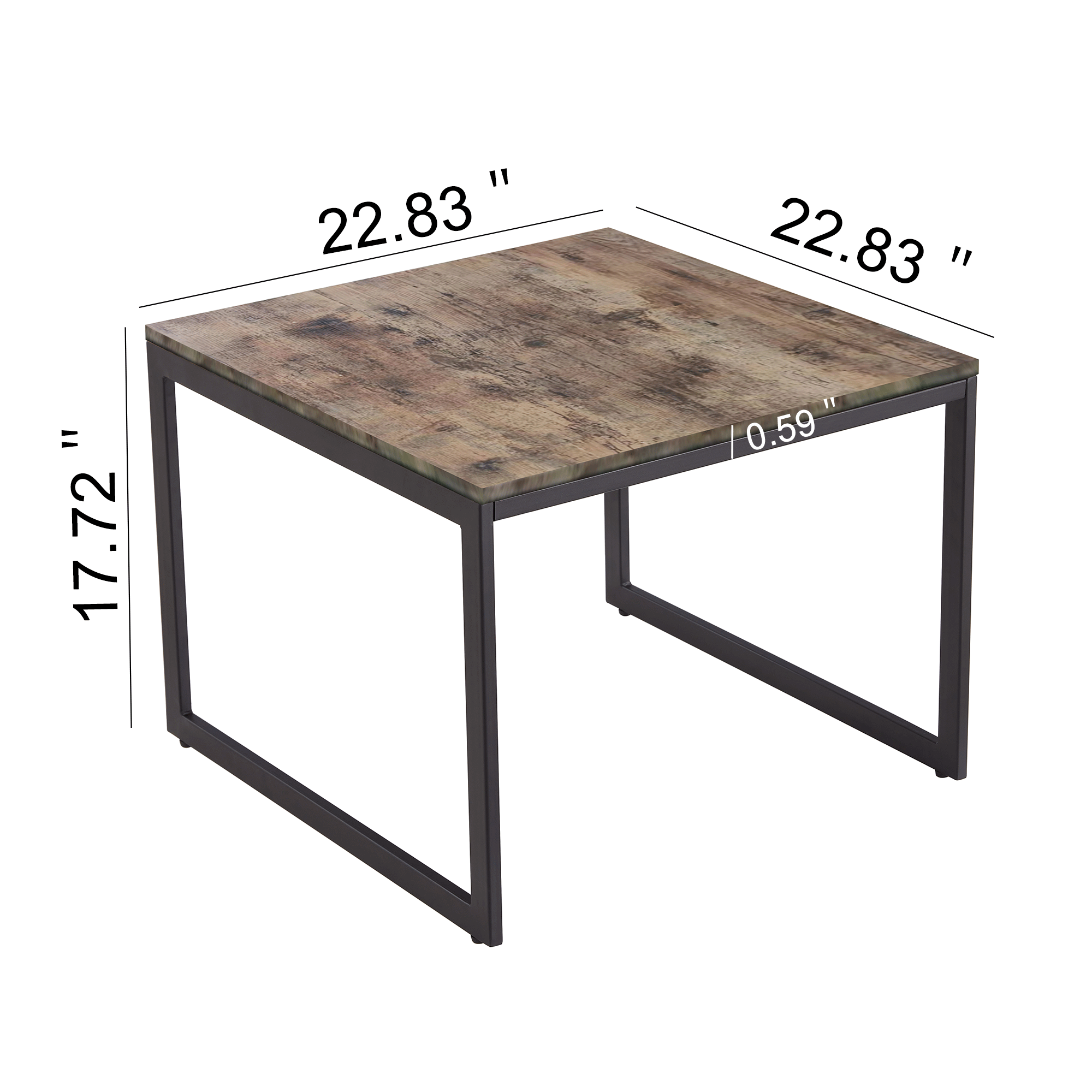Square Coffee Table, 22.8 inch Industrial Cocktail Table for Living Room, Large Accent Center Table Table Wood Tabletop with Metal Frame, Simple Assembly, Rustic Brown Small Dining Table