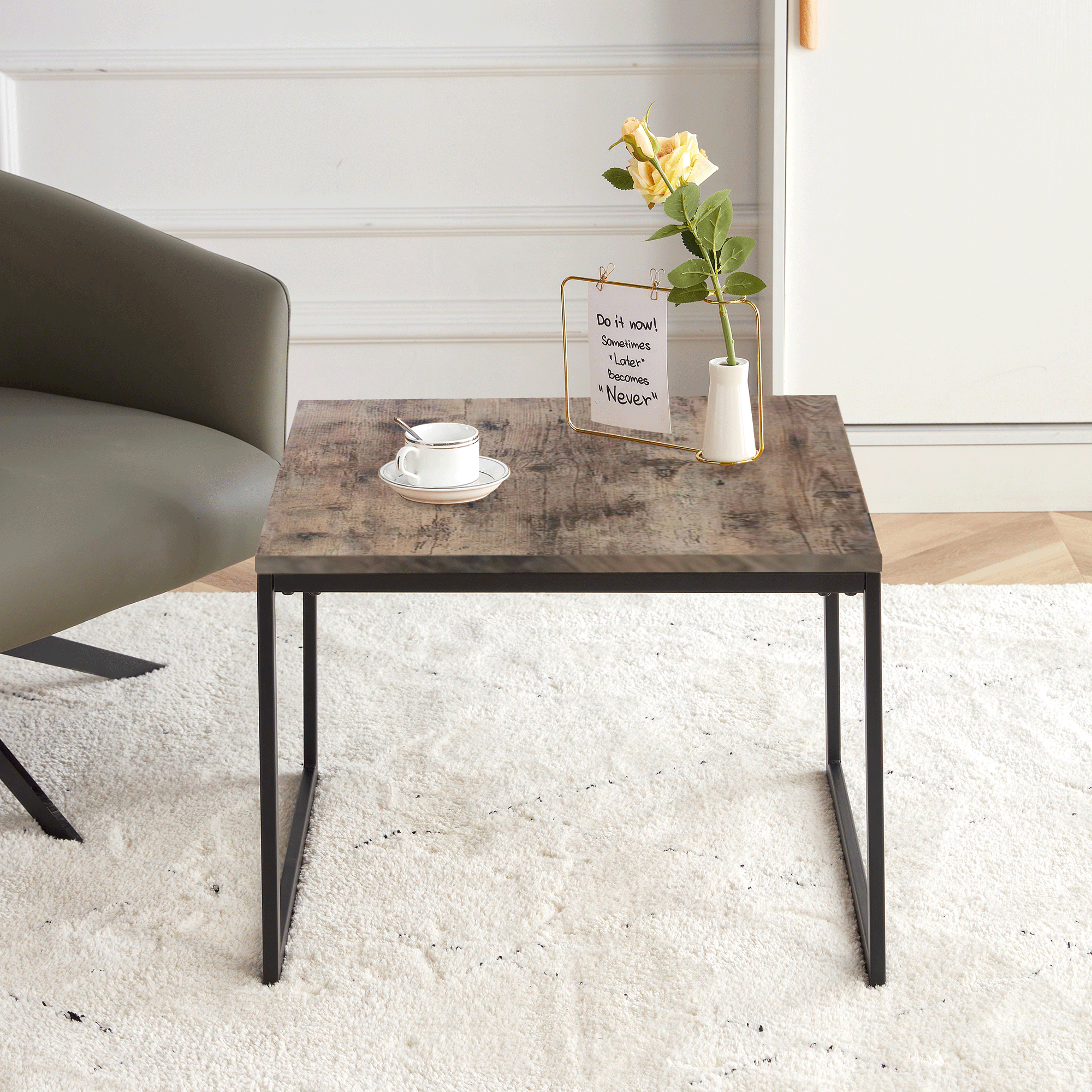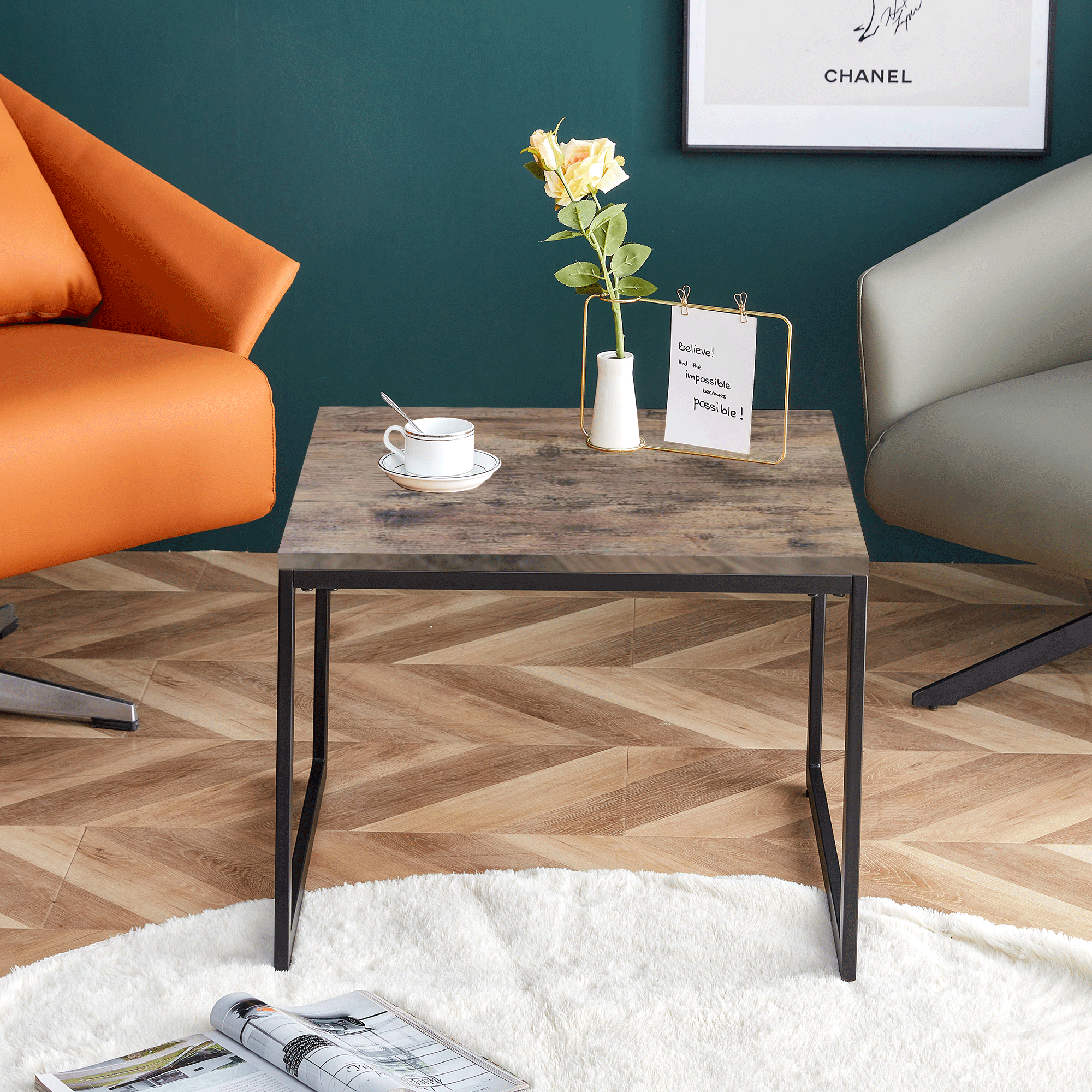 11.This square end table designed with simple straight lines and industrial style, makes it an understated elegance that fits modern to classic settings.