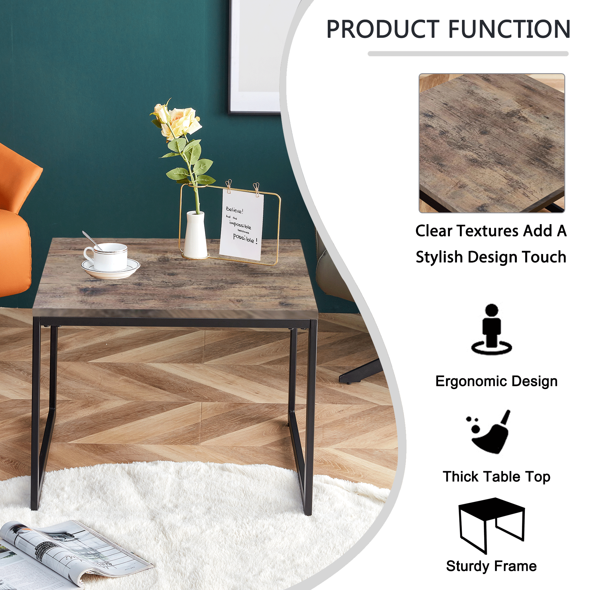 6.The coffee table frame built with anti-rust, waterproof, sturdy metal and powder coating.