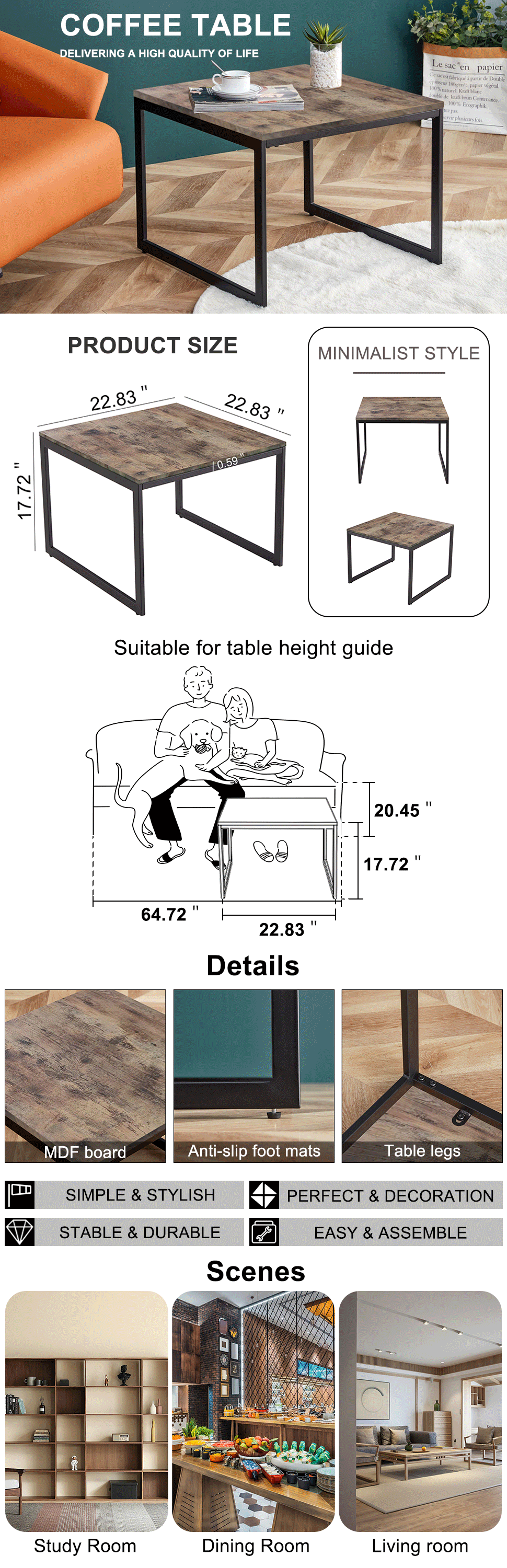 9.This coffee table can be widely used in living room, bedroom, office, college dorm and other places.