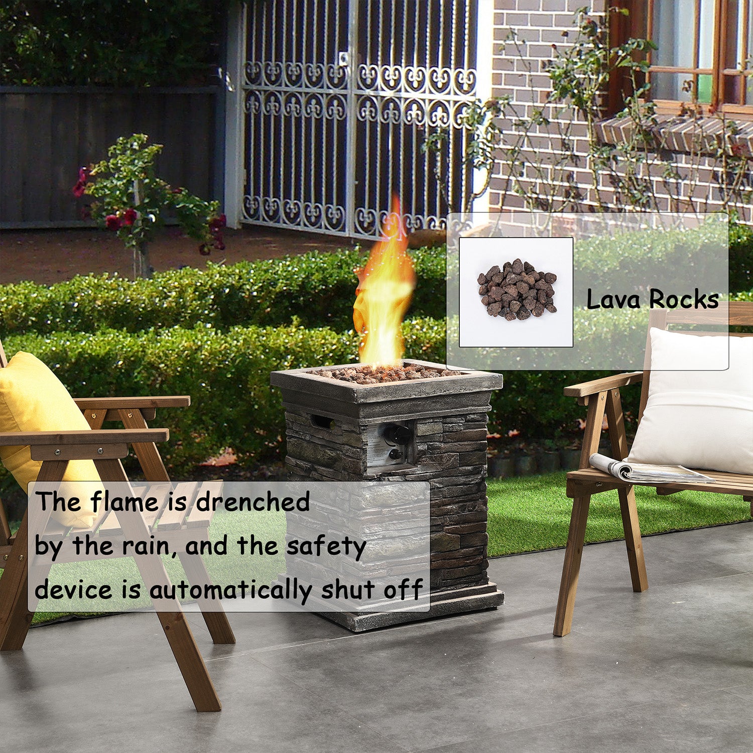 OUTDOOR DÉCOR: Creates an ambient display as the flames dance across the included lava rocks