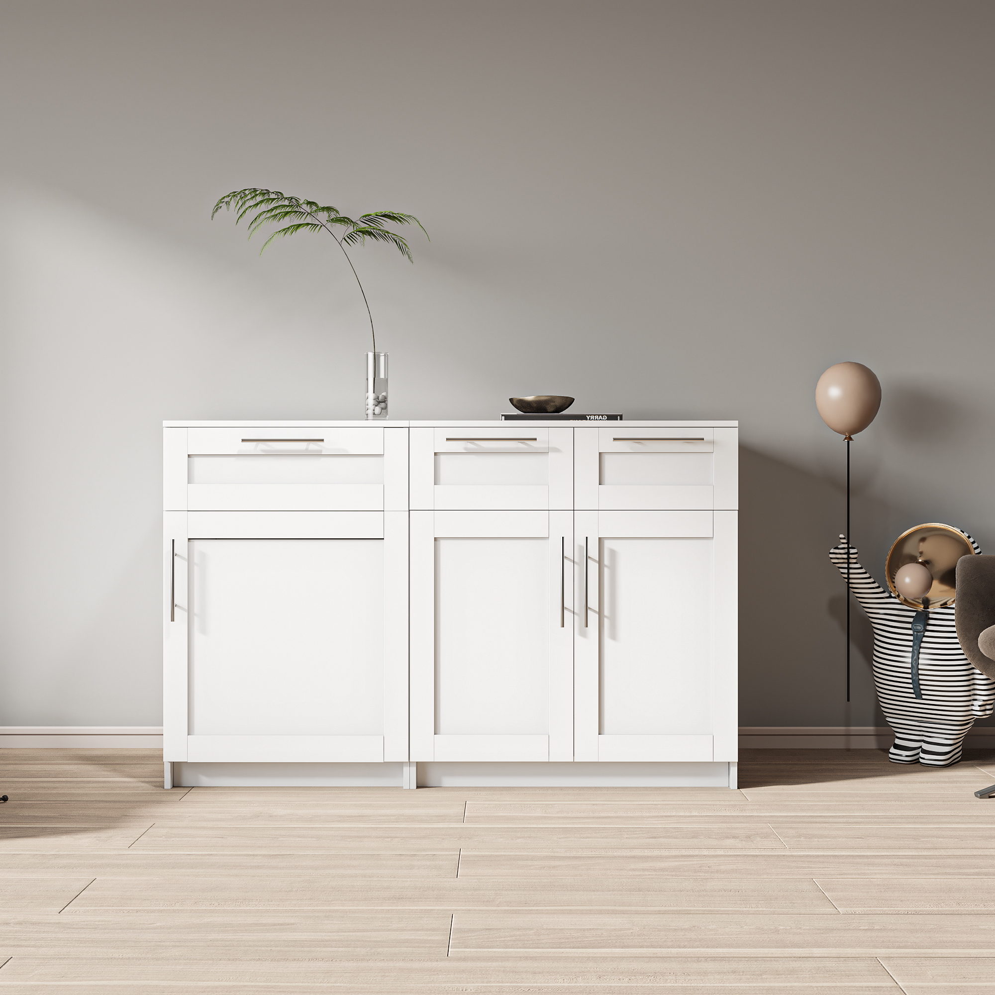 High-quality material: This wooden sideboard is made of 15mm E1 particleboard, easy to clean with dry cloth and suitable for daily use. Multifunctional: This buffet storage cabinet can be used as a buffet table in a restaurant, a TV media rack in a living room or an extra storage space in a home office.