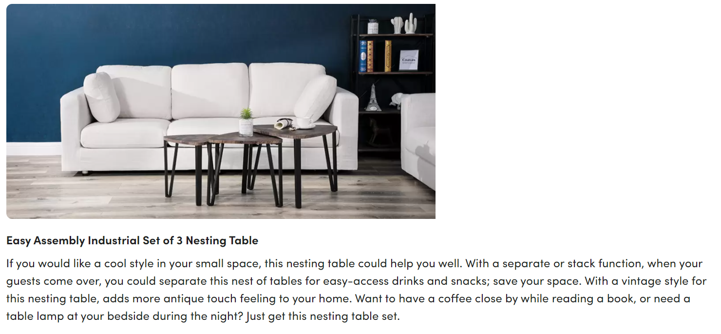 Whoever invented the nesting table is a hero of small space dwellers all over the world. This tables tuck in one under another, making them perfect for small spaces. Have some guests come over? No need to worry about where they can put the numerous beverages you provide- just separate out your nest of tables and give everyone their own mini drink table. Besides the functionality, it features, these nesting tables are stylish and decorative. Combing rigid steel and vintage elegance, these tables embody a unique beauty and brighten up your home. They come in three different sizes to offer additional space wherever you need it and work great as a coffee table, end table, plant stand or night stand individually or as a set. How will use them in your space? Avoid long-term use in humid environments. Please don't put overweight items on it.