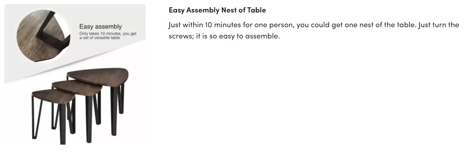 10 Minute assembly: Simply tighten screws and fix legs, this functional nesting tables are ready to give your home a brilliant update