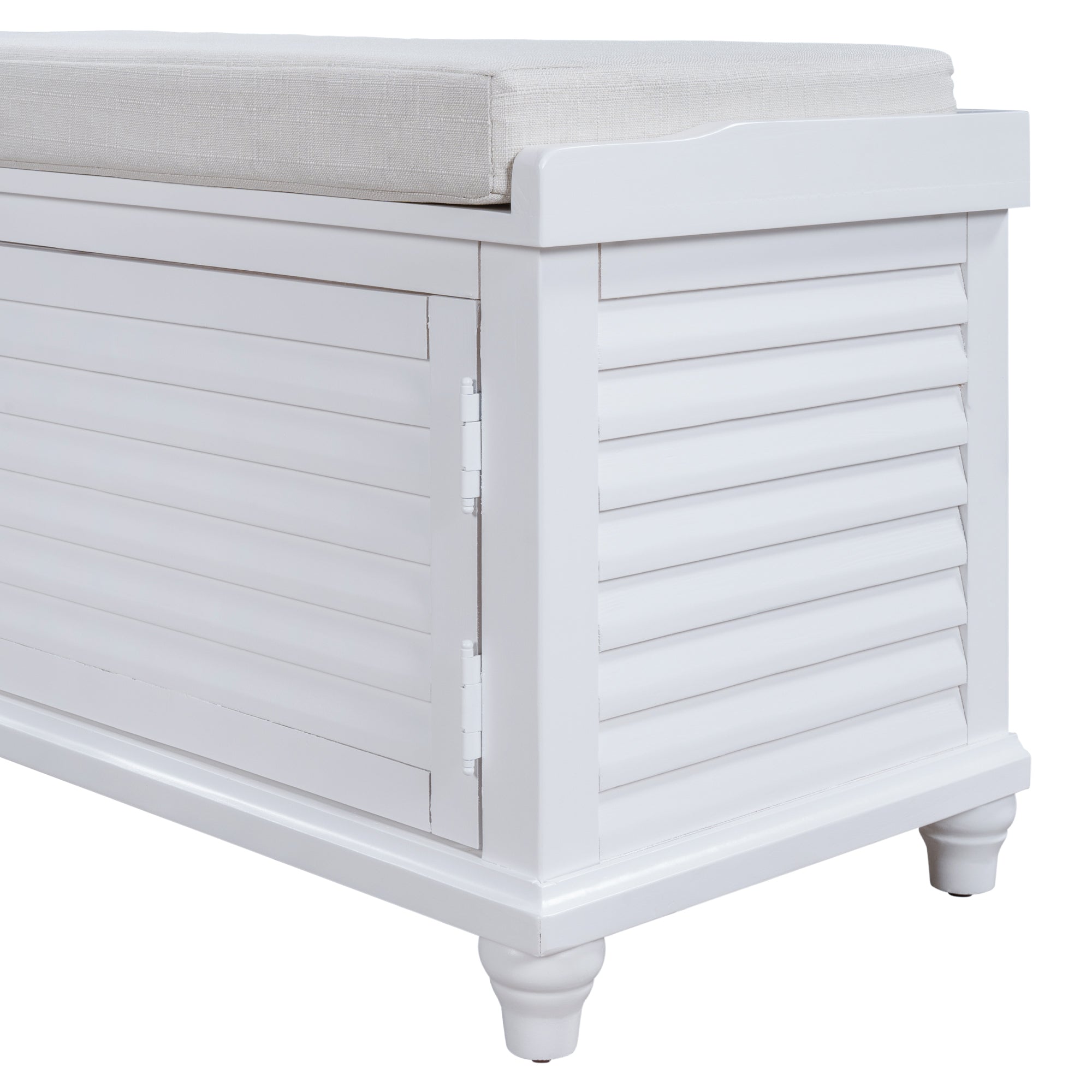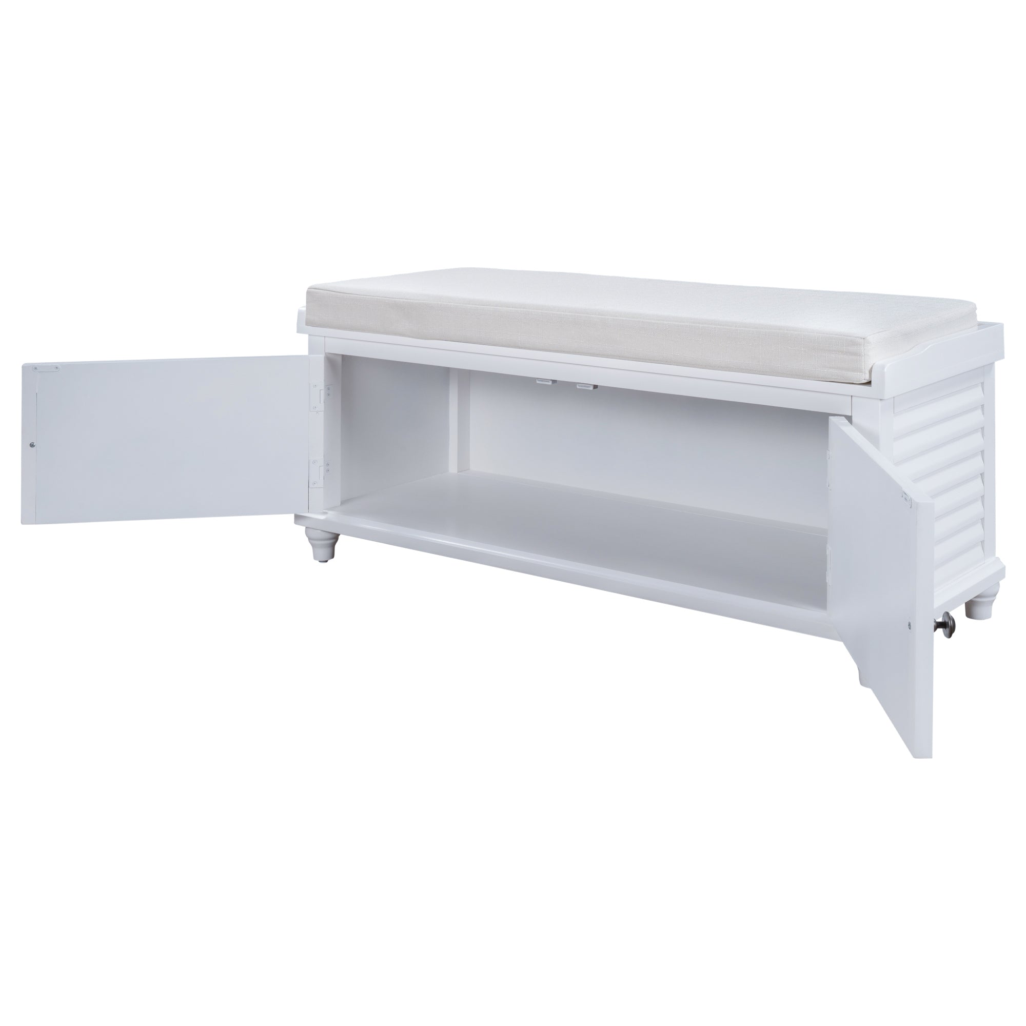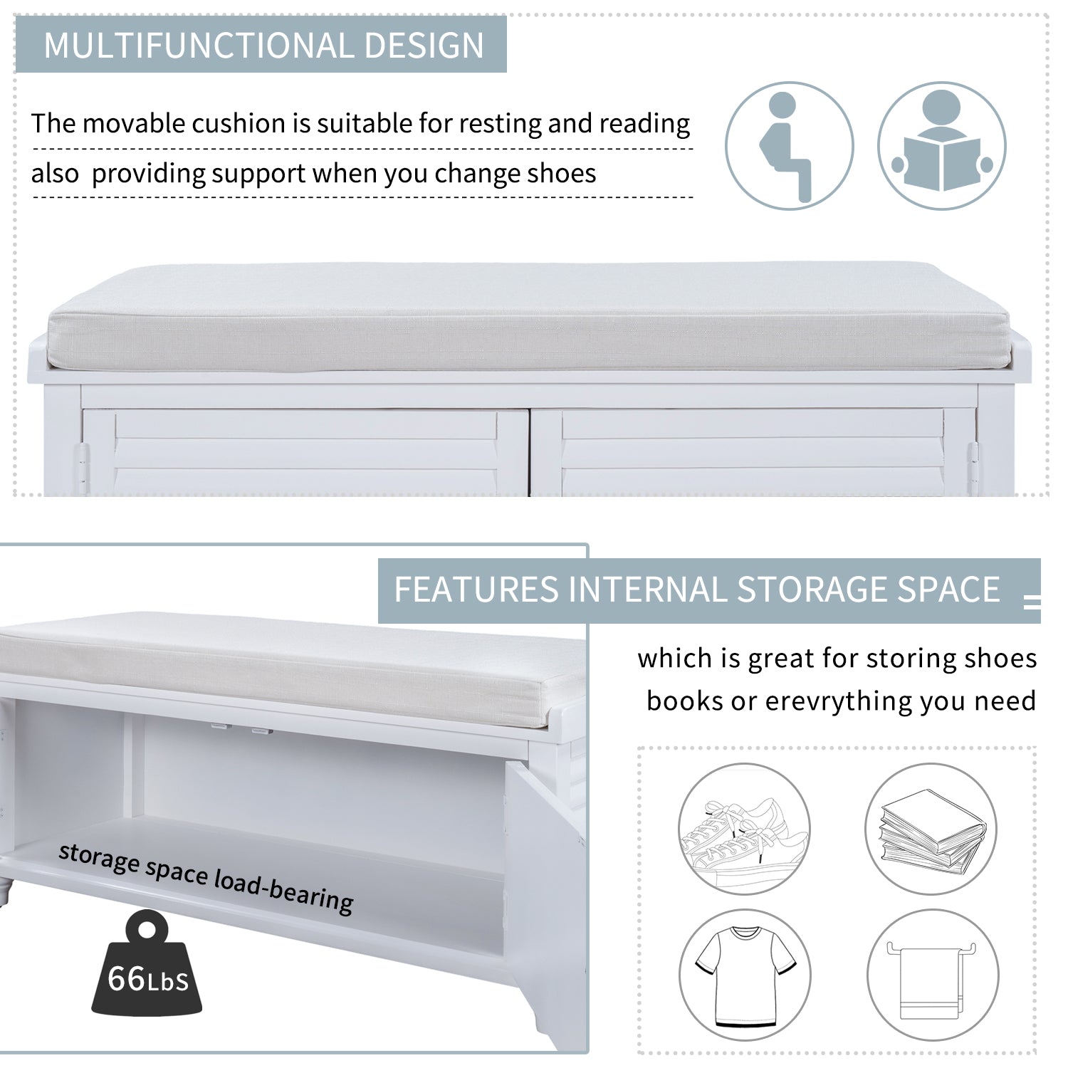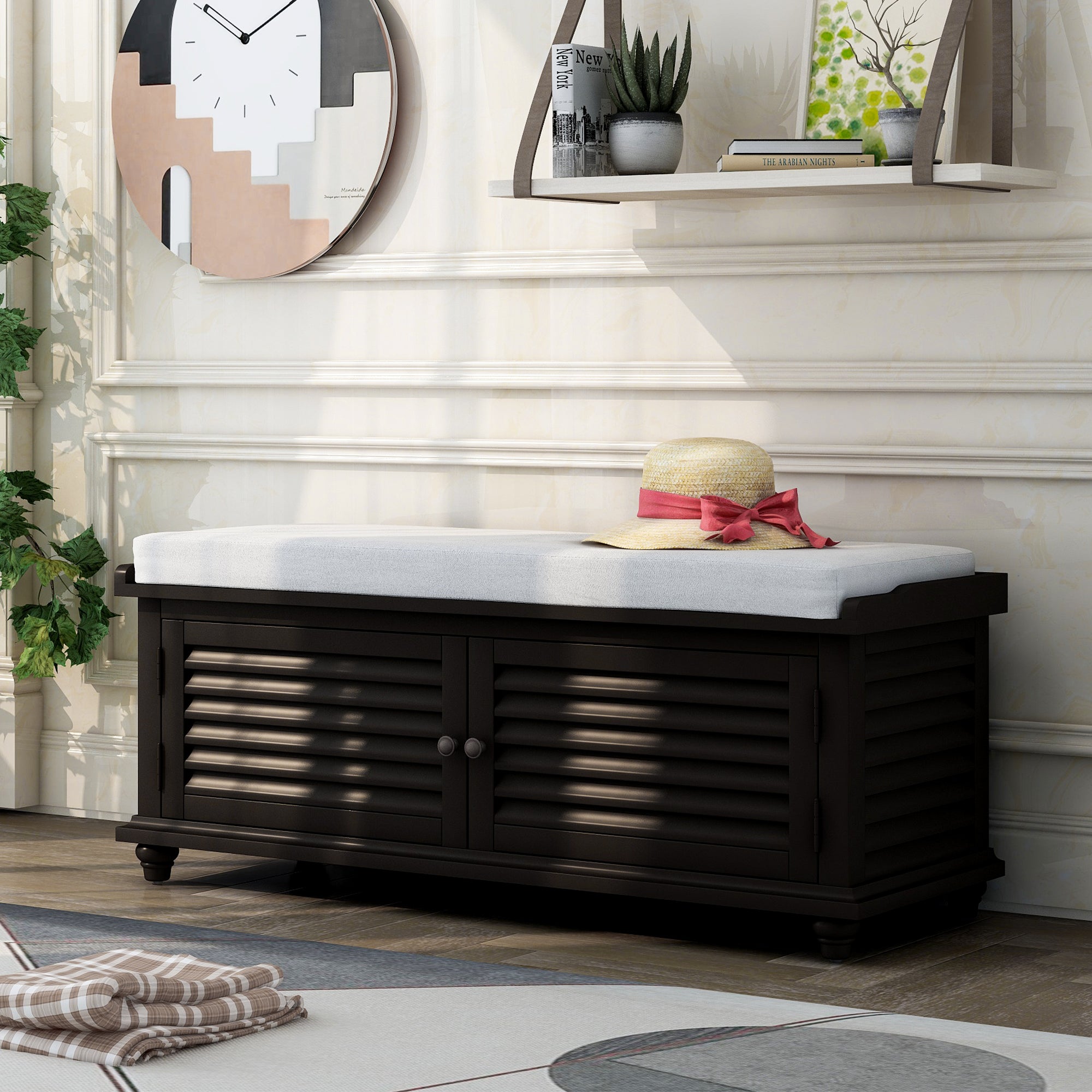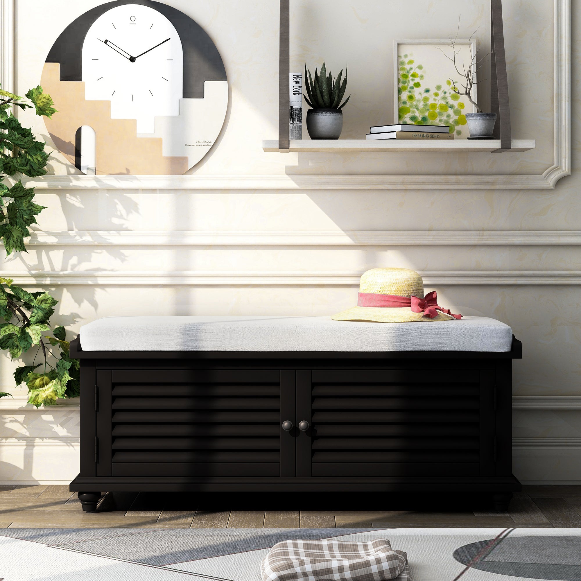 Storage Bench with Removable Cushion, Louver Design Wooden Shoe Bench